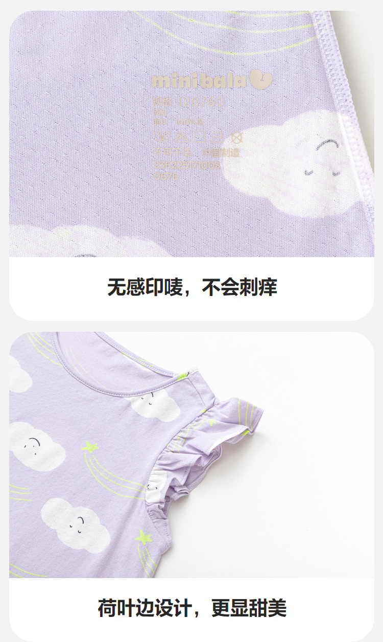 【植物芯】迷你巴拉女童亲肤纯棉家居服套装宝宝透气可爱睡裙