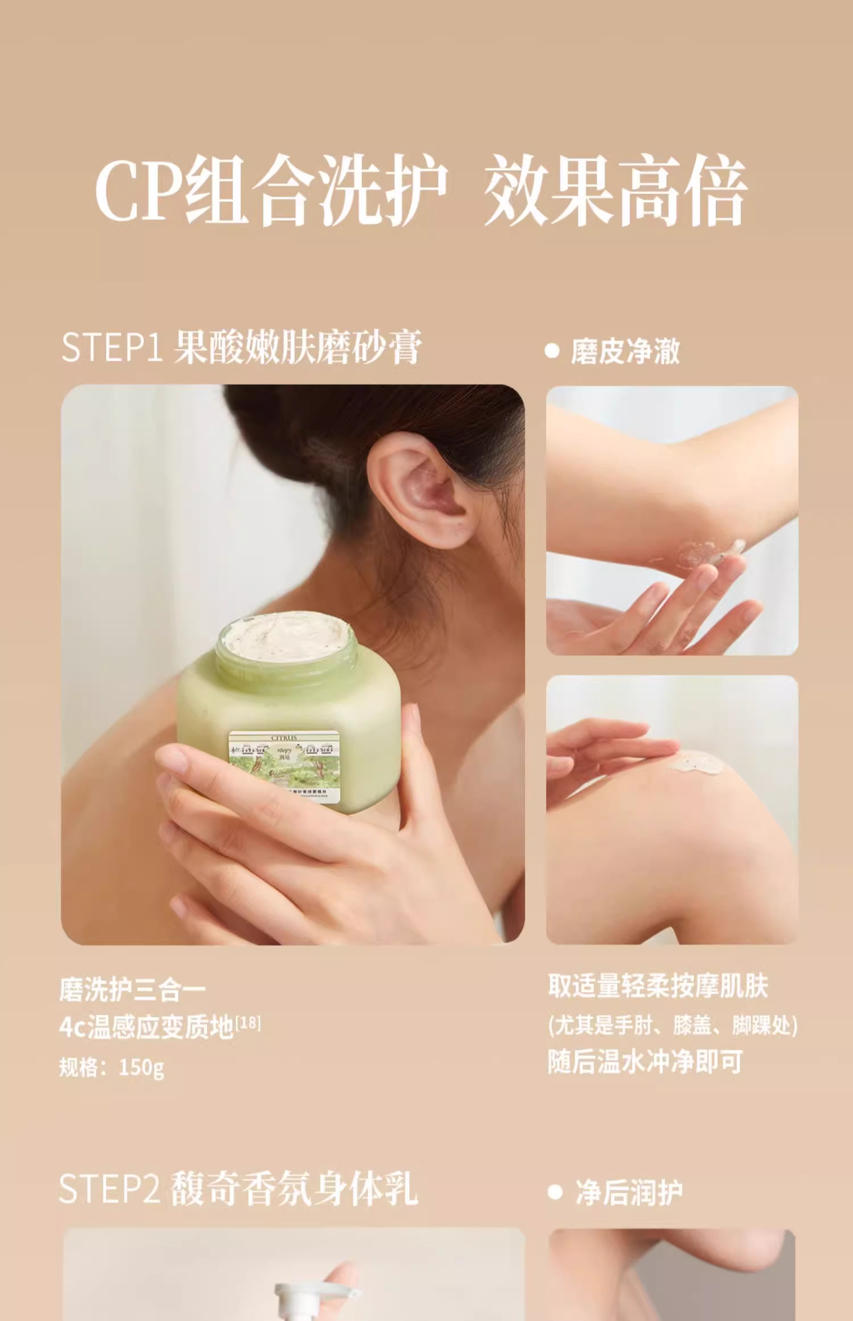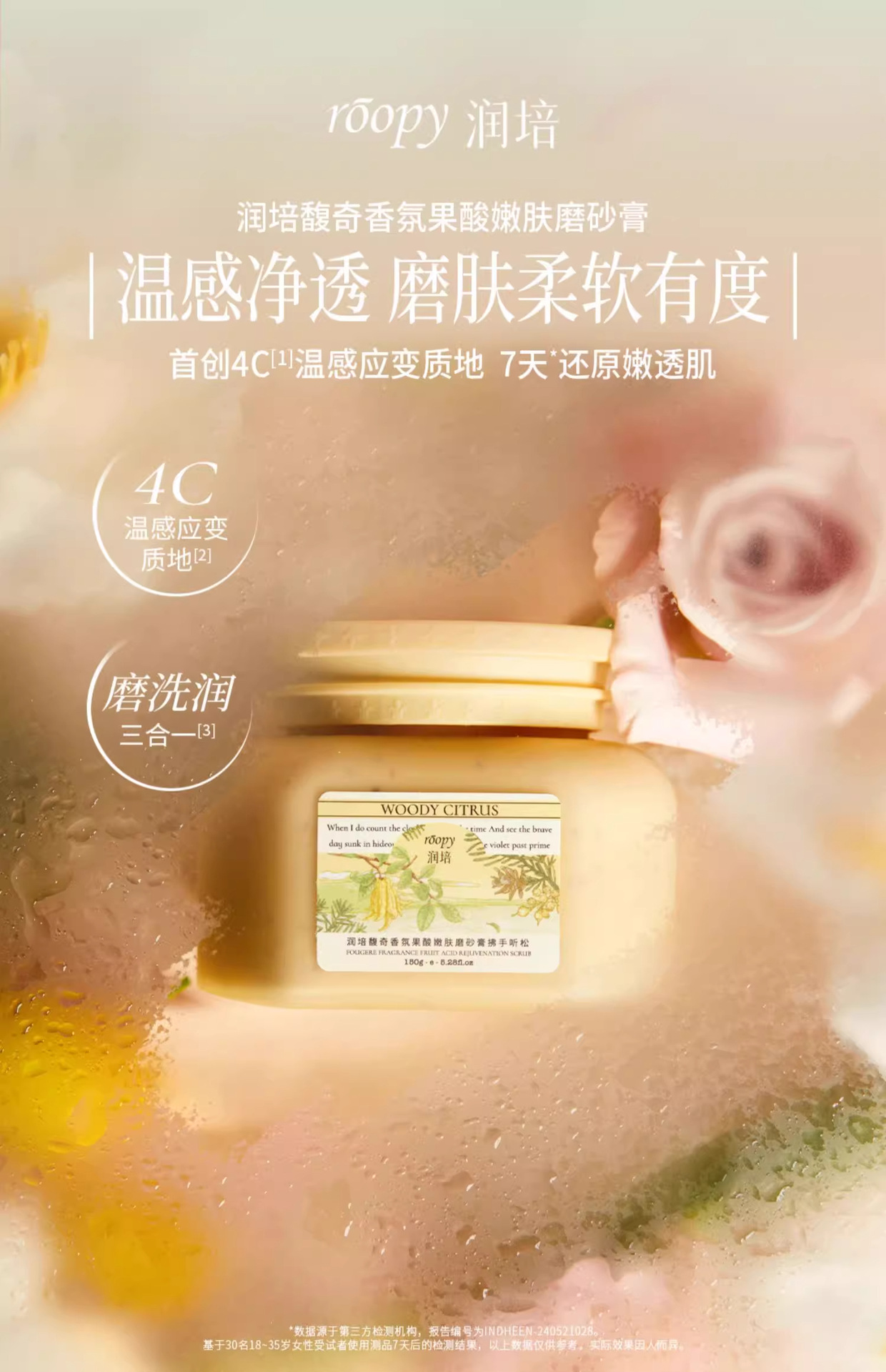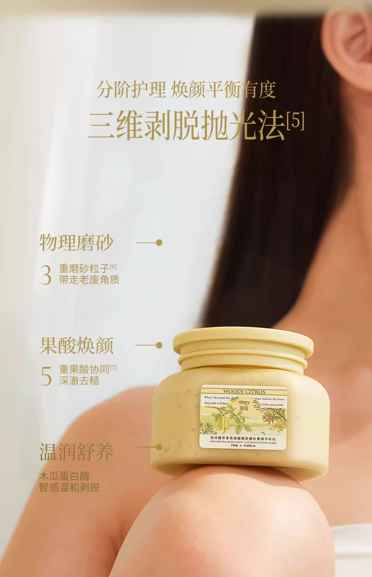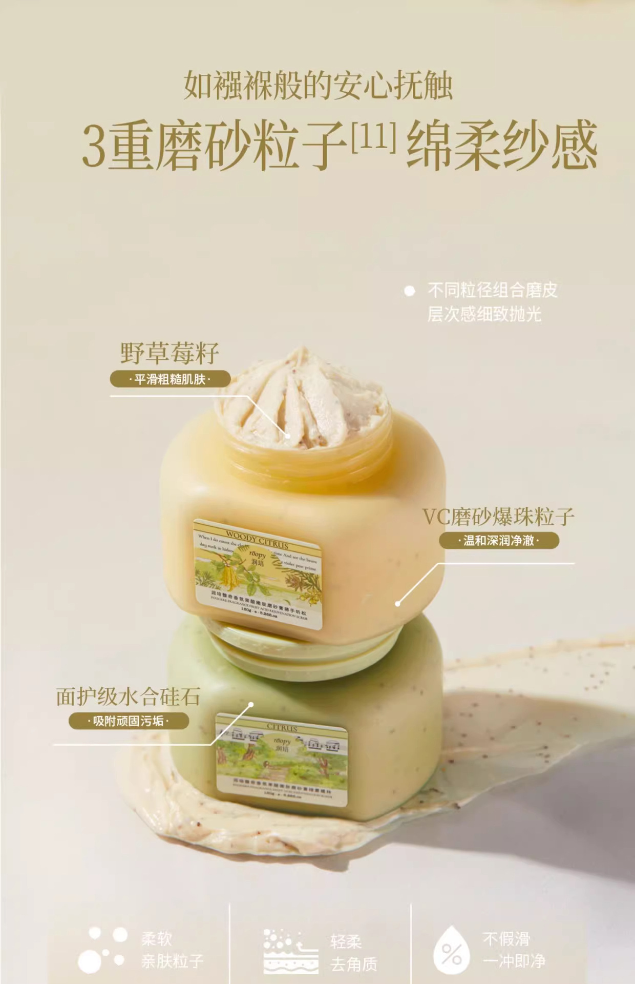 roopy润培【果酸身体磨砂膏】手部去角质死皮磨砂膏 沐浴露二合一浴盐