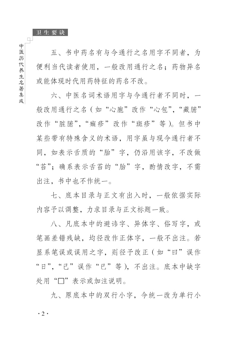 卫生要诀 中医历代养生名著集成 [清]范在文 编著 陈曦 点校 内容涵盖药性相恶 饮食禁忌 疾病诊治等多个方面 中医古籍出版社