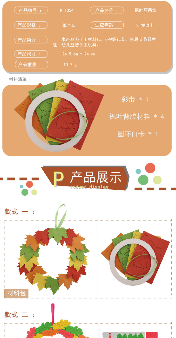 幼儿园课堂手工DIY枫叶EVA环吊饰材料包