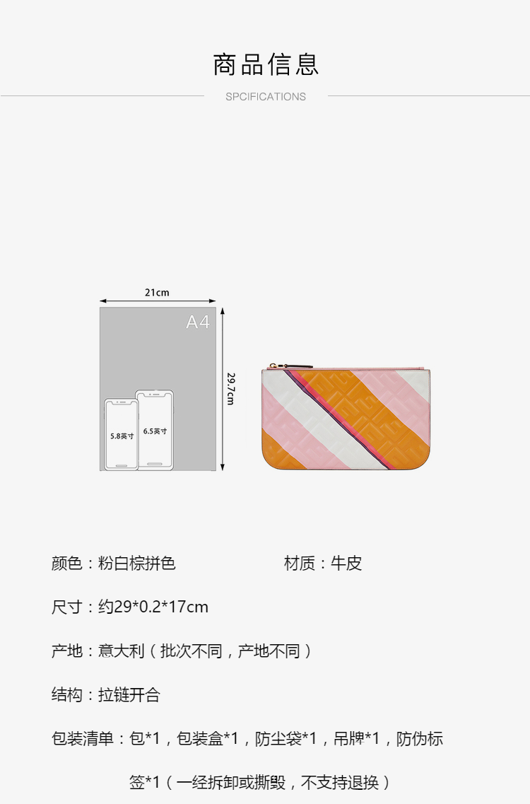 FENDI 芬迪 女士条纹手拿包8N0185 AK2K 商品图4