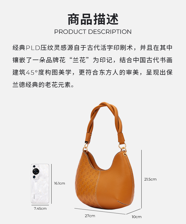 保兰德PLD东方雅奢45度老花经典系列头层牛皮重叠5号体制内通勤必备女包