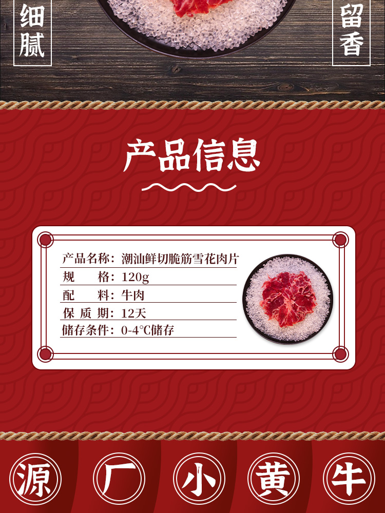 【恒都鲜肉】小公牛鲜切脆筋雪花肉片120g