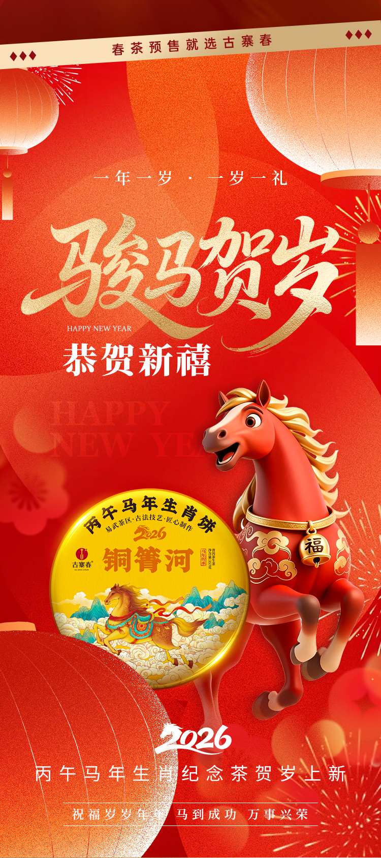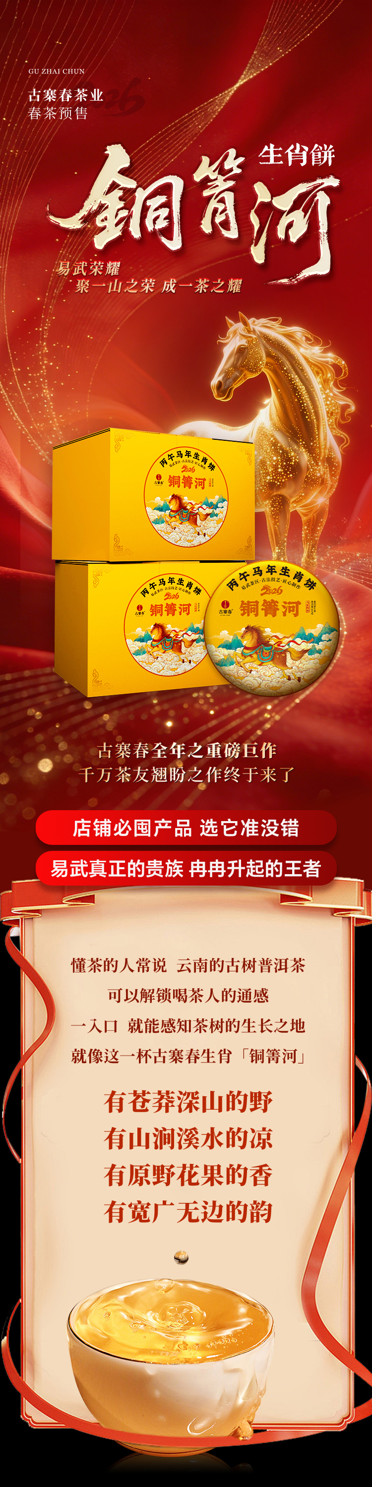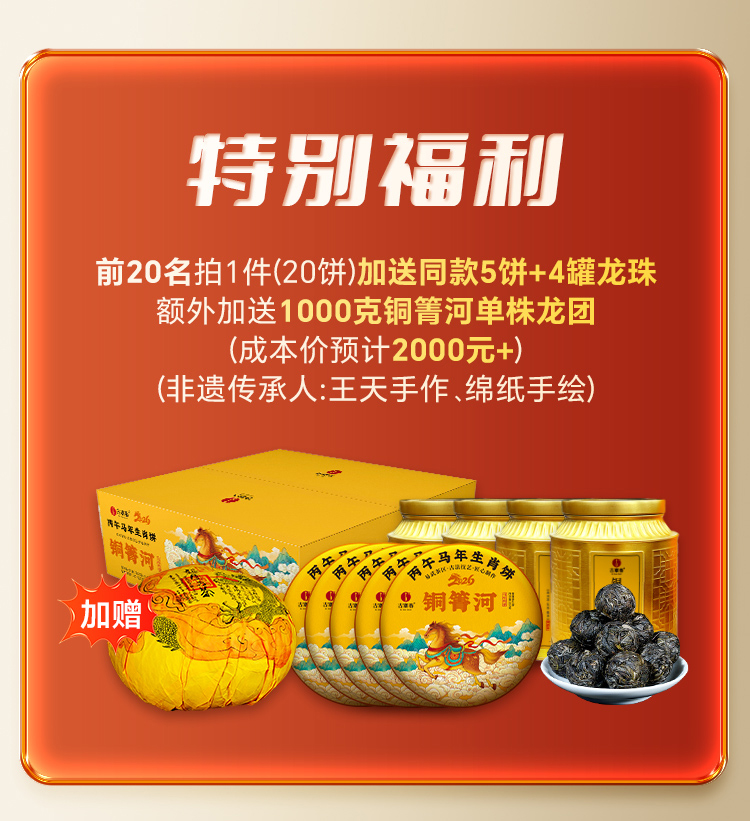 【2026年春茶预售】【铜箐河】2026年丙午马年生肖纪念饼重磅来袭!生肖茶饼界的无敌断货王,店铺必囤产品,选它准没错!以 “马踏青云” 为祥兆, 愿君新岁步步登高,万事顺遂357克/饼