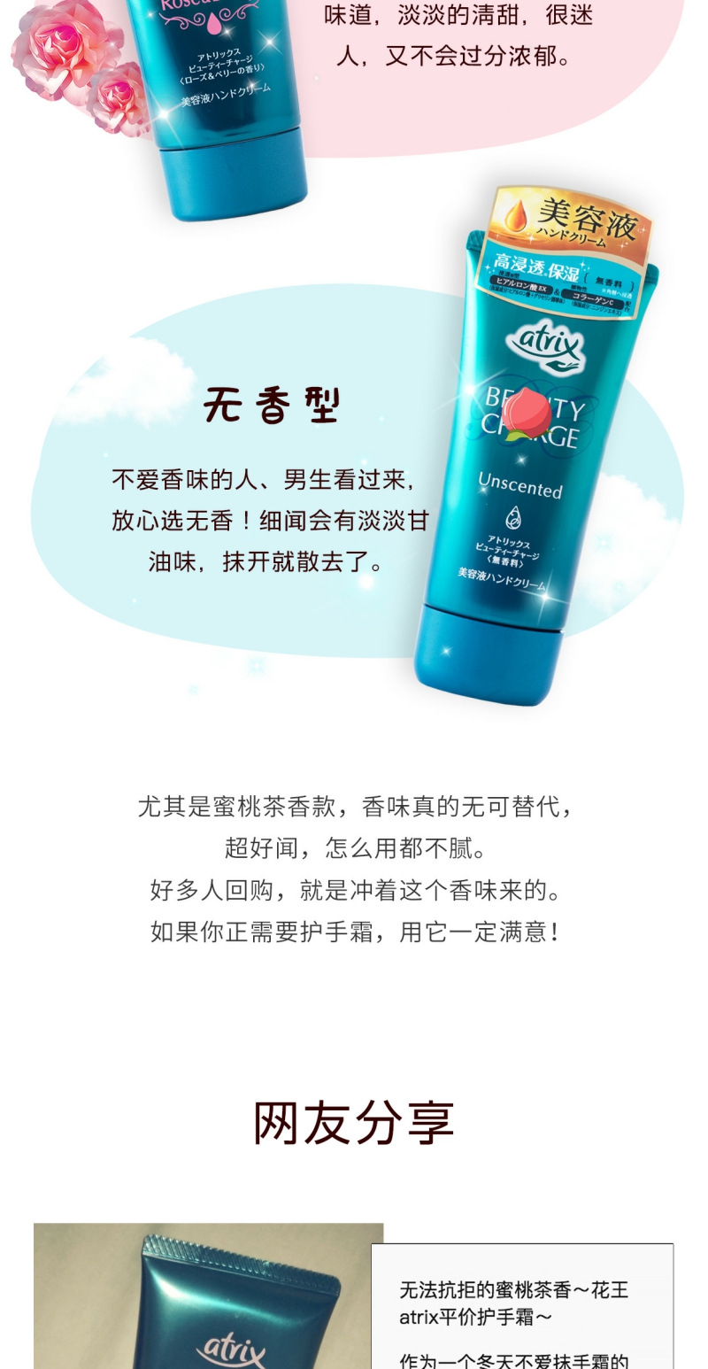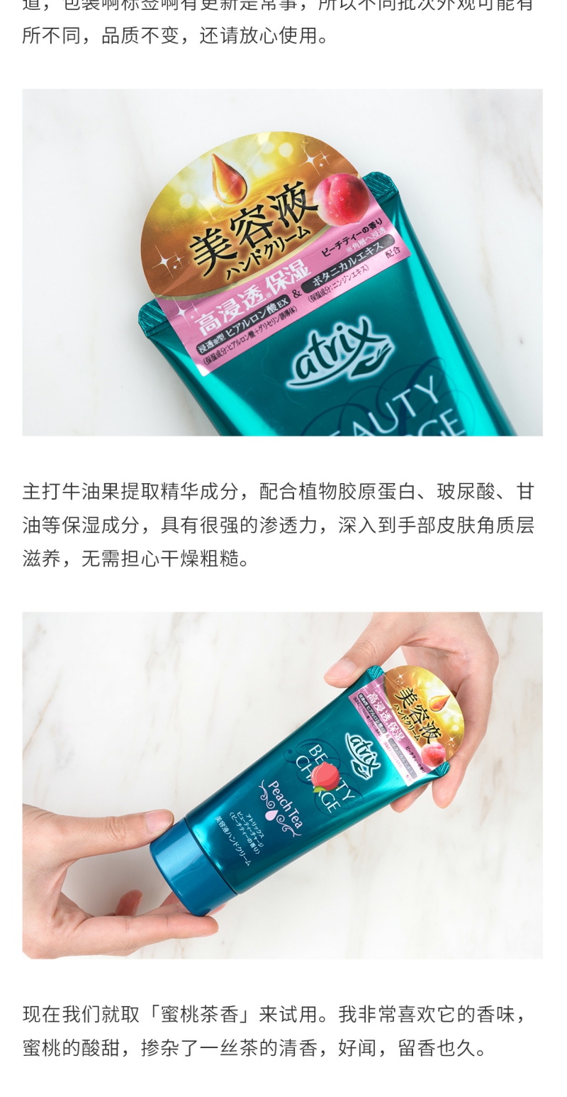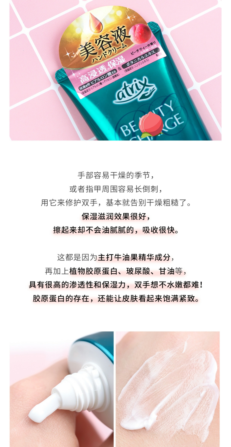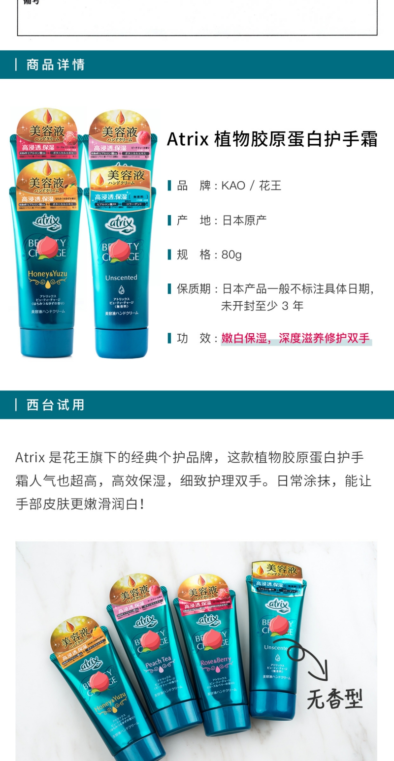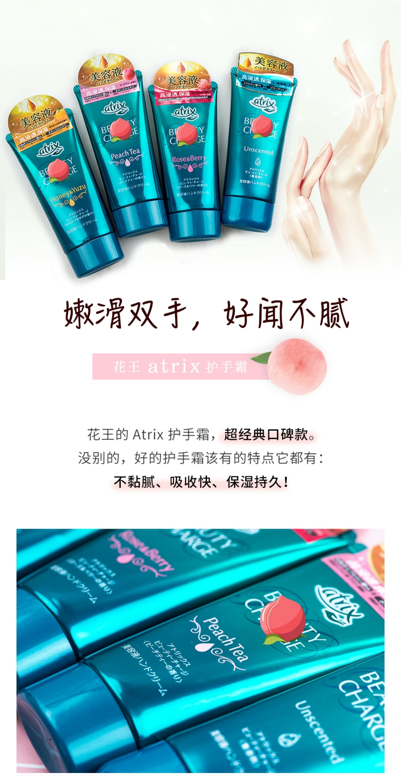 【YZ】日本花王Atrix保湿护手霜80g 植物胶原蛋白清爽嫩白水蜜桃乌龙香修护