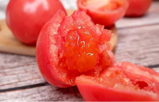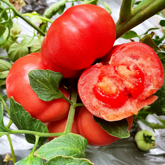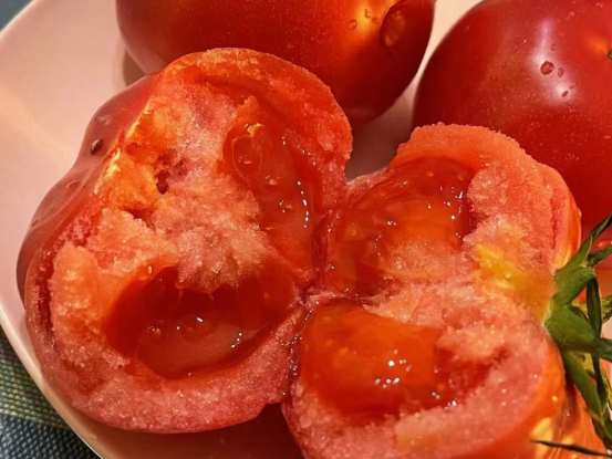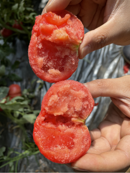 表皮薄透、通红有光泽,掰开后,沙瓤肉眼可见,还有晶莹剔透的“果冻芯”,西红柿的香味也相当浓郁 它含有丰富的番茄红素、维生素C、苹果酸和柠檬酸,是非常健康果蔬的之一 另外,春季头茬普罗旺斯西红柿,含有更丰富的蔬果纤维,能帮助肠道高效蠕动,比较适合直接当水果生吃