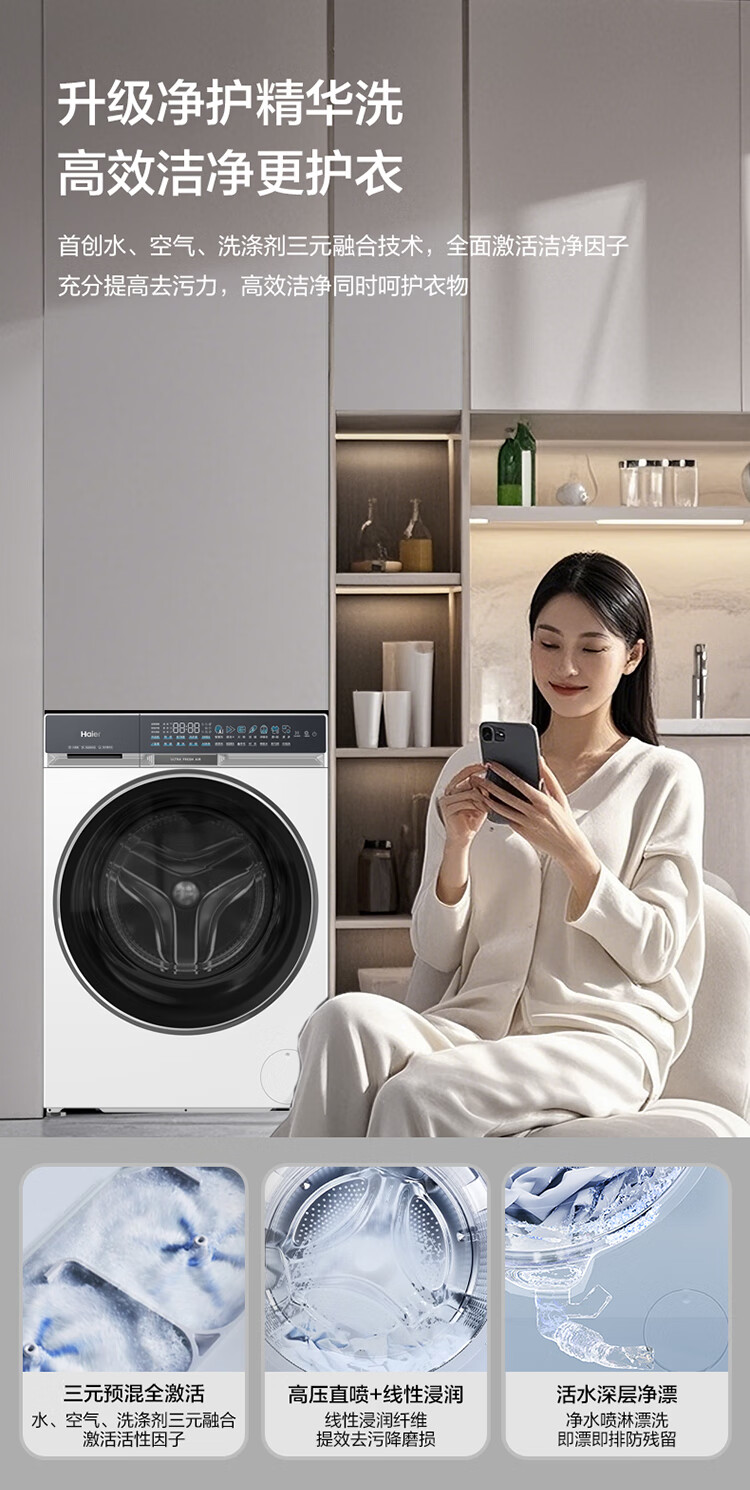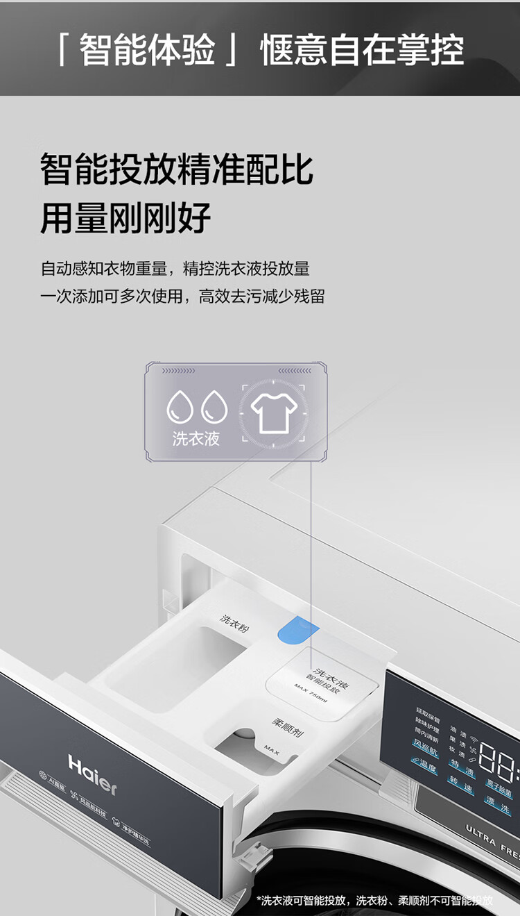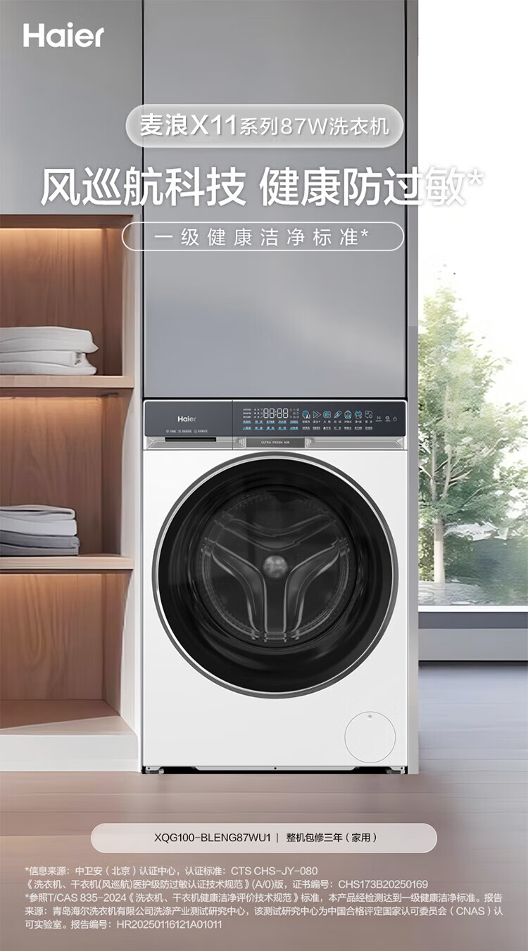 海尔(Haier)滚筒洗衣机全自动 麦浪X11系列 10公斤 家电国家补贴 超薄以旧换新 懒人家用 一级能效BLENG87WU1单洗