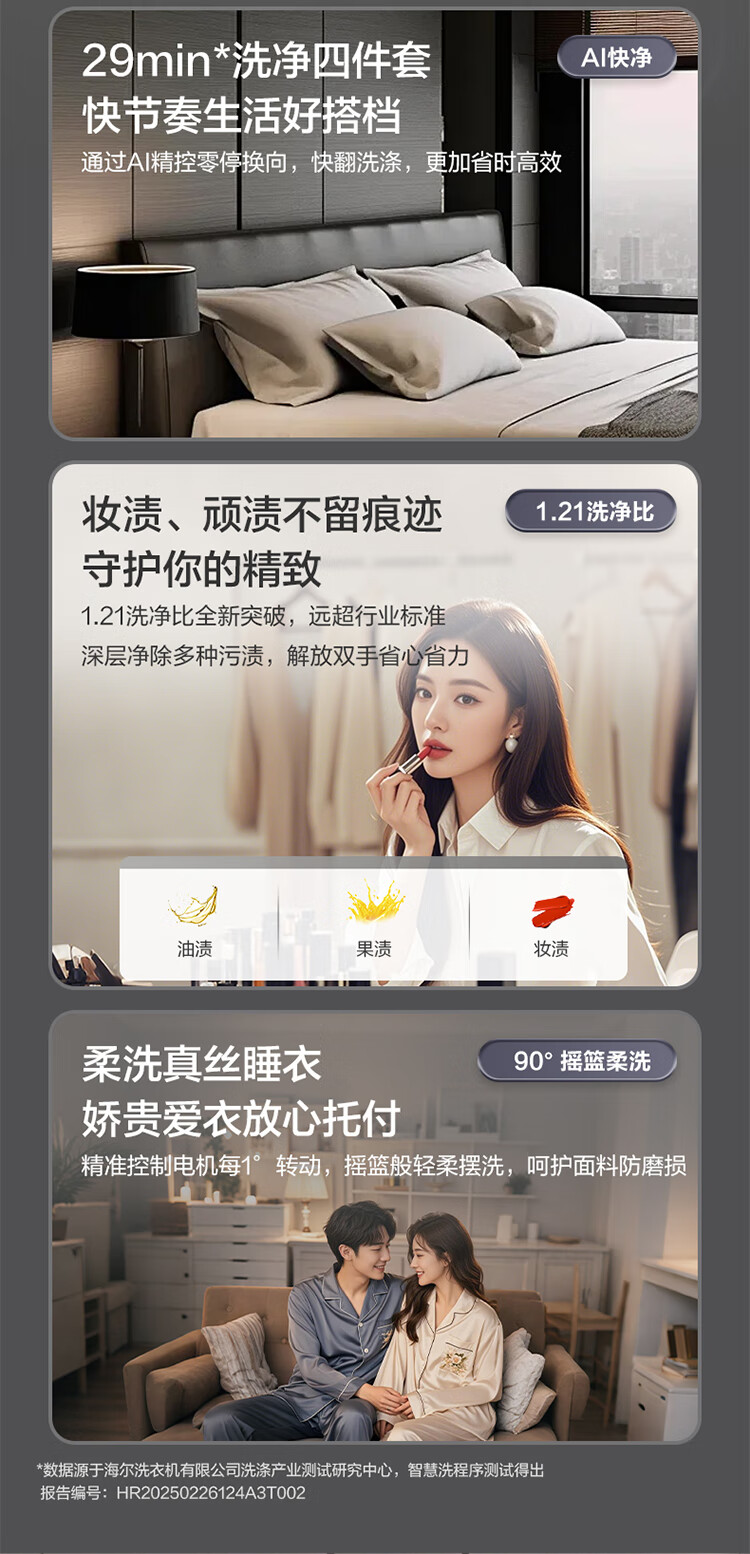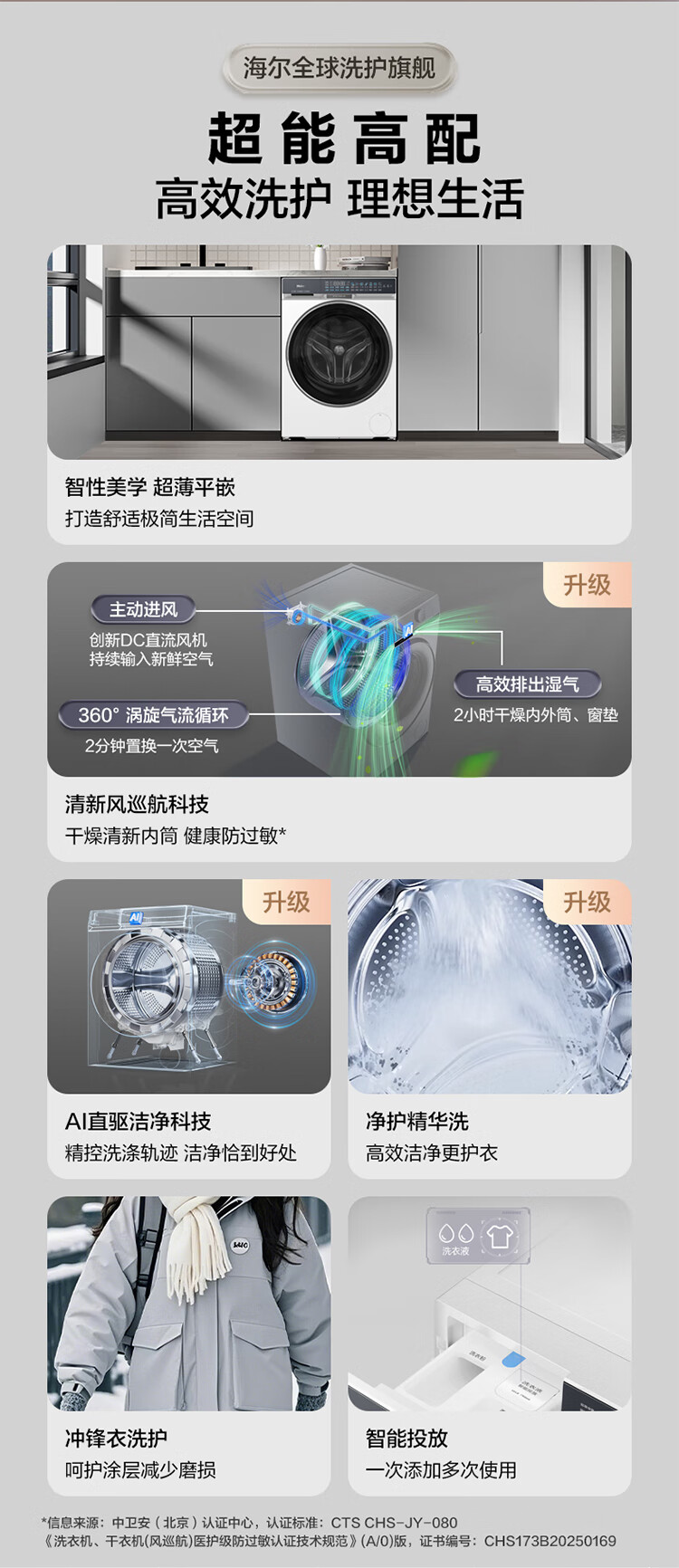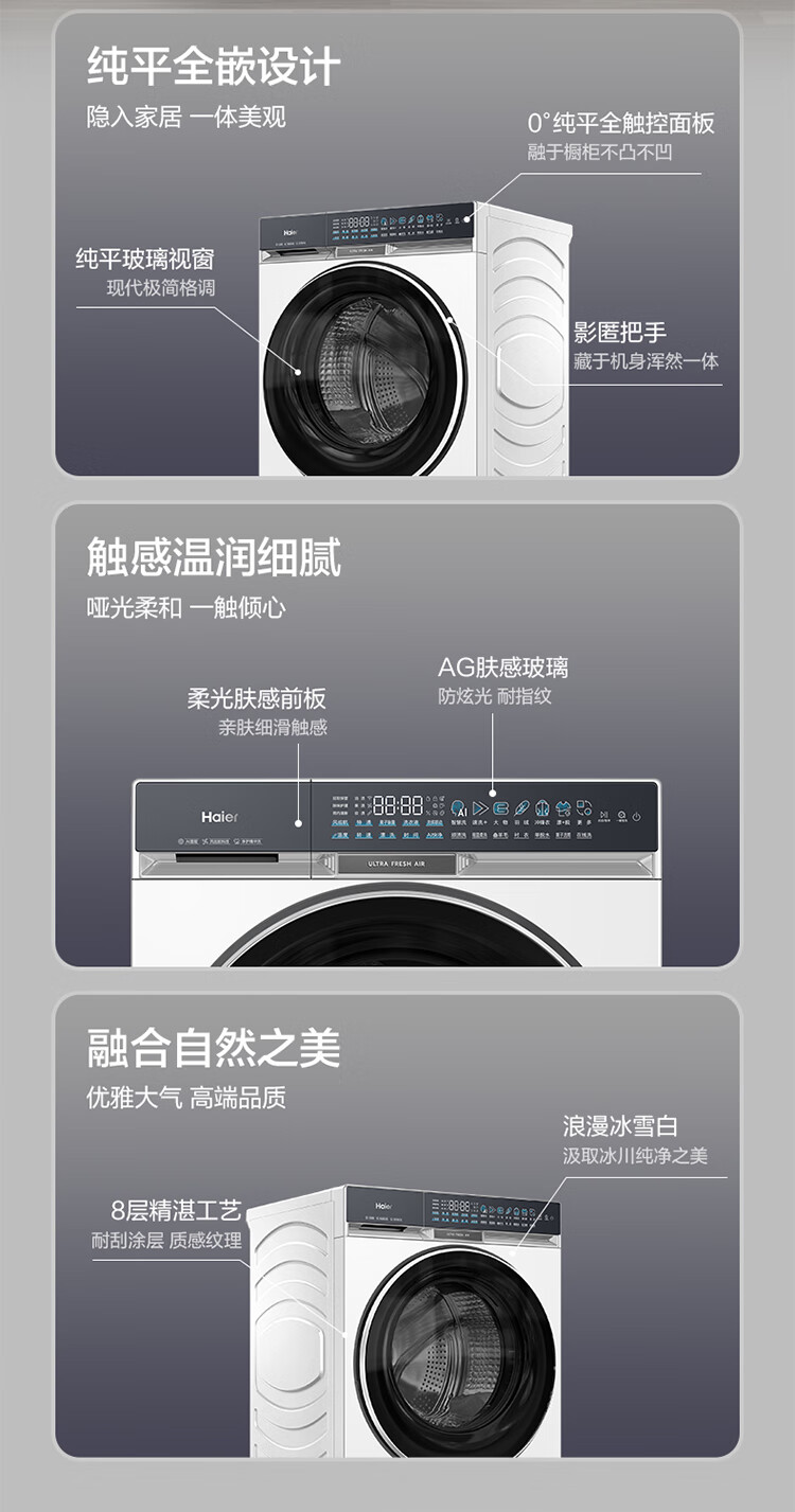 海尔(Haier)滚筒洗衣机全自动 麦浪X11系列 10公斤 家电国家补贴 超薄以旧换新 懒人家用 一级能效BLENG87WU1单洗