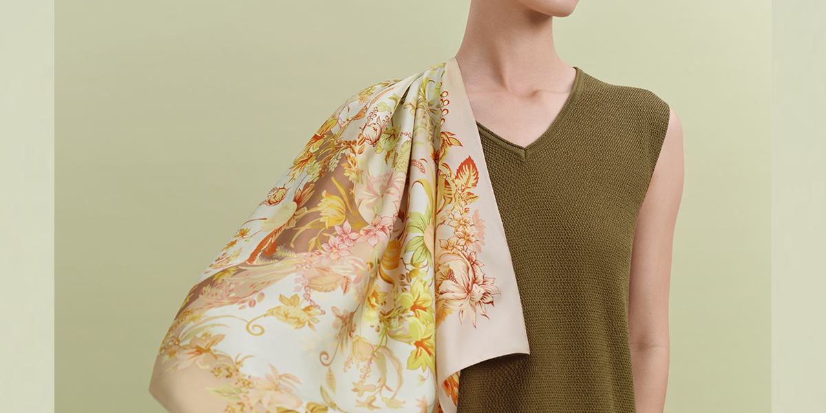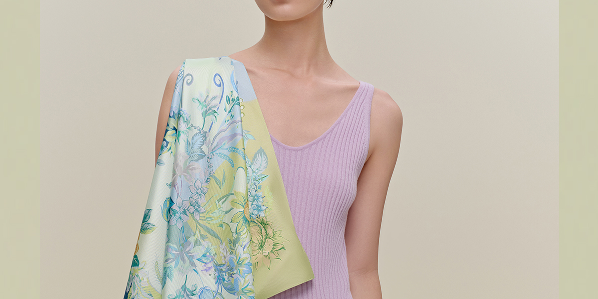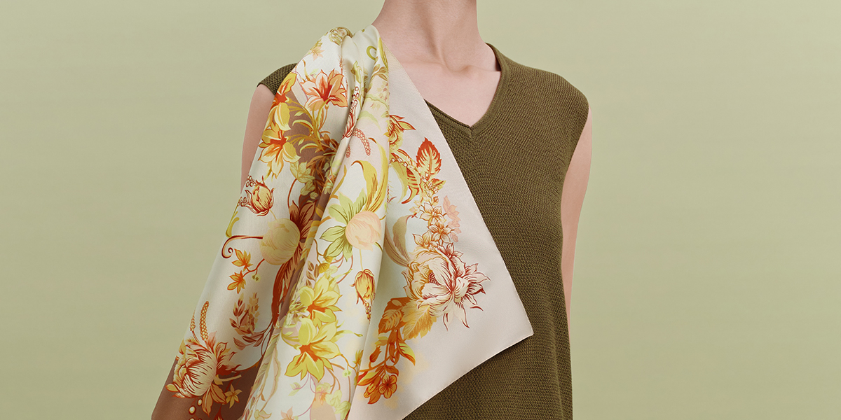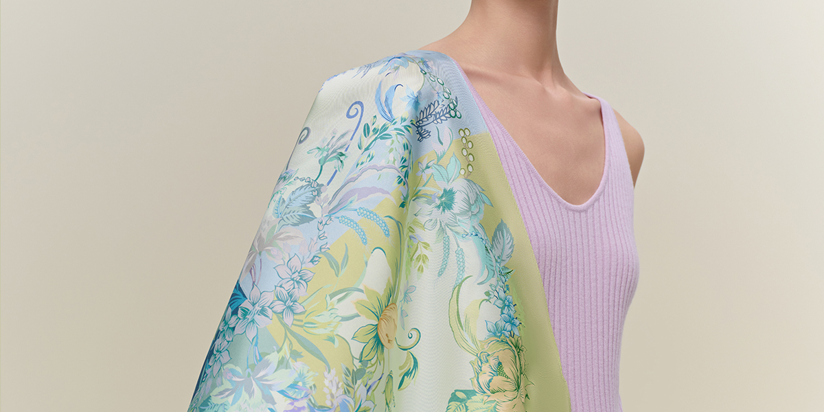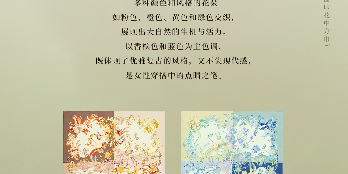 万事利“花漾绮梦”63厘米双面印花大方巾