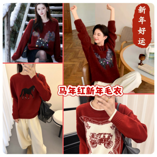 马年好运款红色休闲毛衣