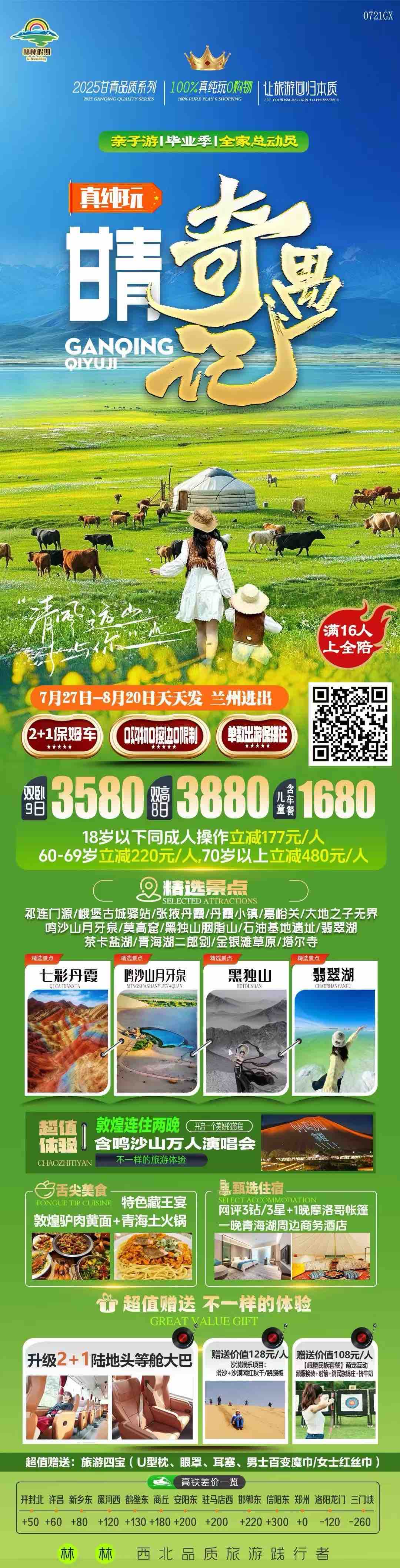 甘青-奇遇记-纯玩-全陪班【儿童票,含桌餐】