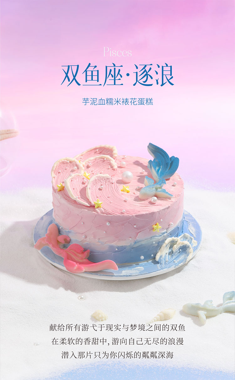双鱼座·逐浪·芋泥血糯米裱花蛋糕,可选1/1.5/2.5/3.5/6磅 | 36CAKE