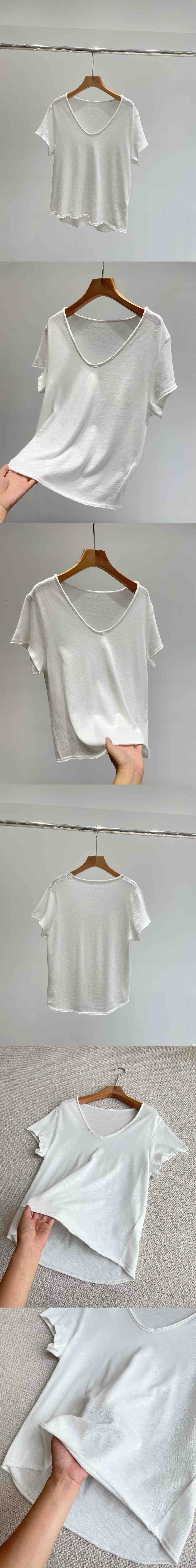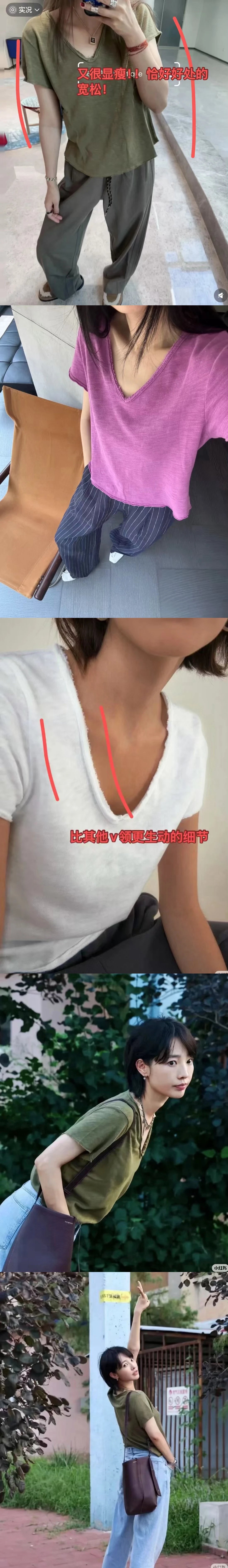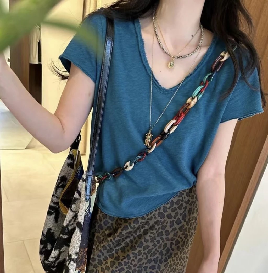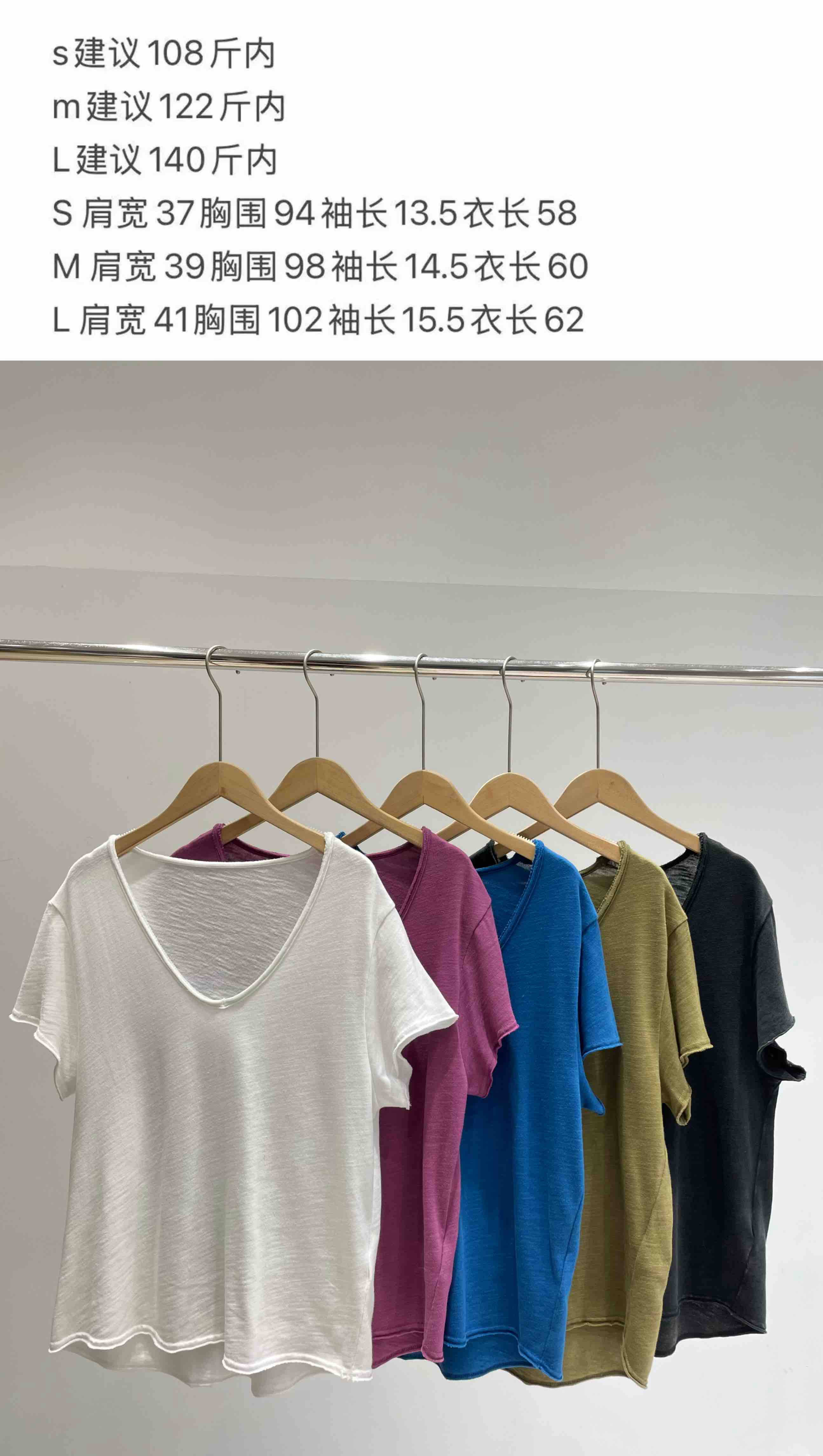 自留5色!AMV章小惠同款 竹节棉短袖T恤 小V领 老钱松弛感短袖 多巴胺TEE恤