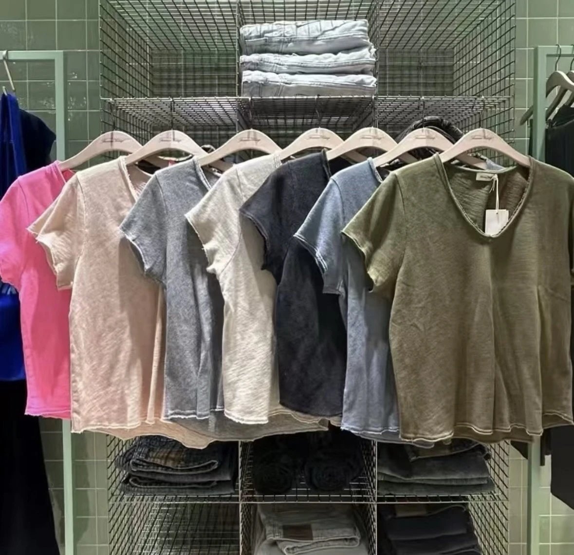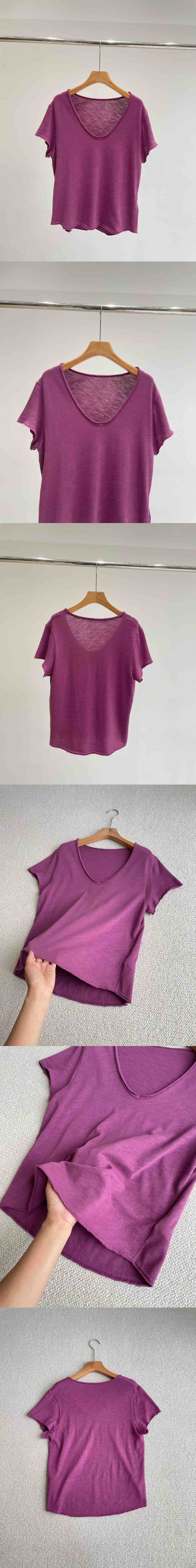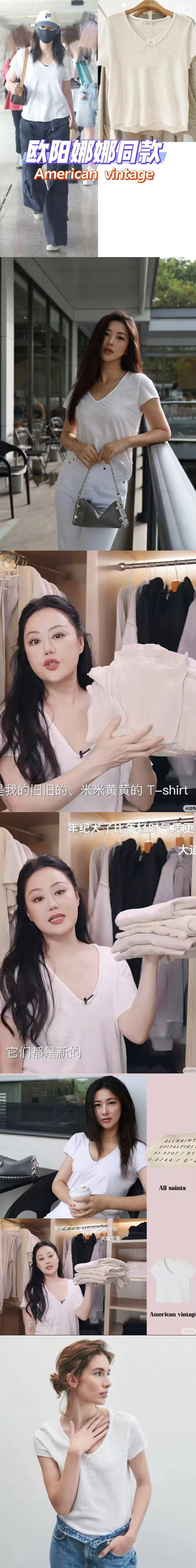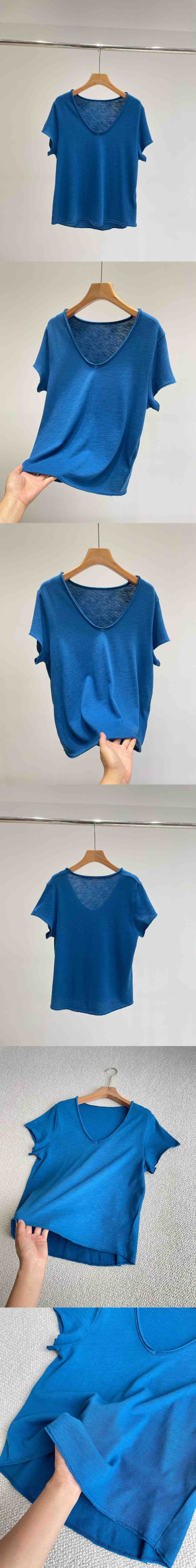 自留5色!AMV章小惠同款 竹节棉短袖T恤 小V领 老钱松弛感短袖 多巴胺TEE恤