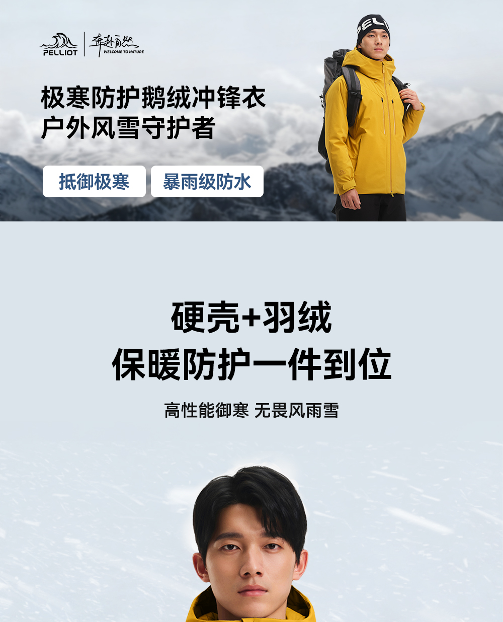 伯希和户外800蓬鹅绒冲锋衣25秋冬新款防水防风徒步登山羽绒服男