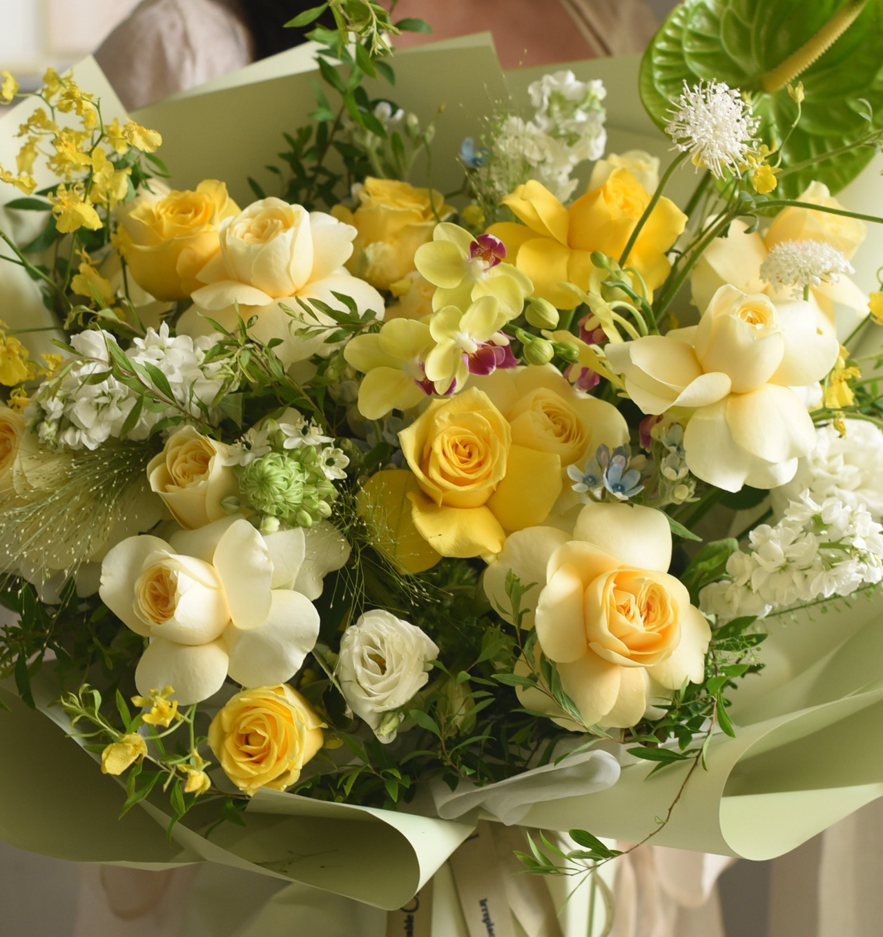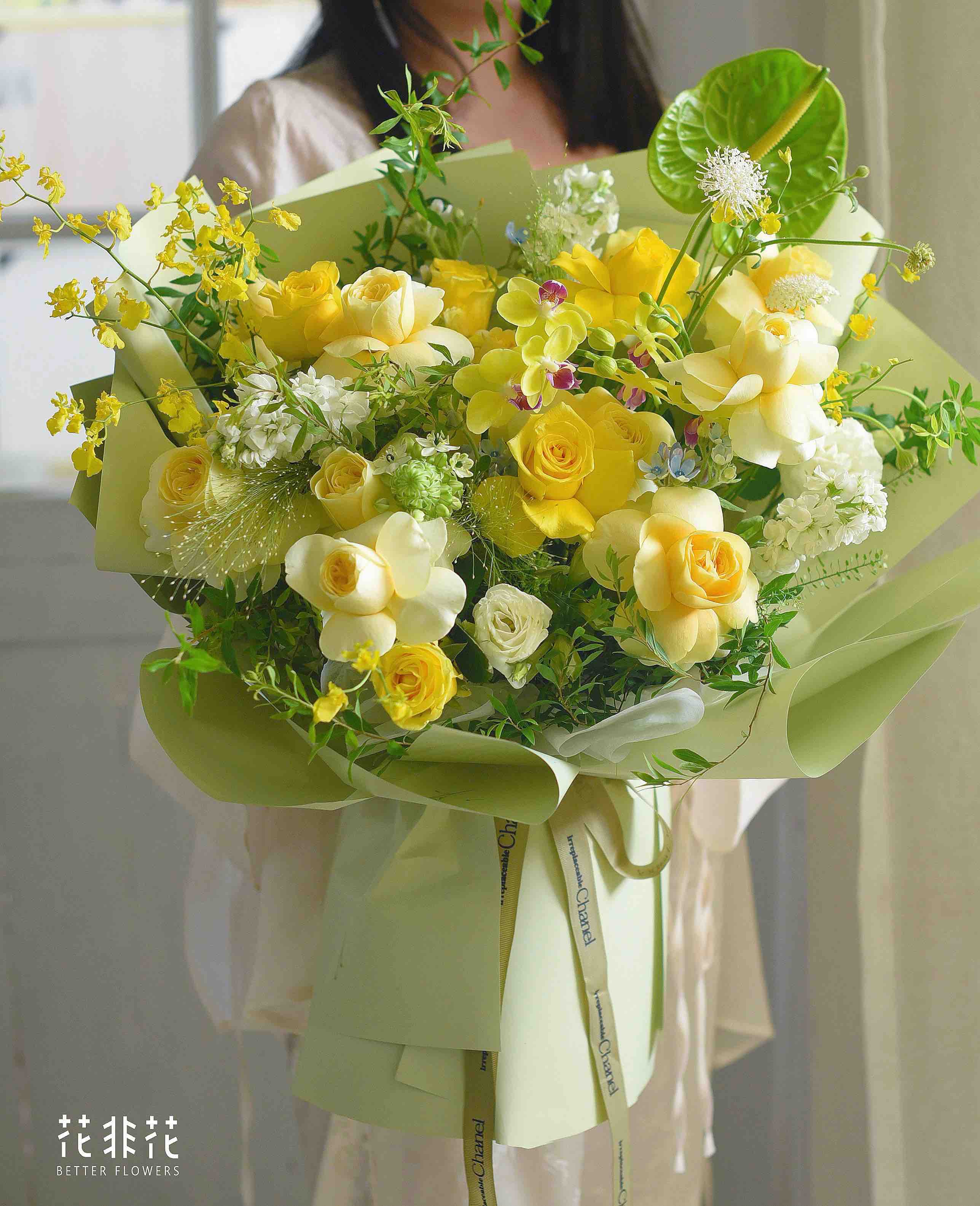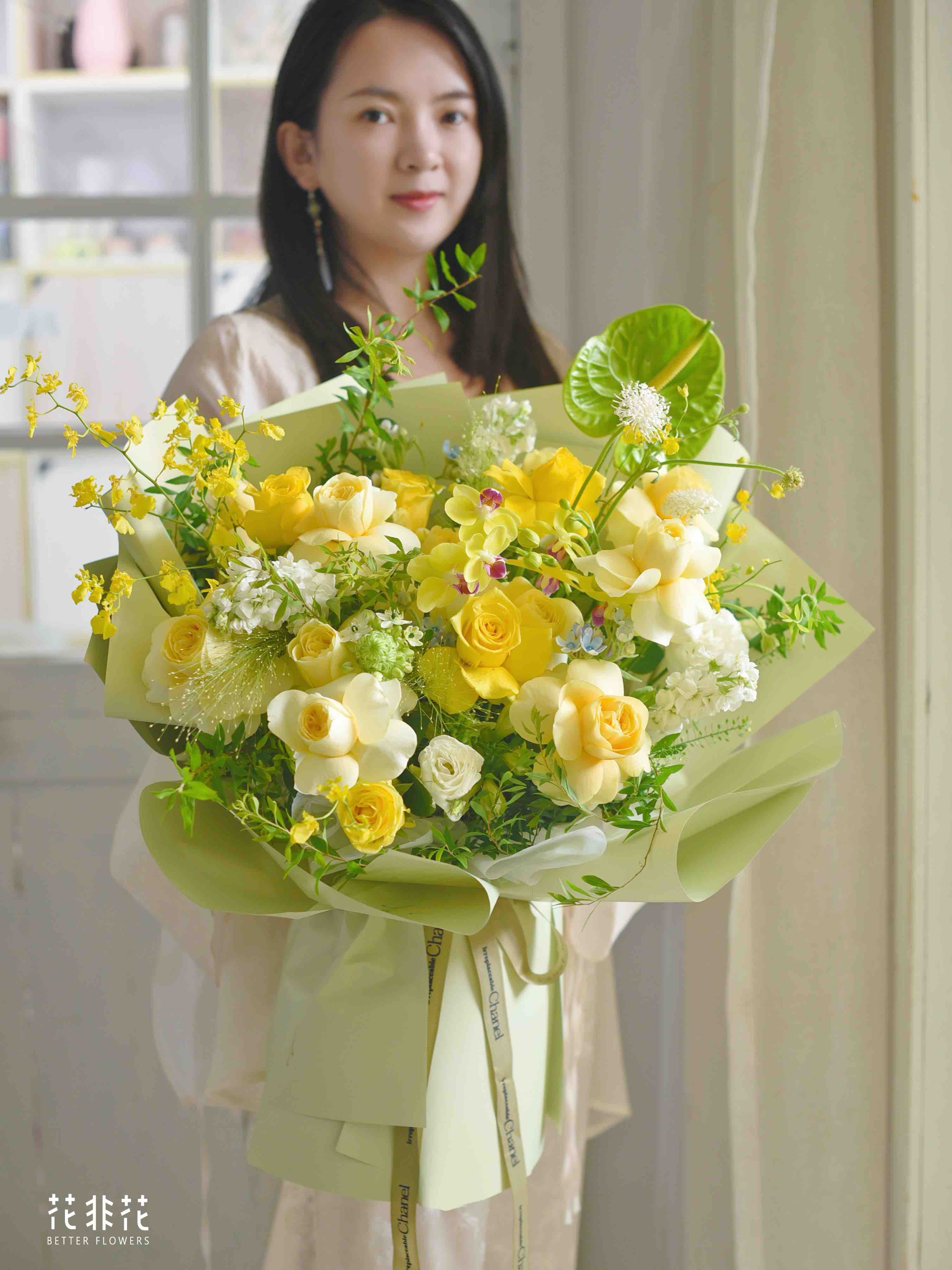 《柠檬薄荷》蝴蝶兰奶油杯绿掌清晰夏日花束