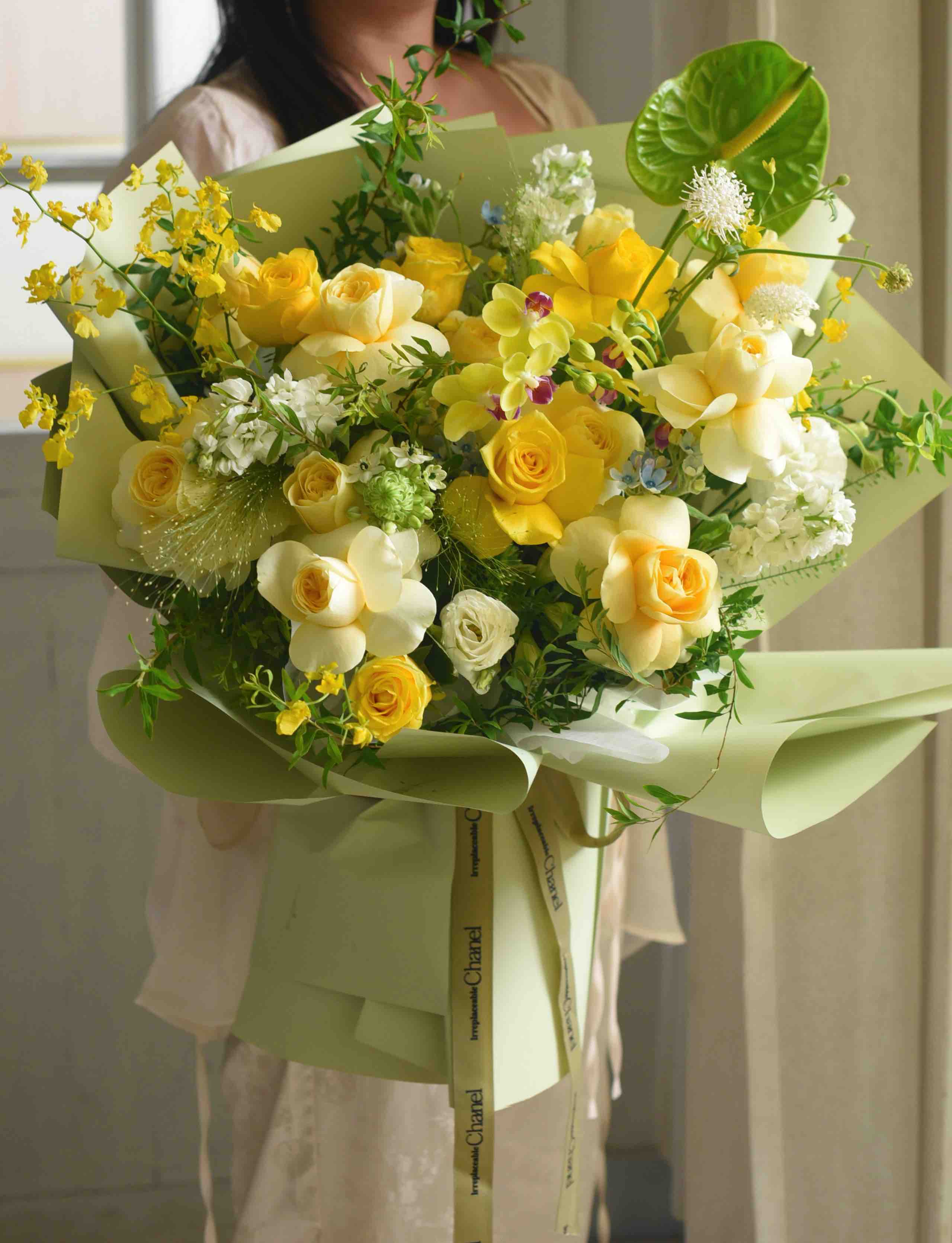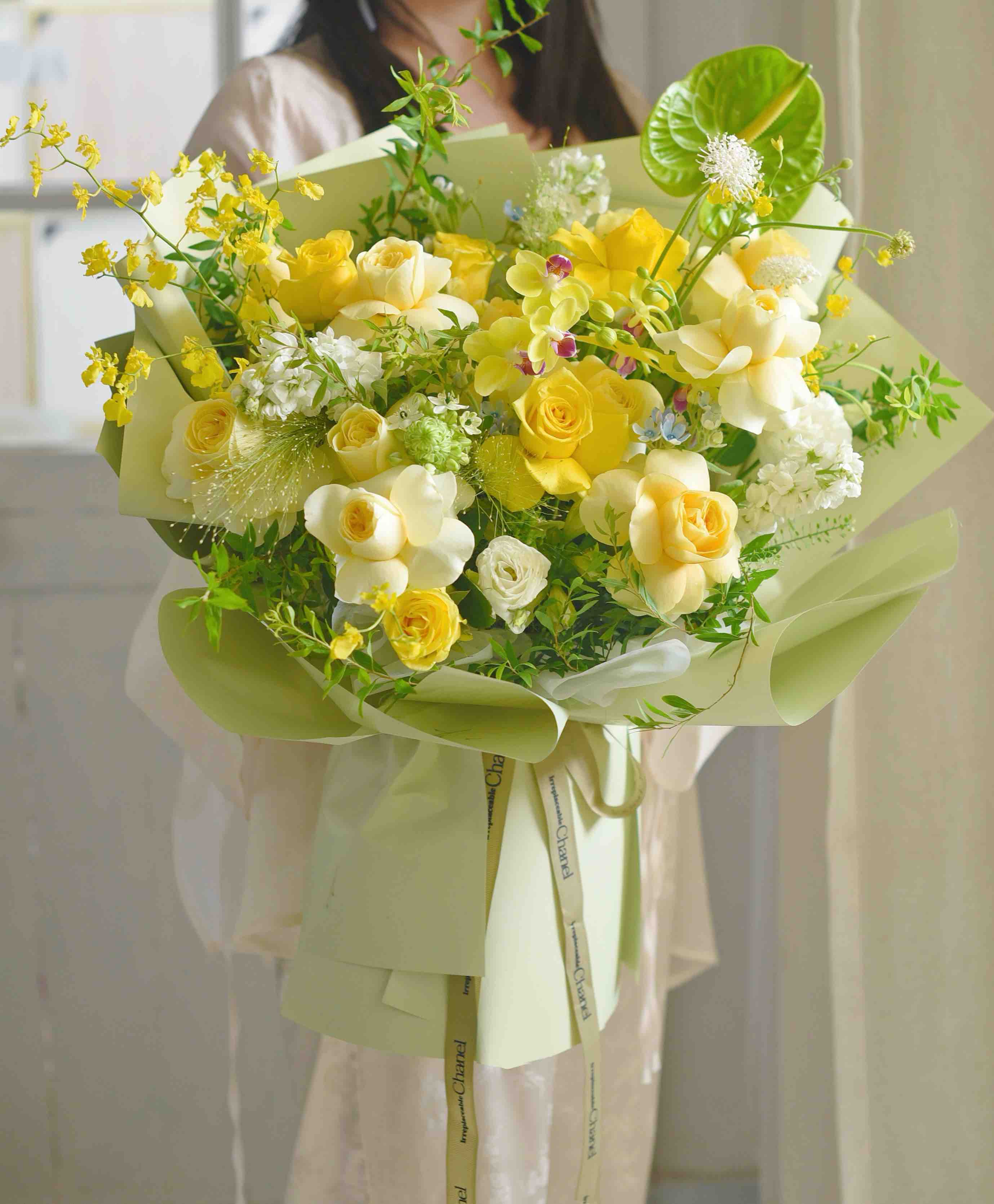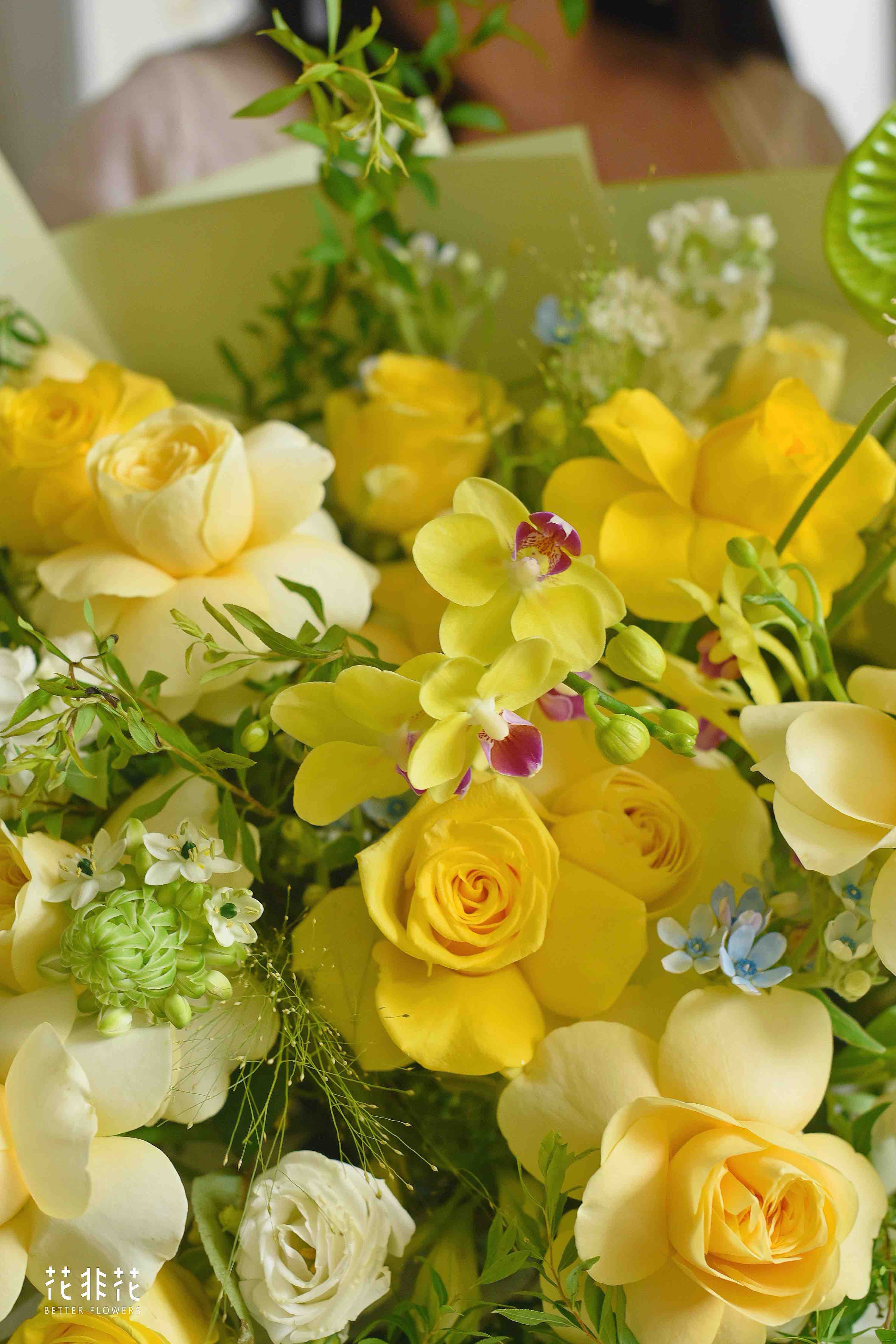 《柠檬薄荷》蝴蝶兰奶油杯绿掌清晰夏日花束