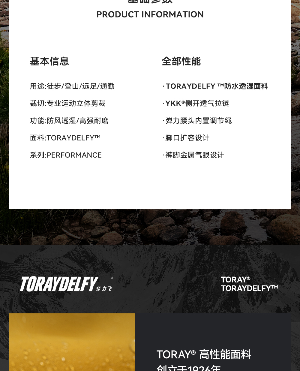 【P系列】伯希和户外硬壳冲锋裤TORAYDELFY防水登山裤防风保暖裤