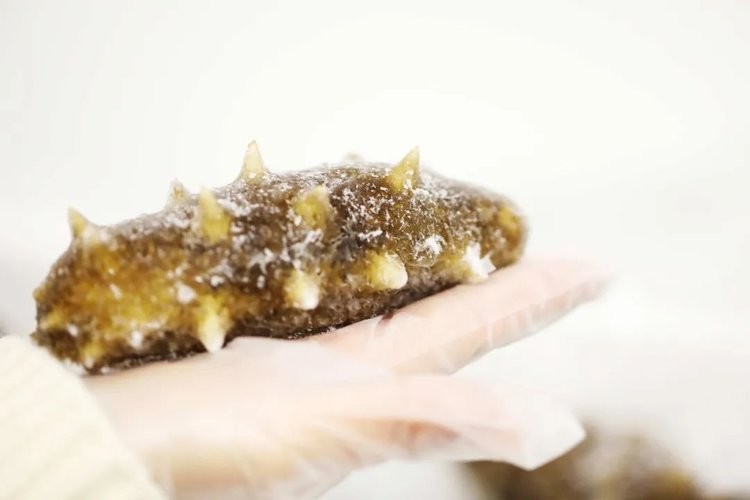 盐干海参通常表面有明显盐粒或盐沫,所以整体偏白,呈白灰,看不清海参纹理褶皱。只有糖干海参,因为加糖、染色的缘故,才会全部乌黑发亮,看起来品相很好。