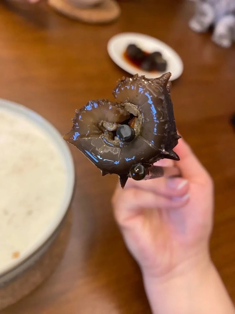 2.海参鸡蛋羹:将海参与少量木耳切碎后放入搅拌好的鸡蛋中蒸蛋羹。