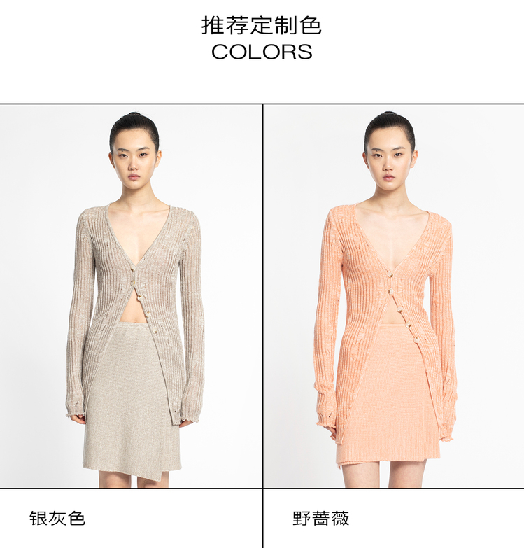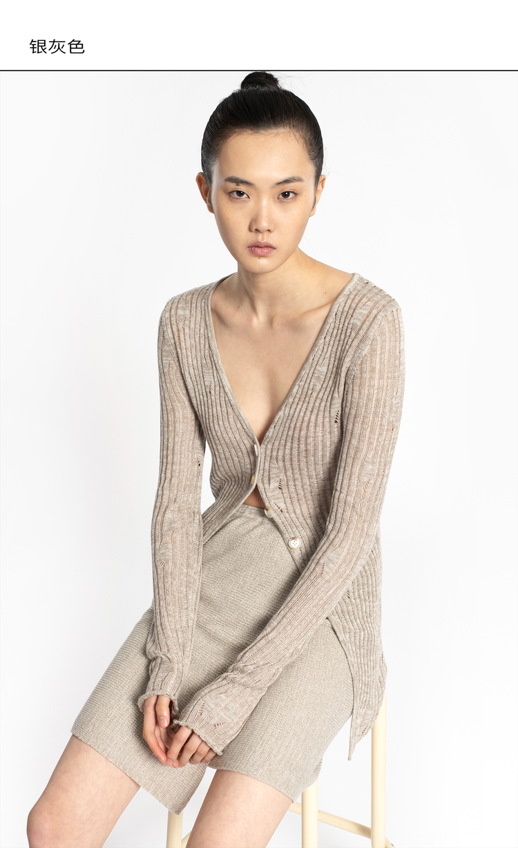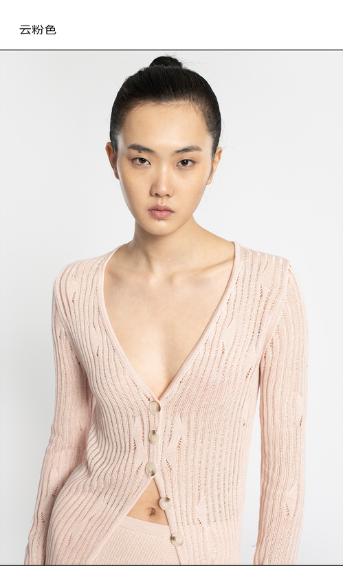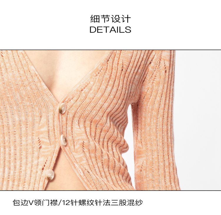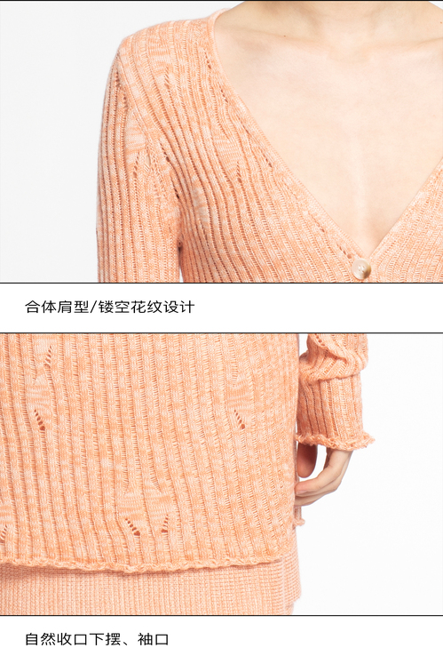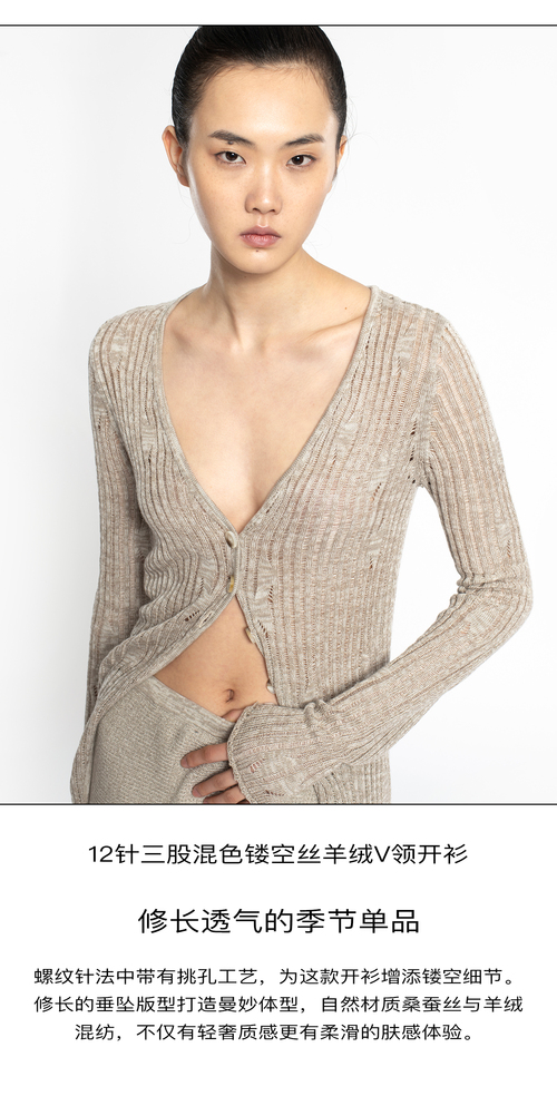 2022新款女士真丝羊绒12针3股混色镂空V领开衫