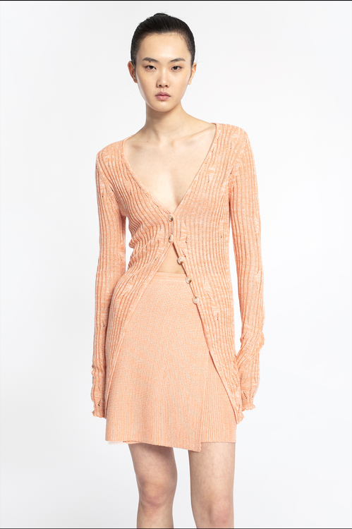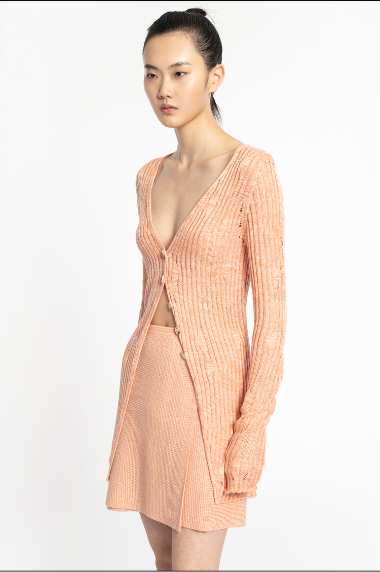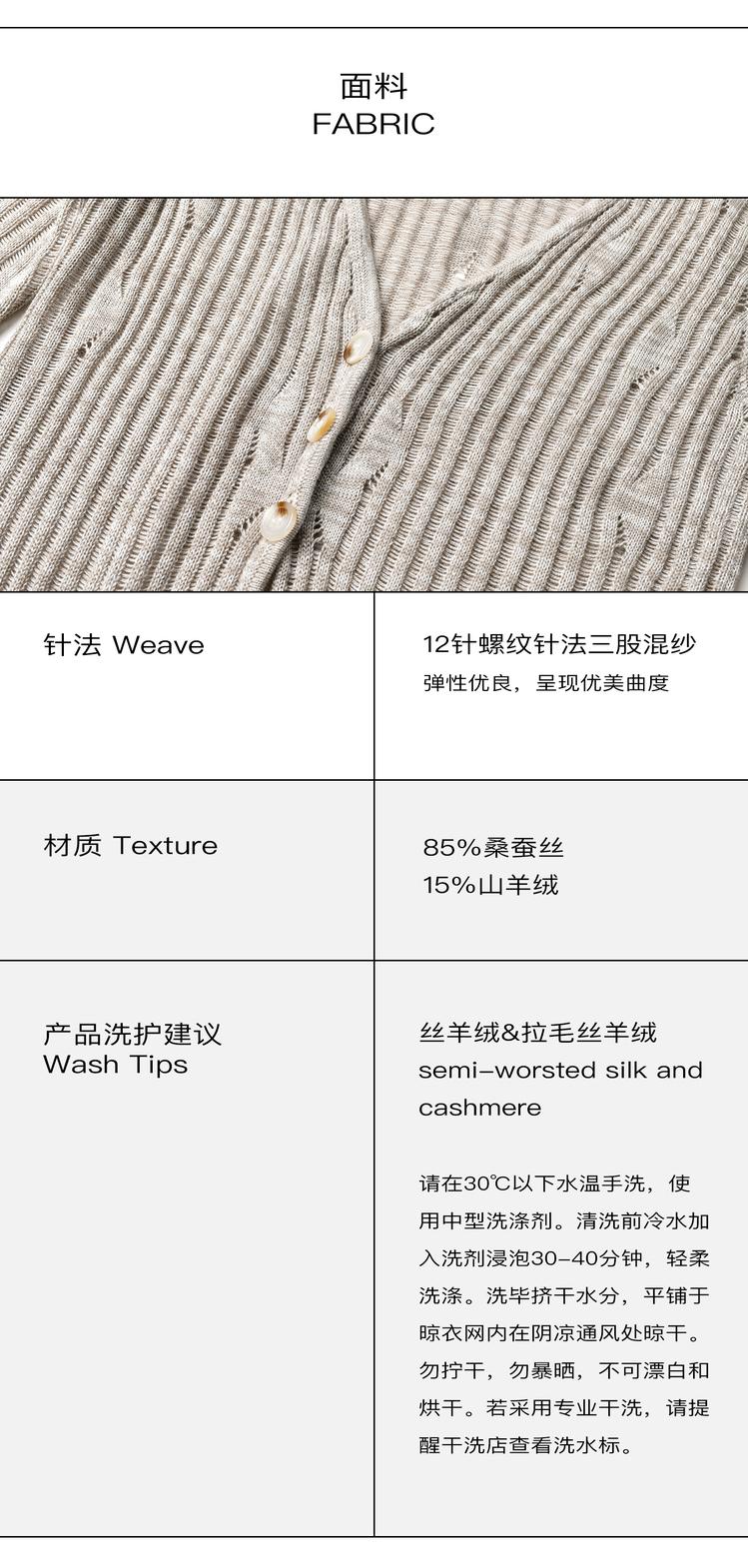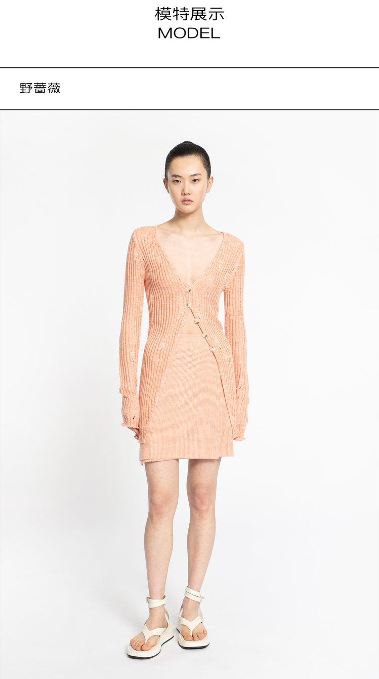 2022新款女士真丝羊绒12针3股混色镂空V领开衫