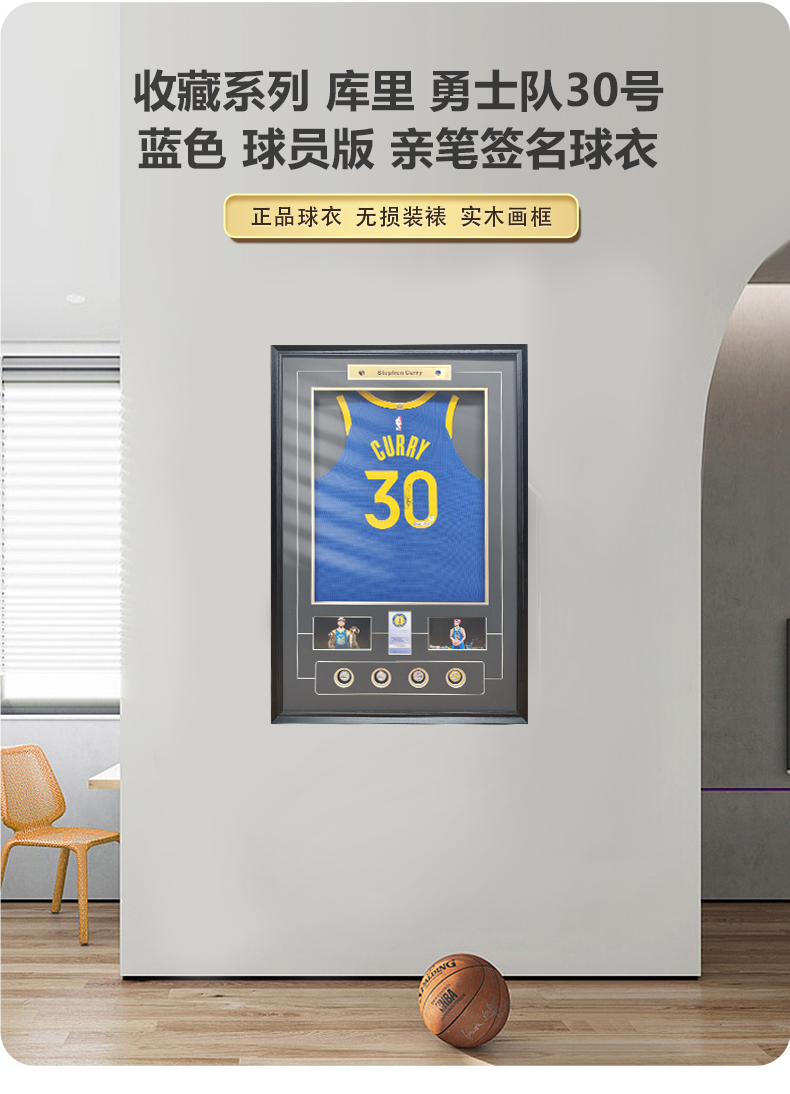 收藏系列 库里 勇士队30号蓝色球迷版 亲笔签名球衣