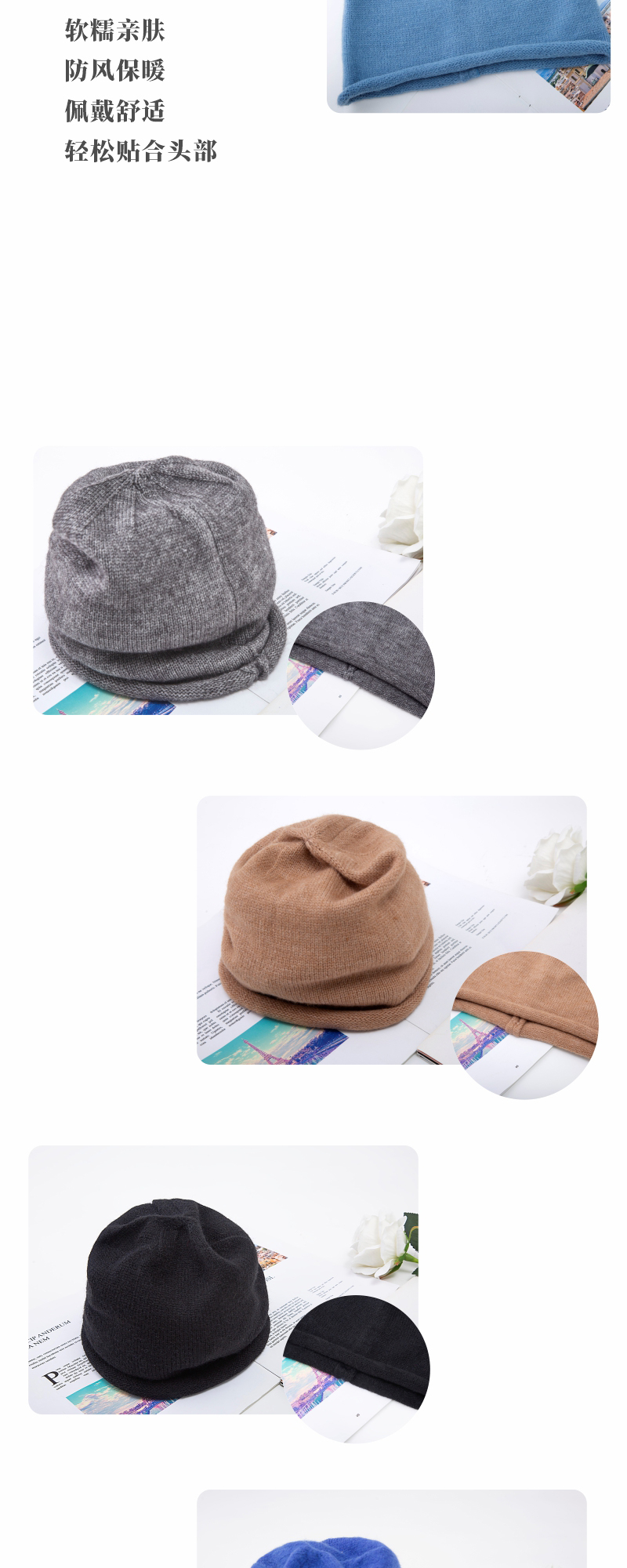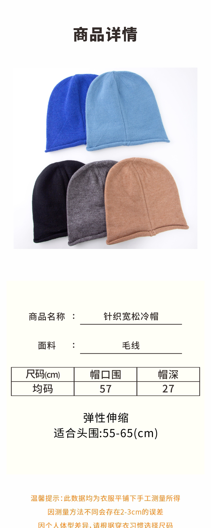 针织宽松冷帽(适合大头围)