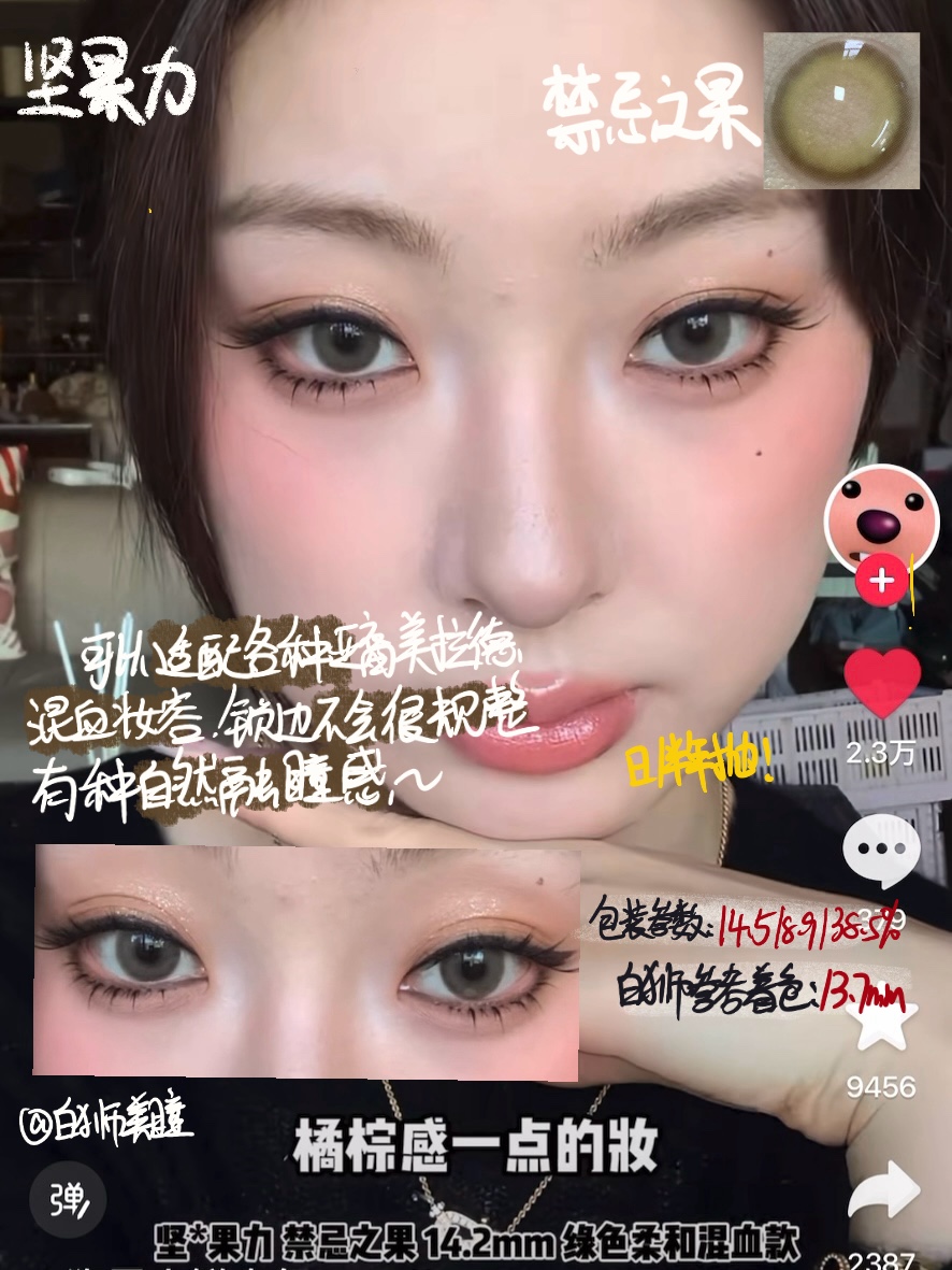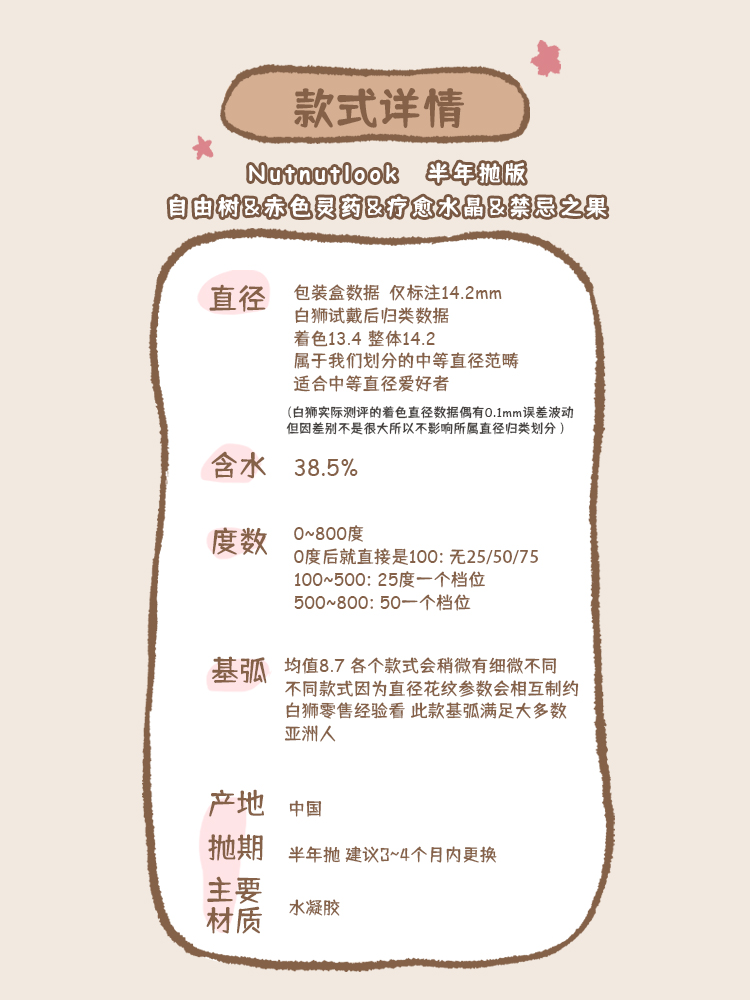 坚果力半年抛 · 自由树&禁忌之果&赤色灵药&疗愈水晶 14.2mm中等直径着色 半年抛2片