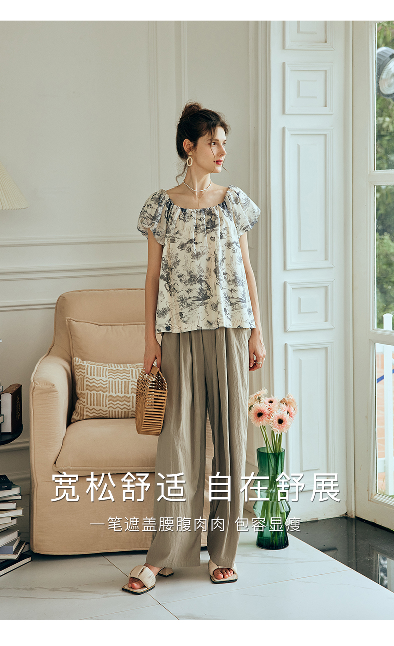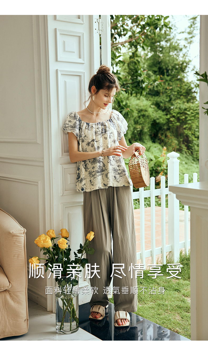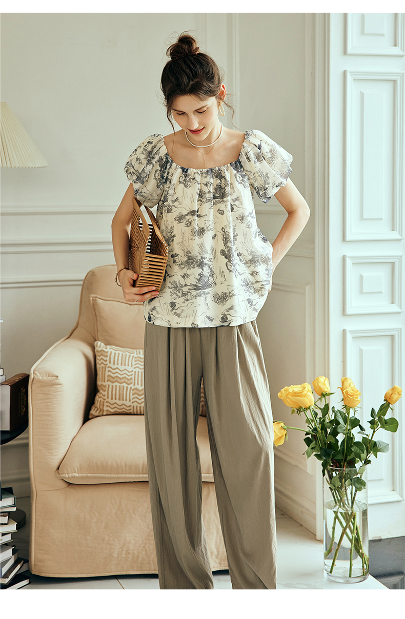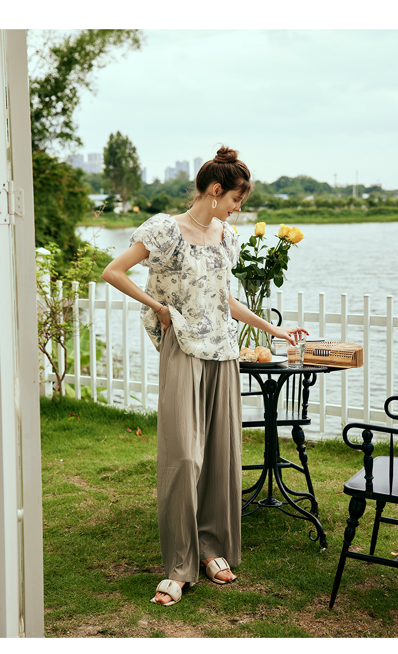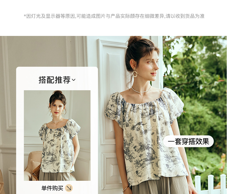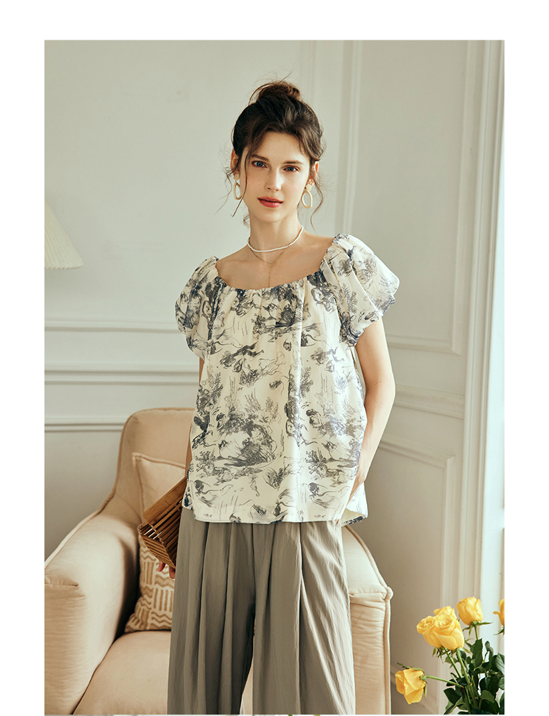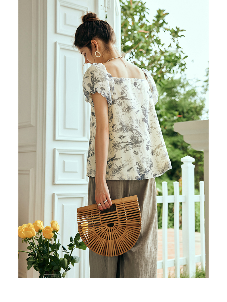 OLrain欧芮儿法式碎花方领蕾丝雪纺衫女夏季2023新款宽松度假小衫