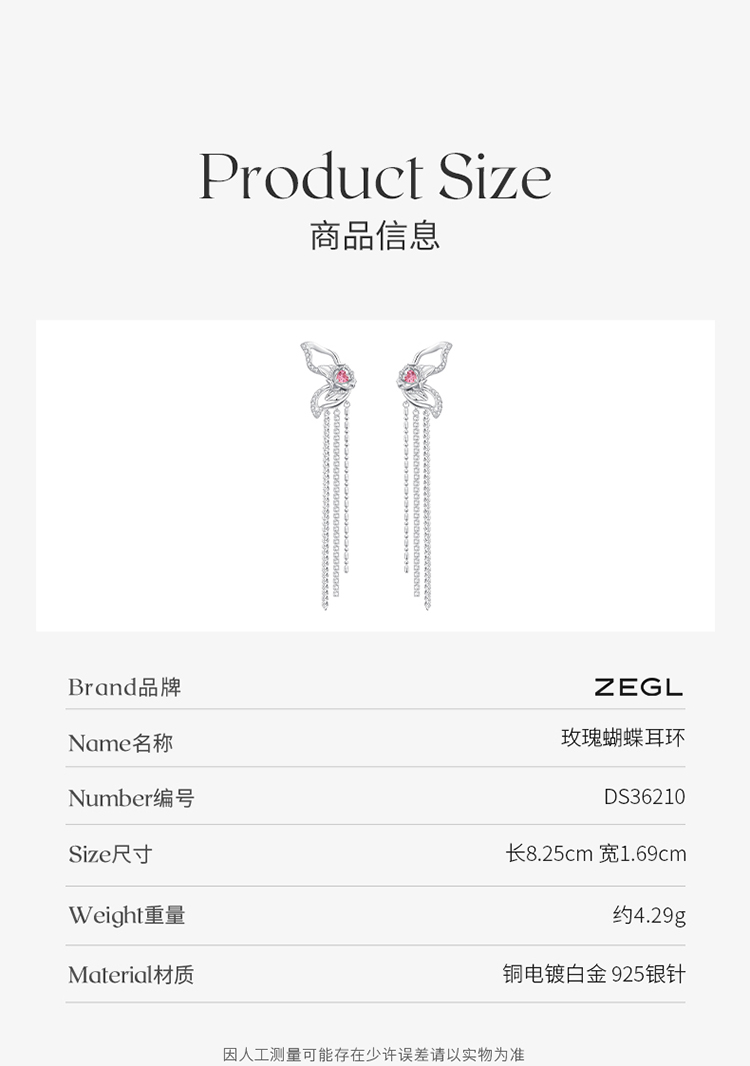 ZEGL设计师微醺玫瑰系列花朵流苏耳环女长款耳钉秋冬925银针耳饰