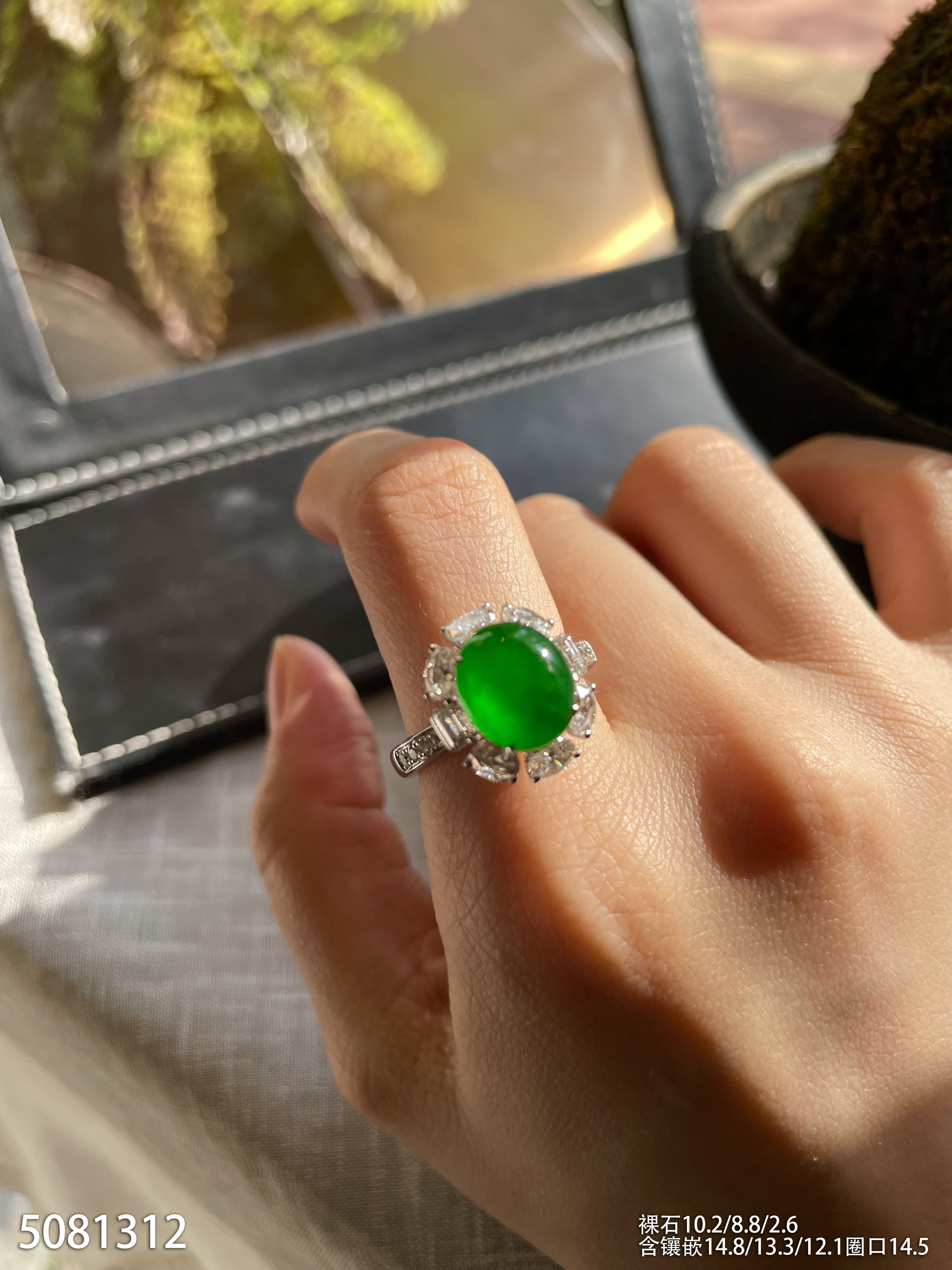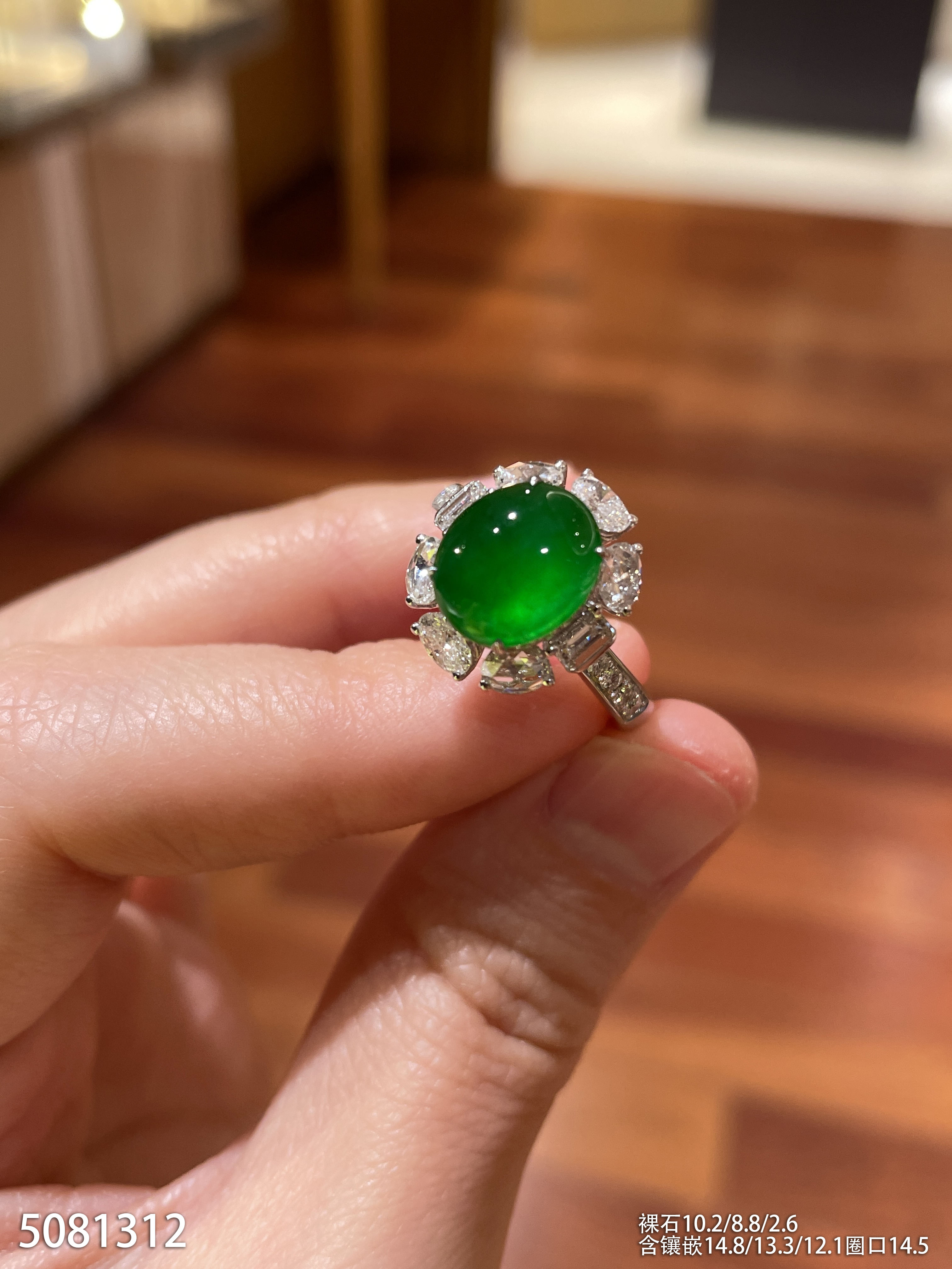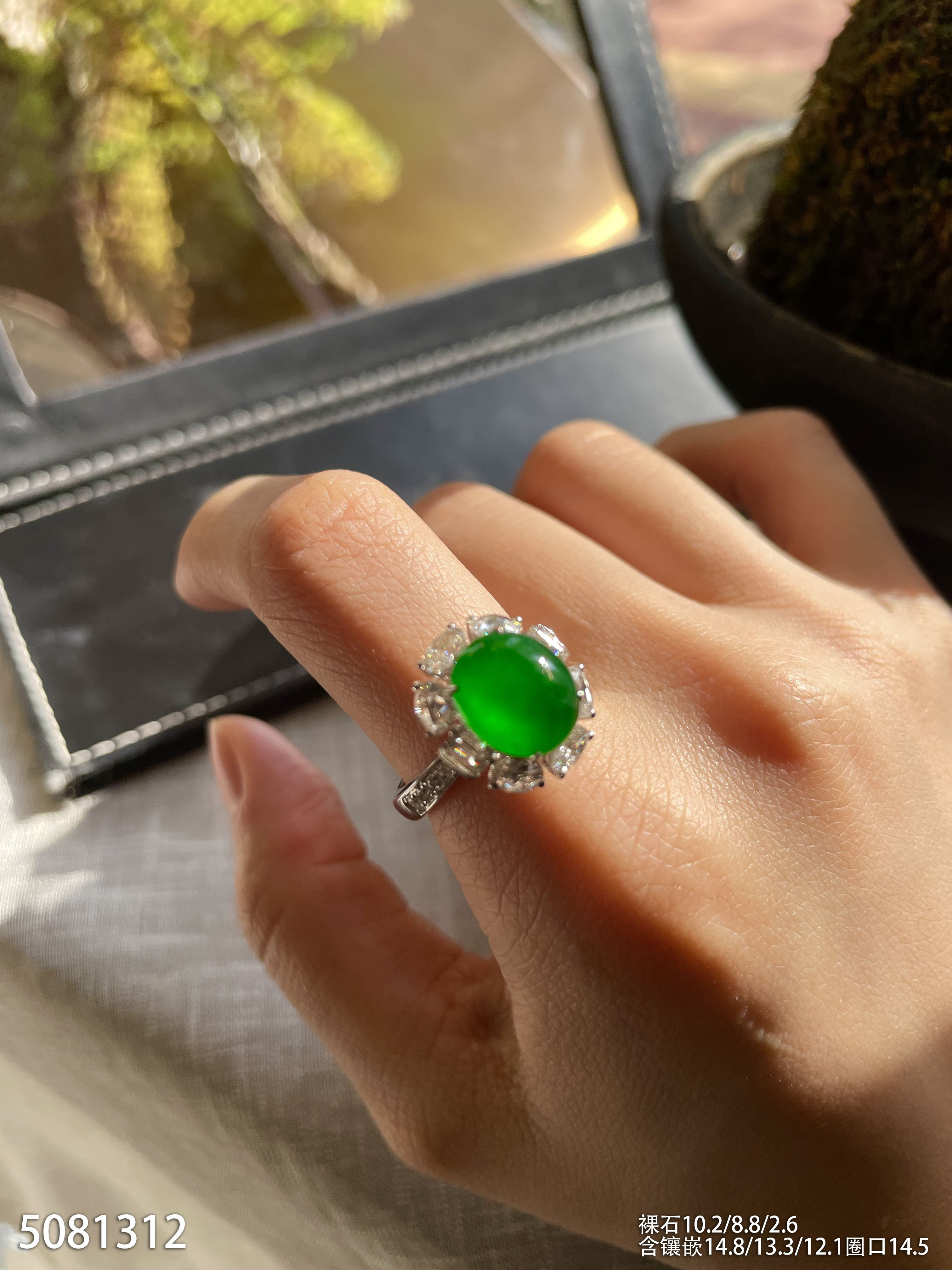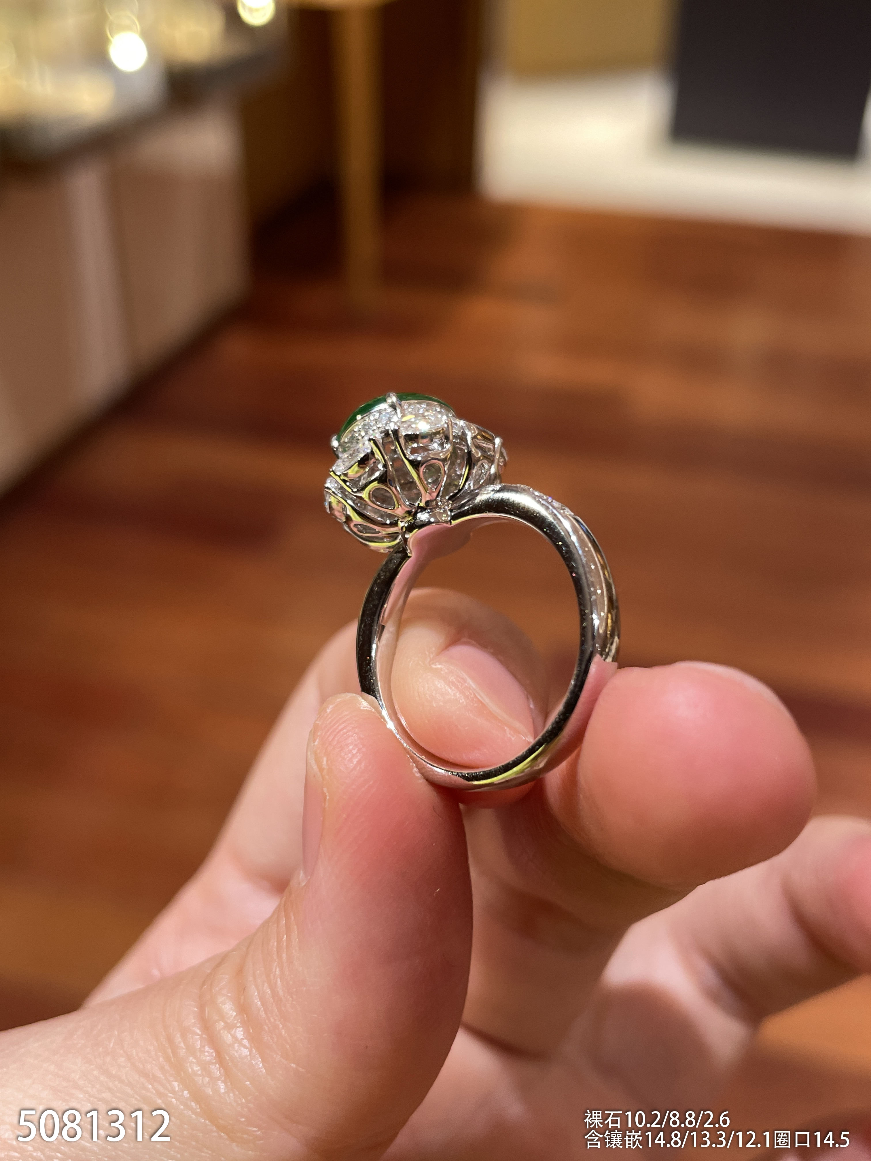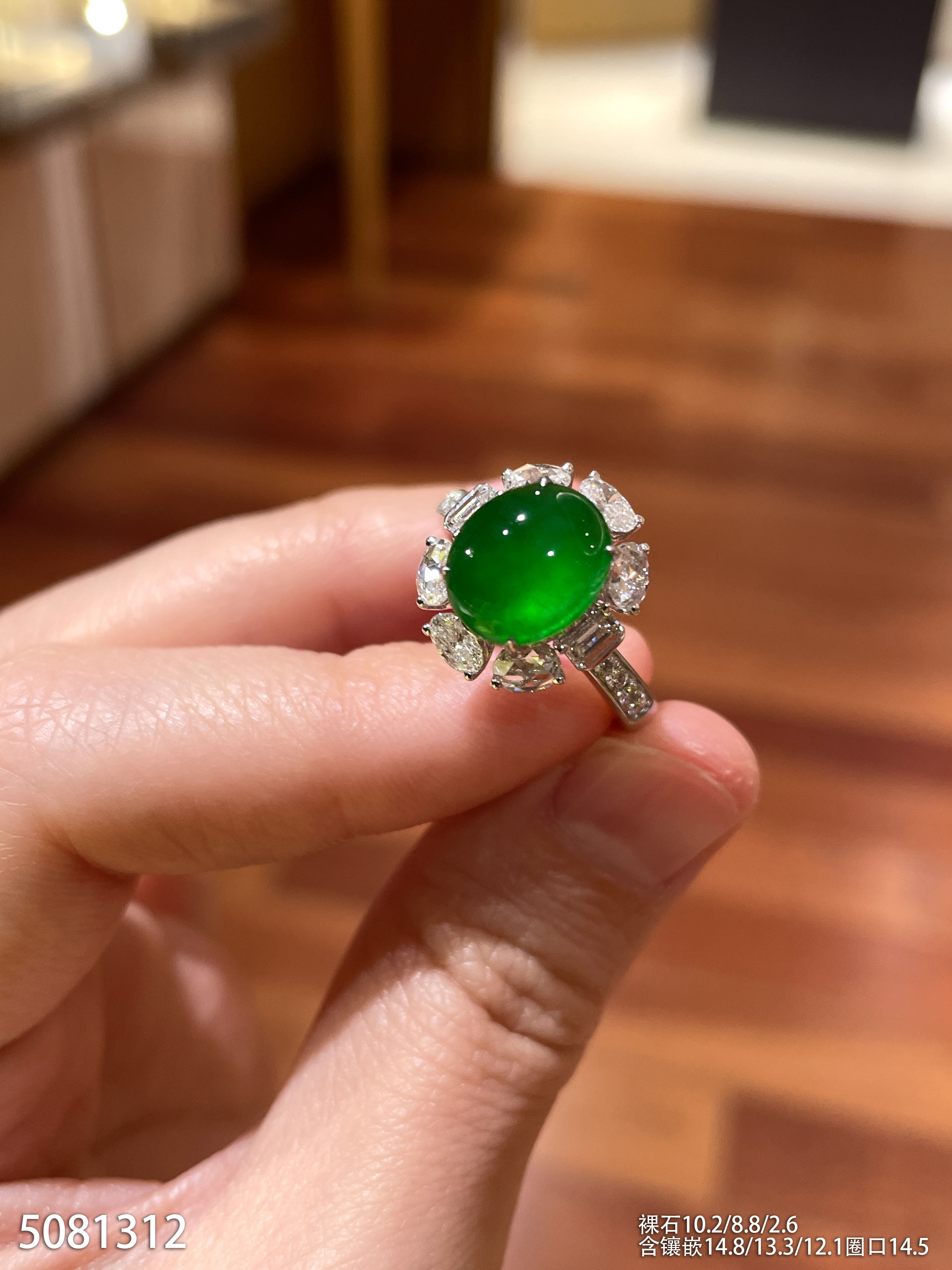 老坑玻璃种帝王绿蛋面戒指【5081312】具体价格微信咨询