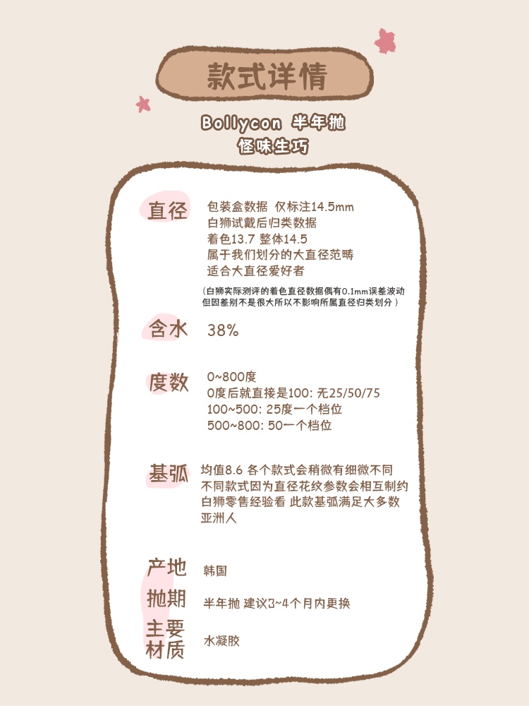 Bollycon旗下|怪味生巧|14.5mm白狮参考着色大直径 半年抛 2片