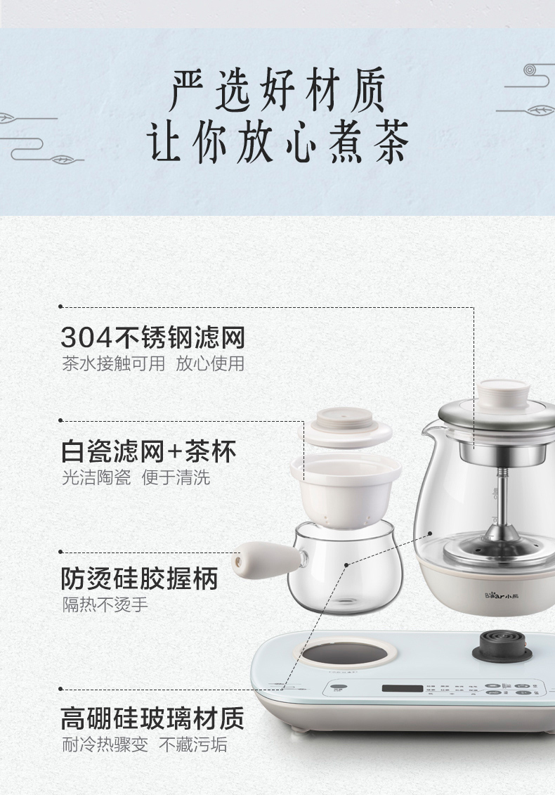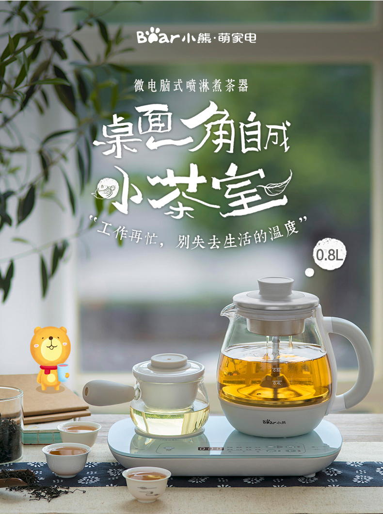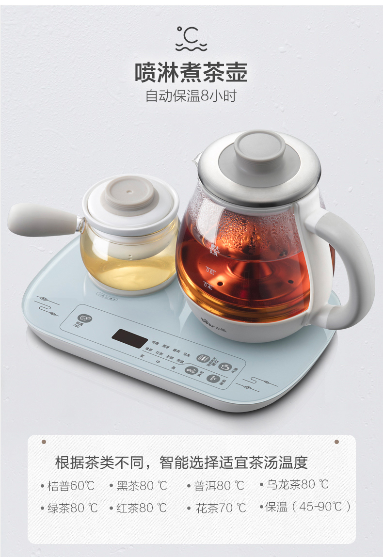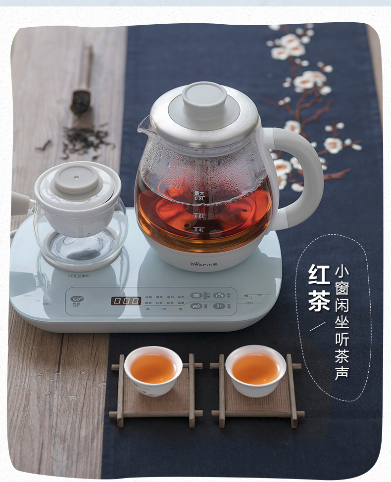 小熊(Bear)煮茶器煮茶壶 0.8L蒸汽喷淋式蒸茶壶养生壶电水壶热水壶304不锈钢烧水壶黑茶ZCQ-A08E1