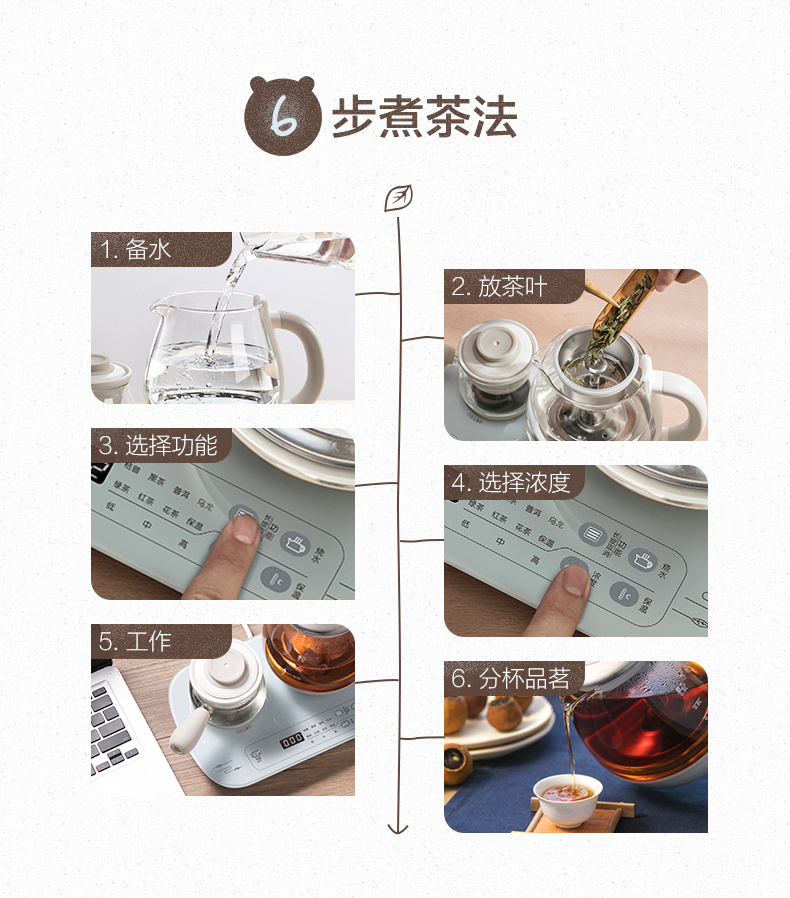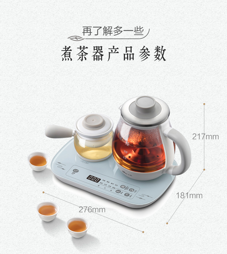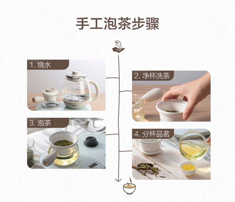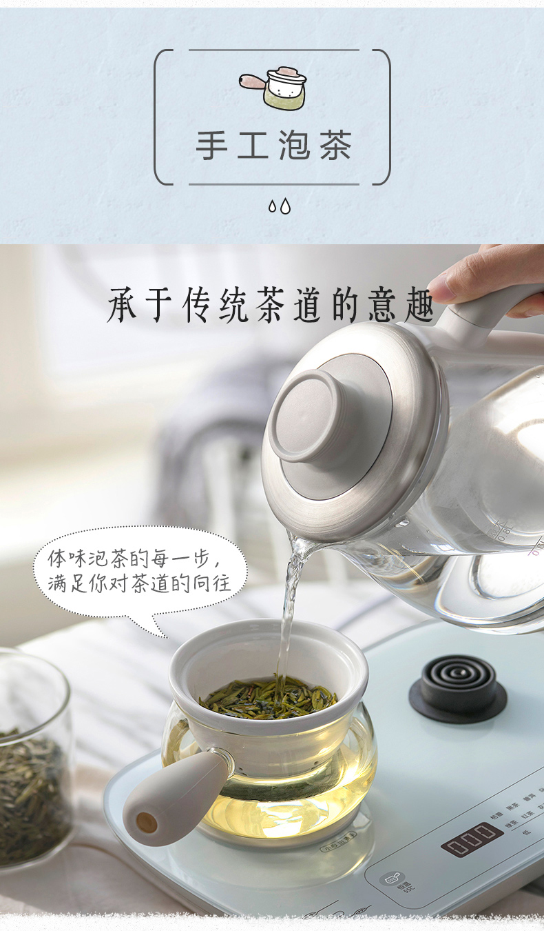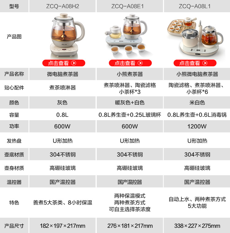 小熊(Bear)煮茶器煮茶壶 0.8L蒸汽喷淋式蒸茶壶养生壶电水壶热水壶304不锈钢烧水壶黑茶ZCQ-A08E1
