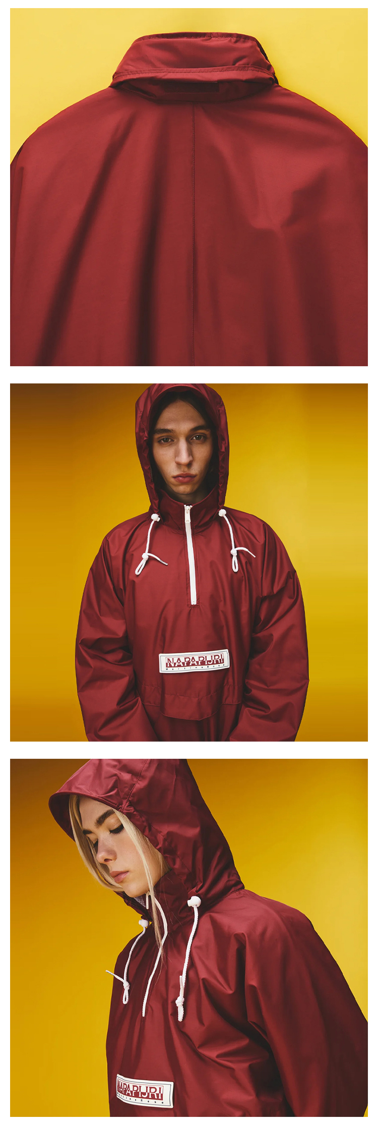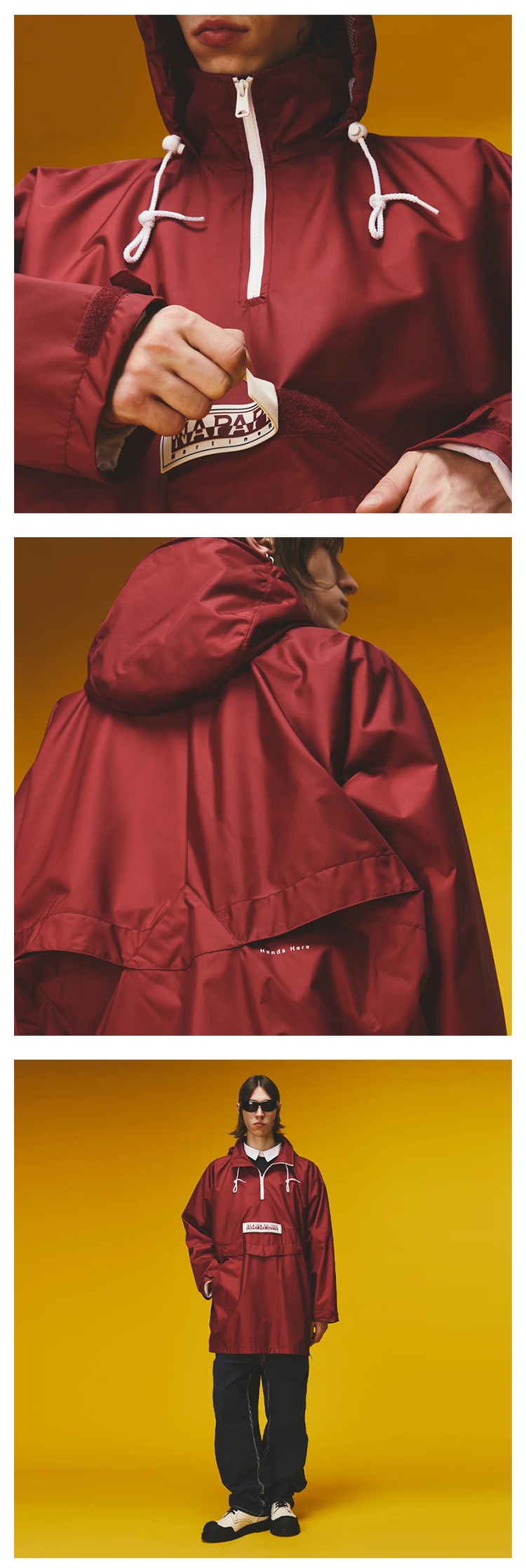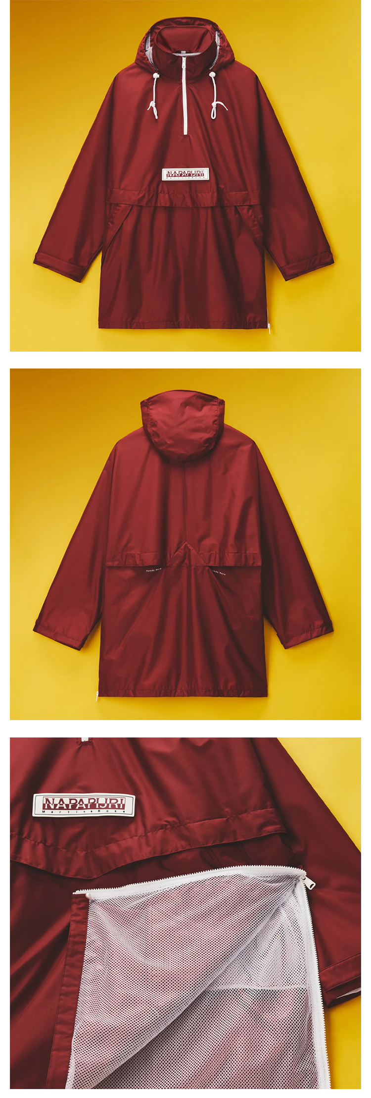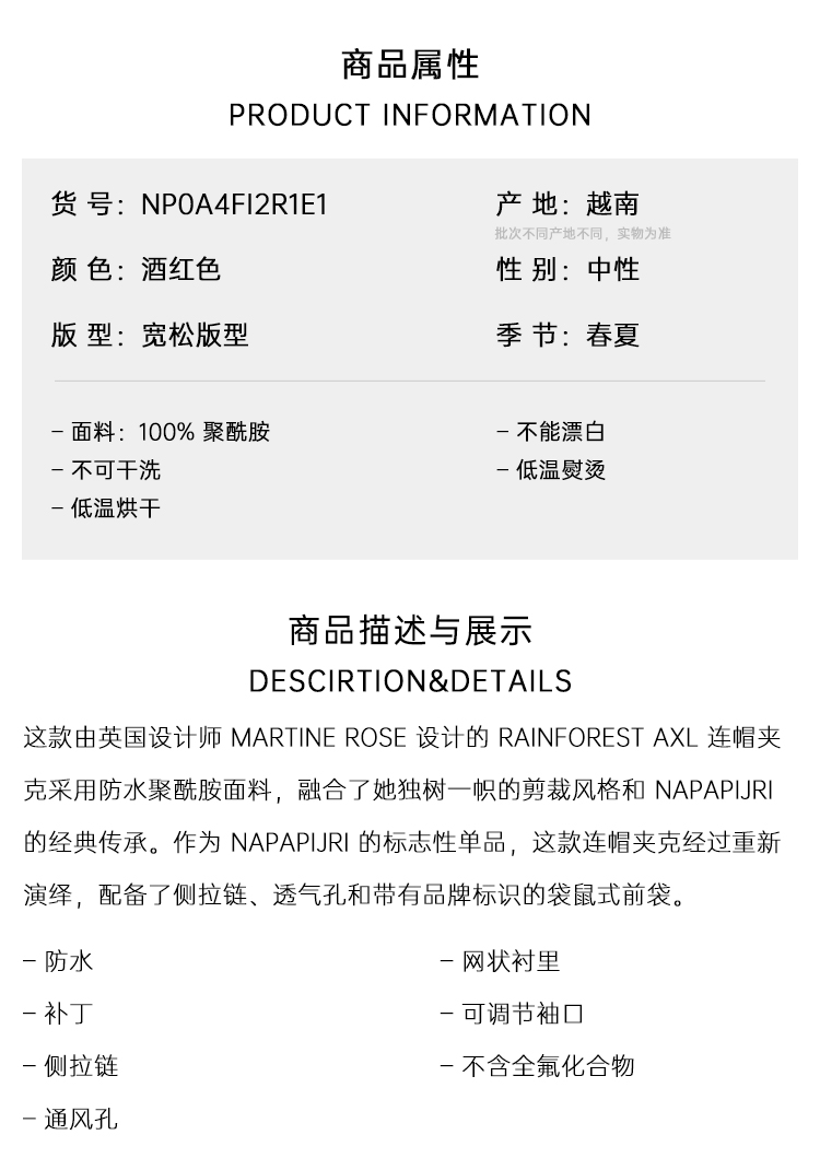 Napapijri 中性Martine Rose联名 Rainforest Axl 字母徽标贴片连帽雨衣 酒红色 NP0A4FI2R1E1