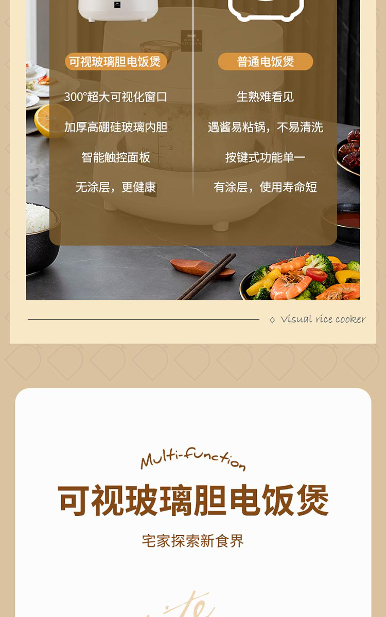 康宁 可视玻璃胆电饭煲 WK-GFB3012/KZ