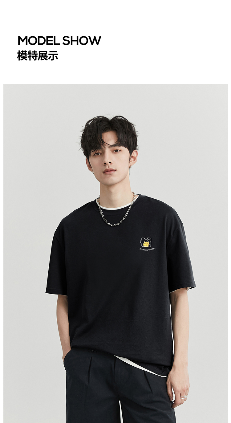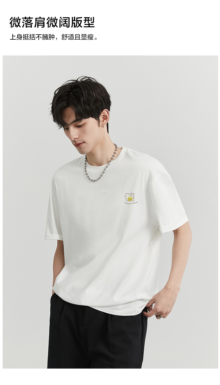 gxgjeans男装【100%棉】男士T恤26夏款重磅舒适透气落肩印花短袖男K&C