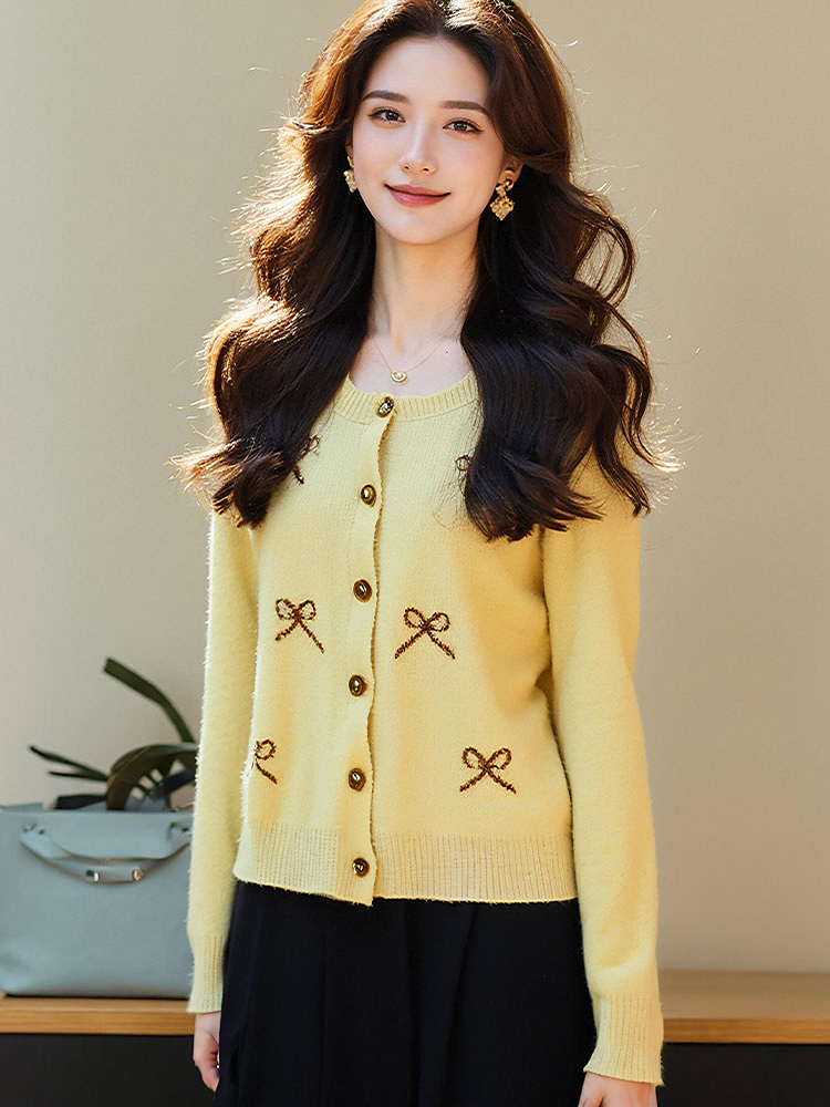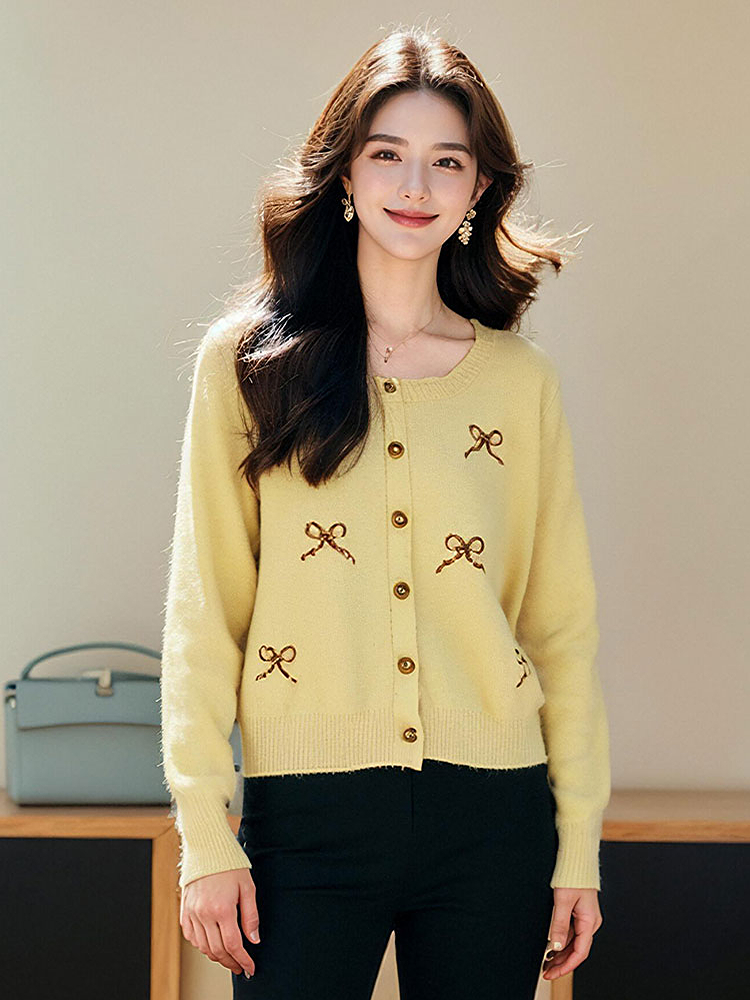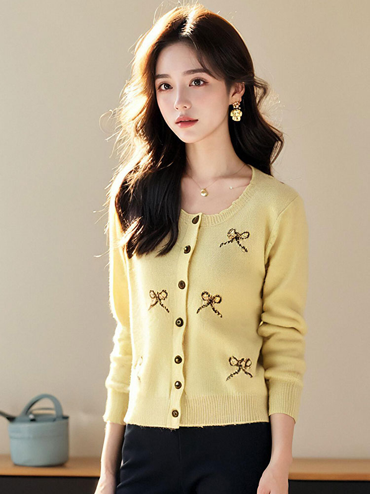 奢姿2025春装新款大码女装亮片圆领针织衫单排扣装饰气质优雅毛衣9651669582