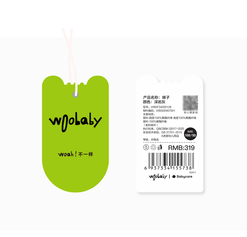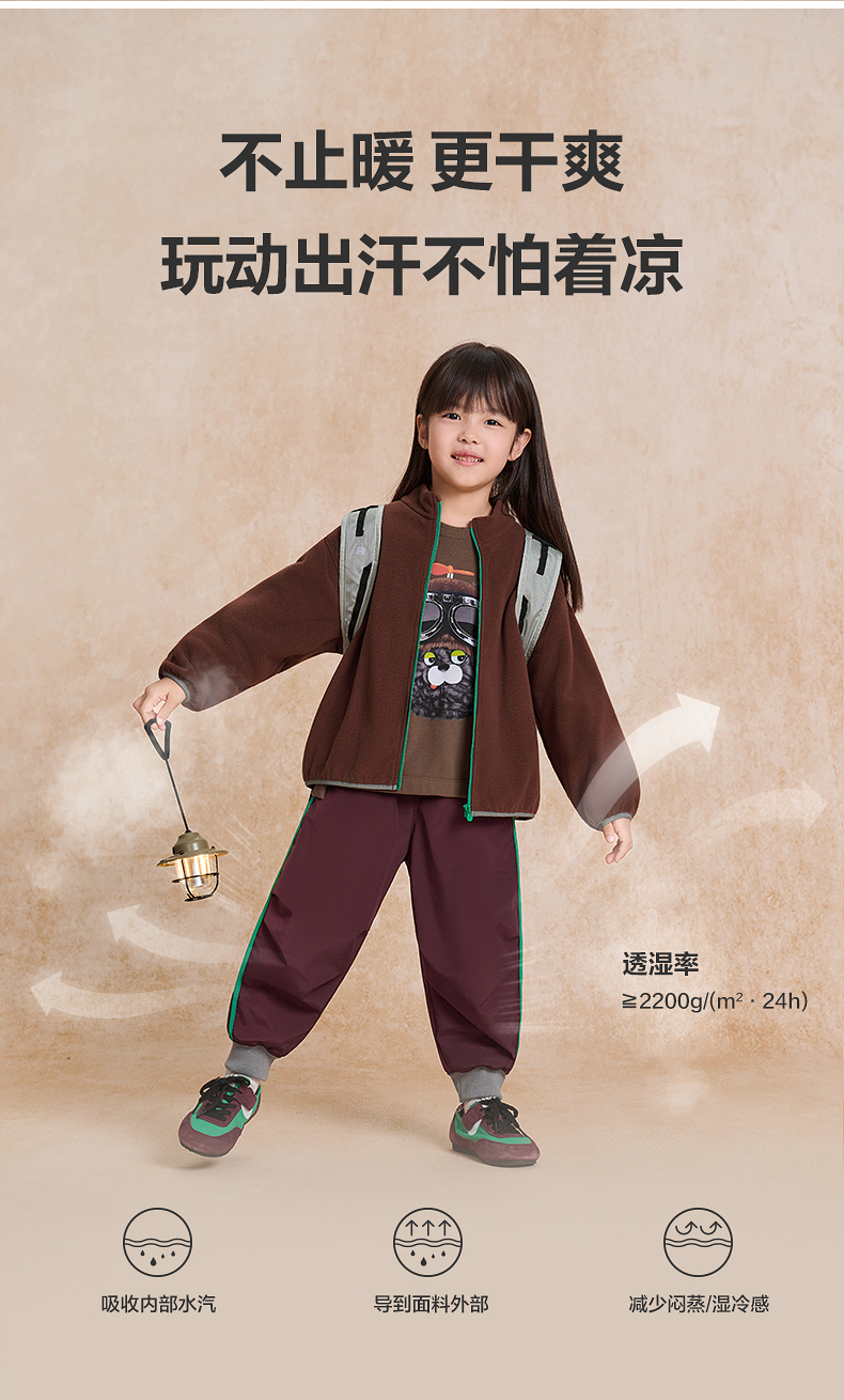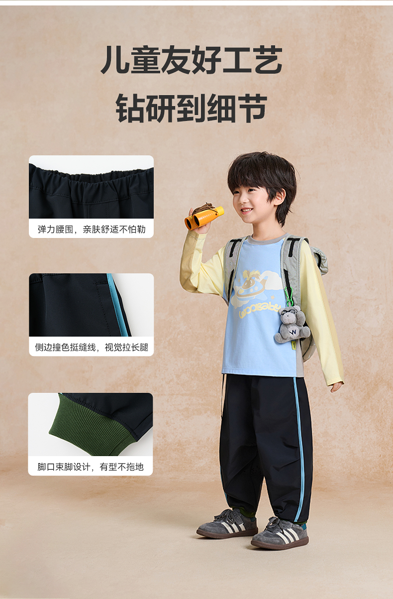 【woobaby】儿童长裤防水透湿25秋新品男童女童裤子休闲户外长裤童装
