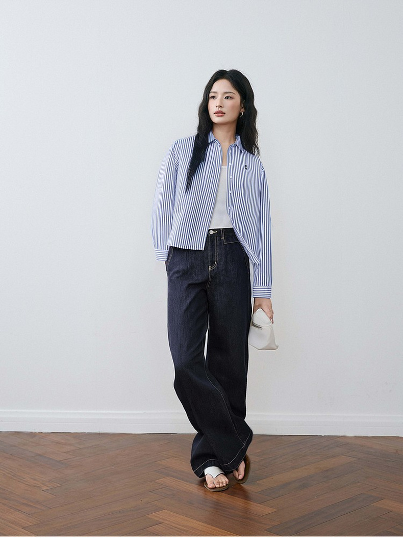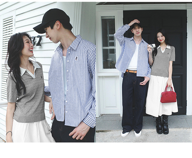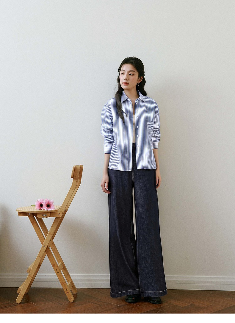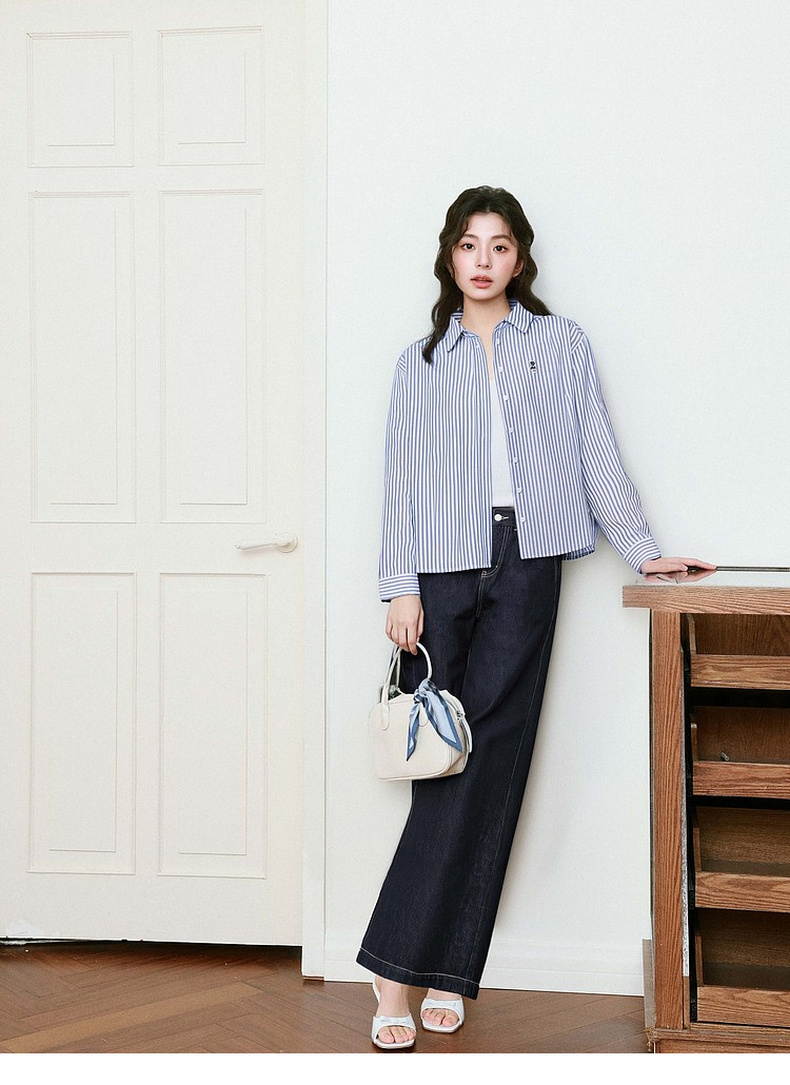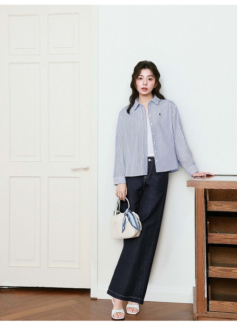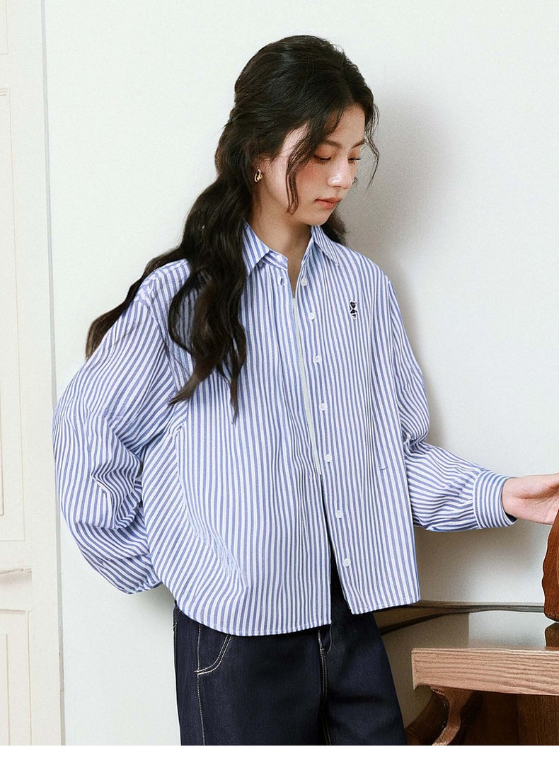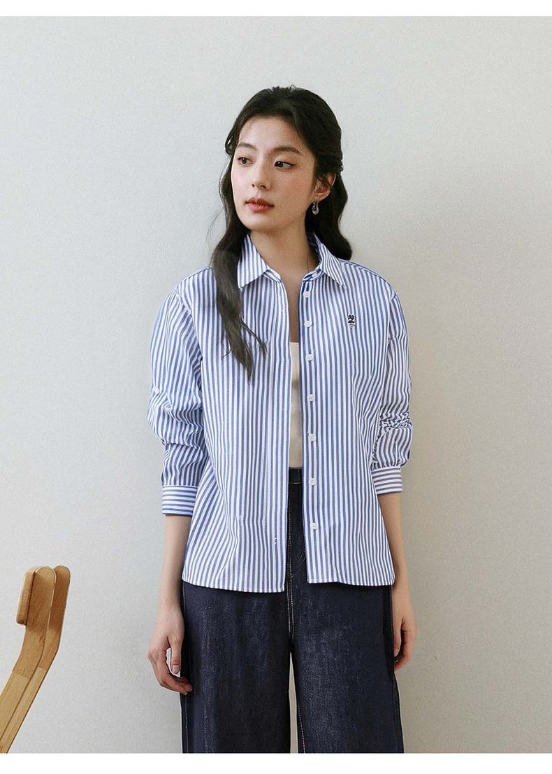 【萌宠系列】诗凡黎刺绣条纹衬衫25夏新款韩系休闲上衣3G4620631