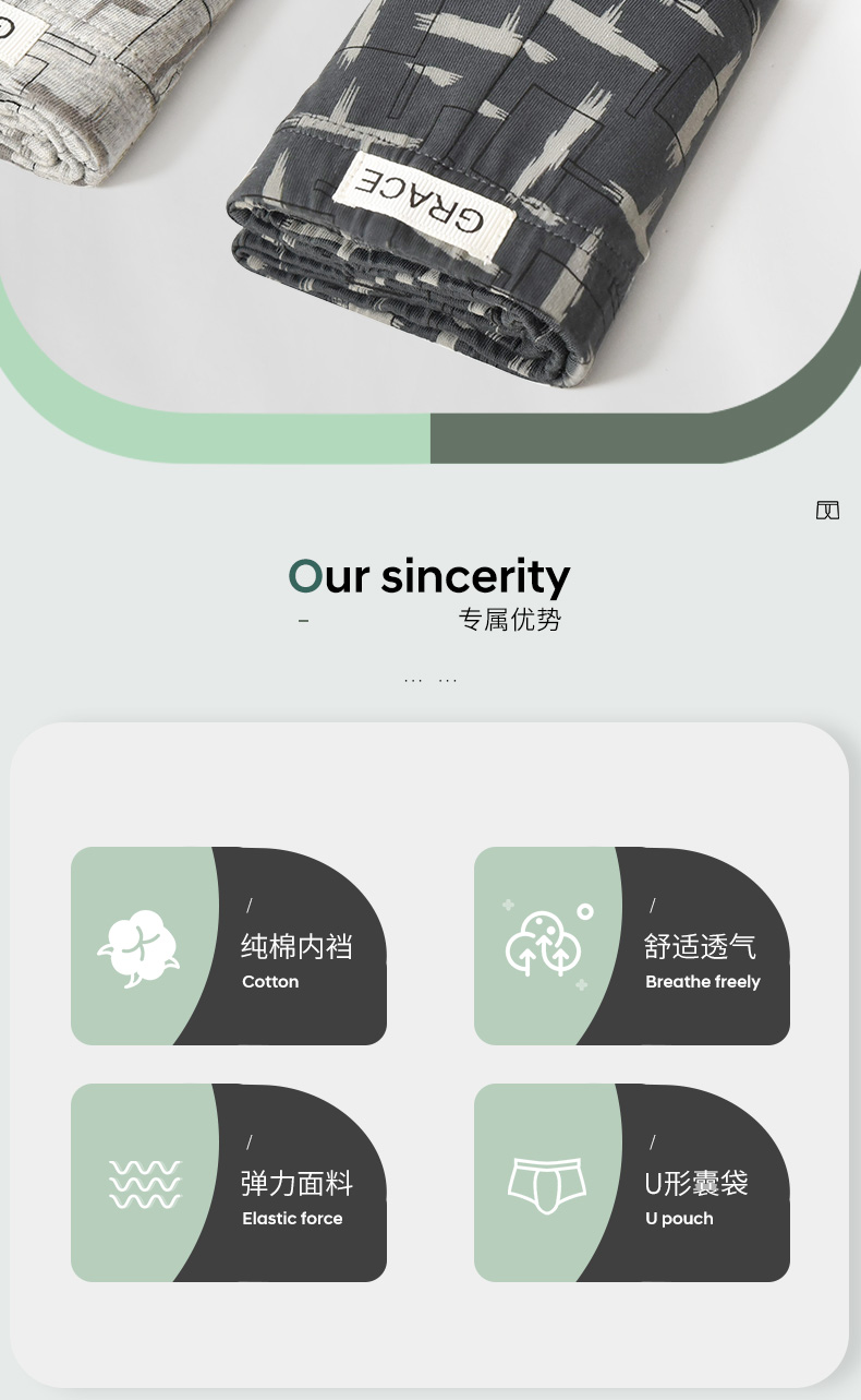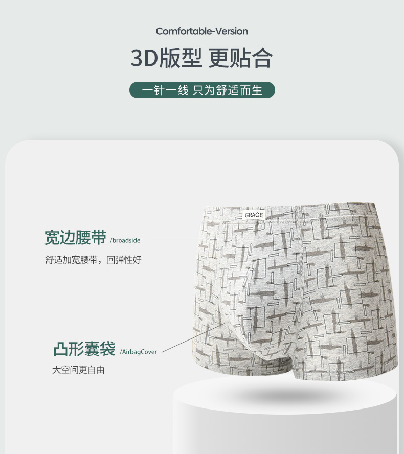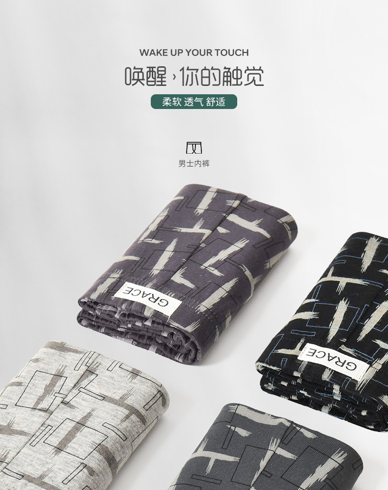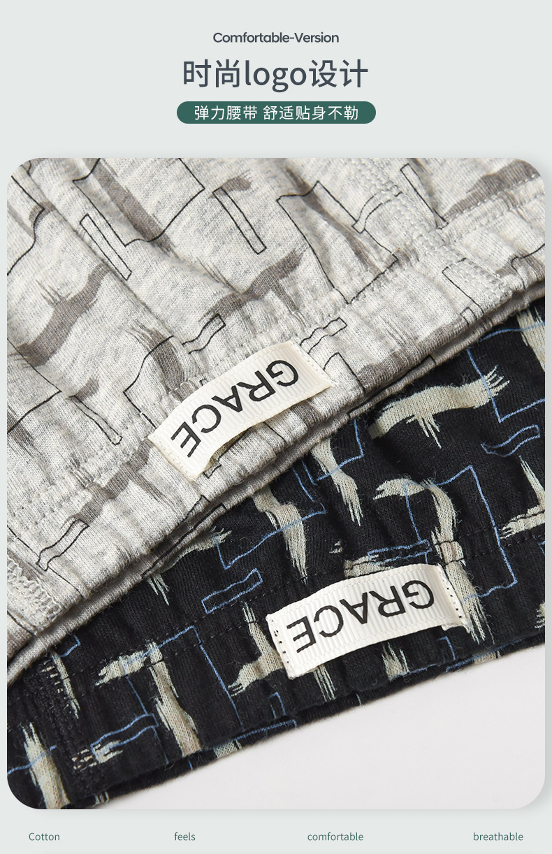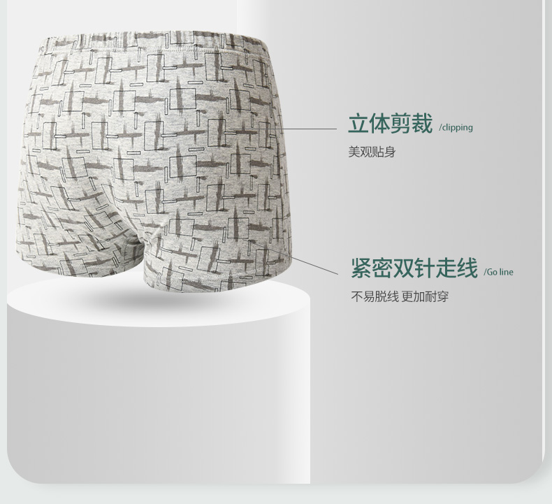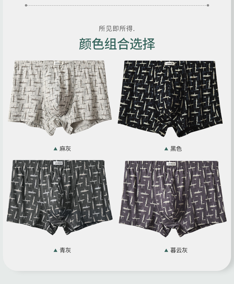 洁丽雅4条纯棉印花内裤男简约休闲青年运动平角男士裤衩裤头男