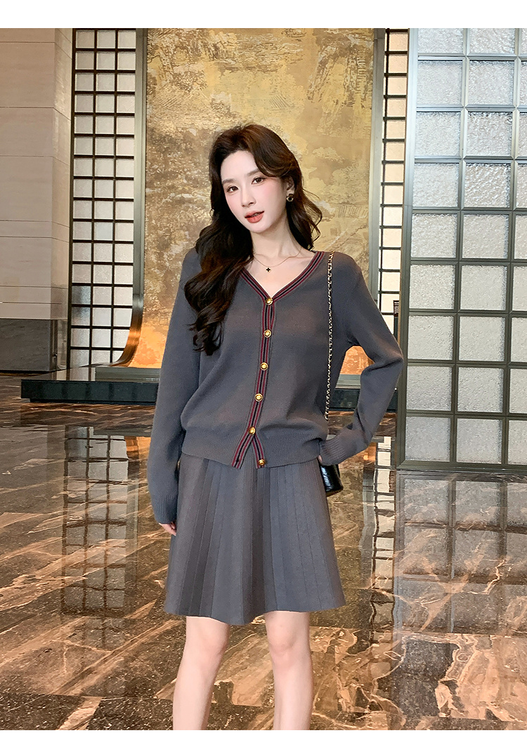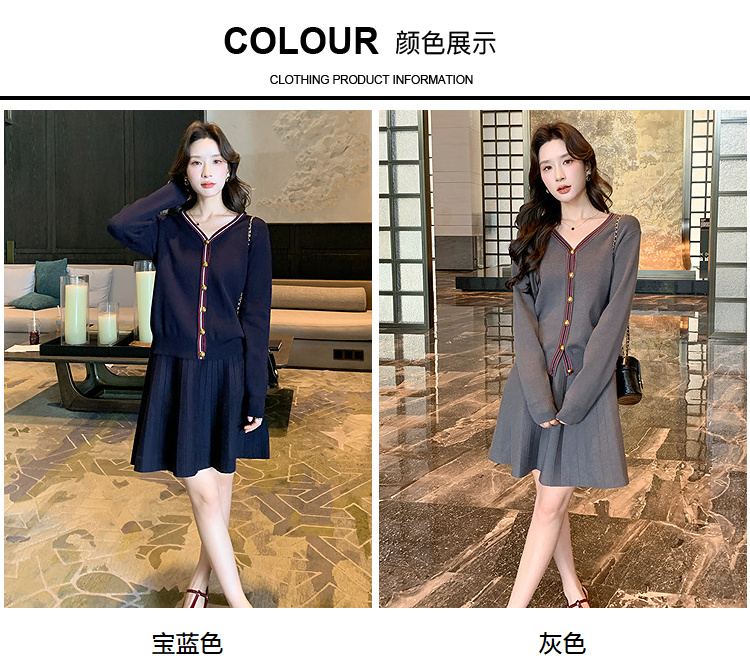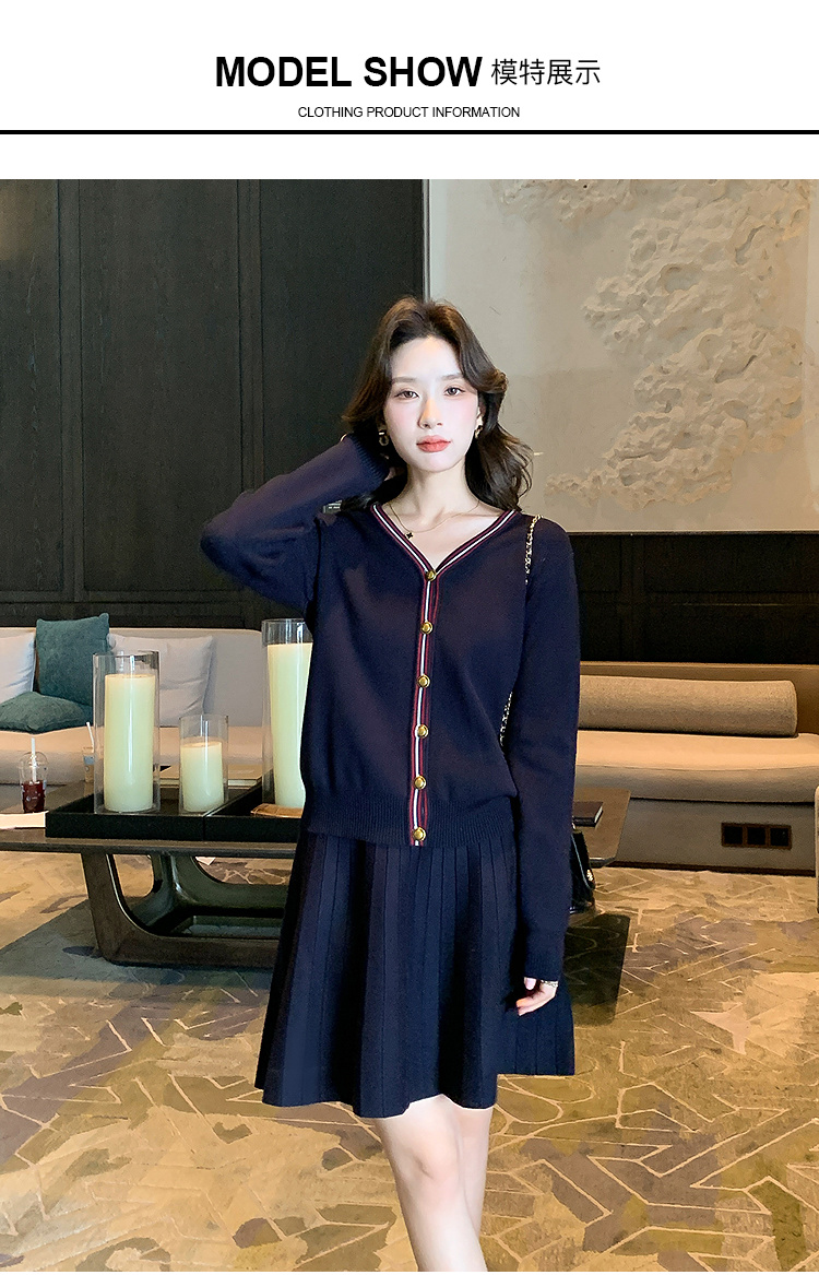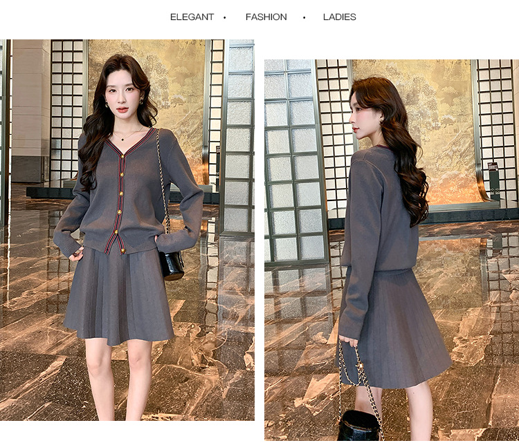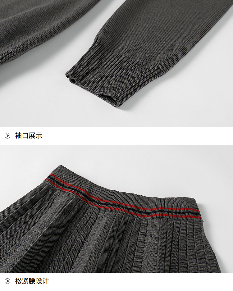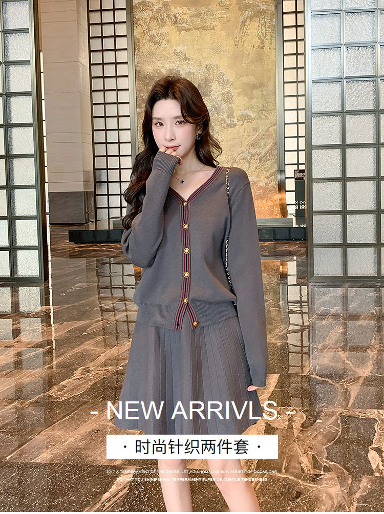 奢姿大码女装2025冬季减龄百褶套装胖妹妹V领上衣半裙针织两件套9644969278