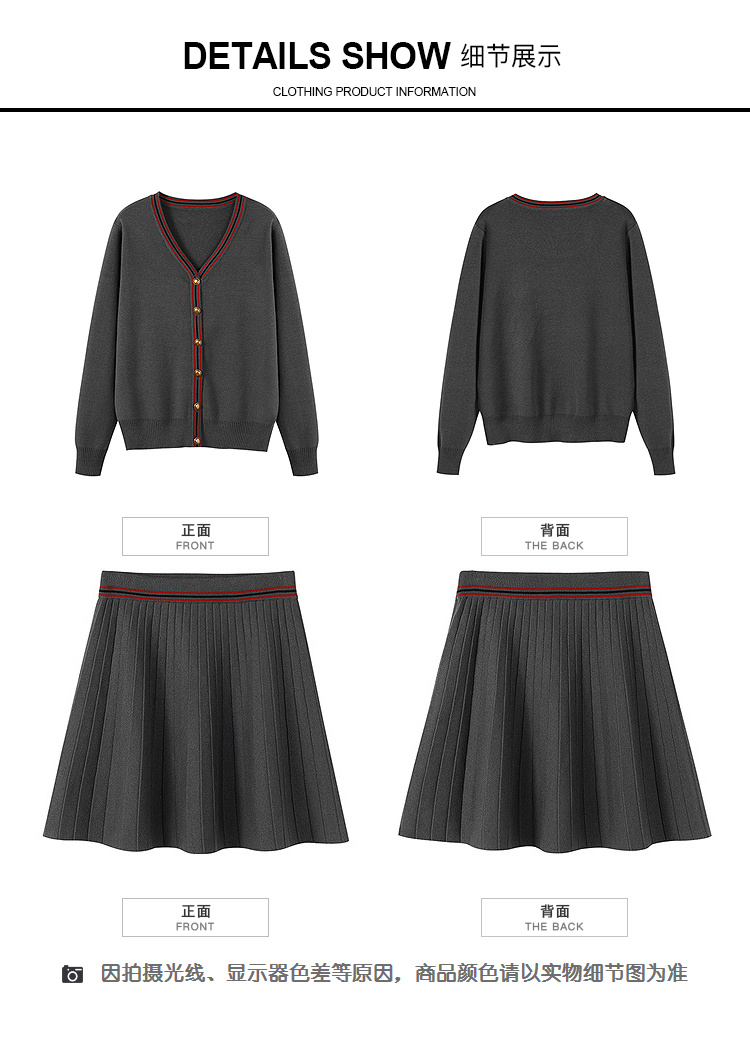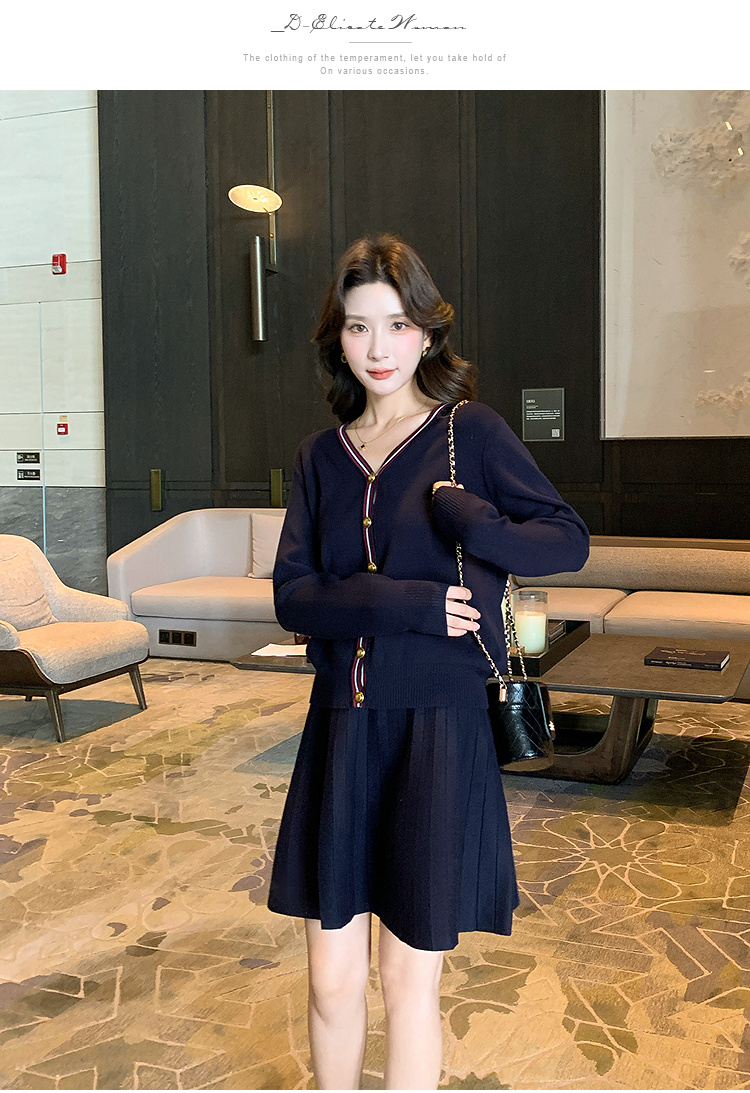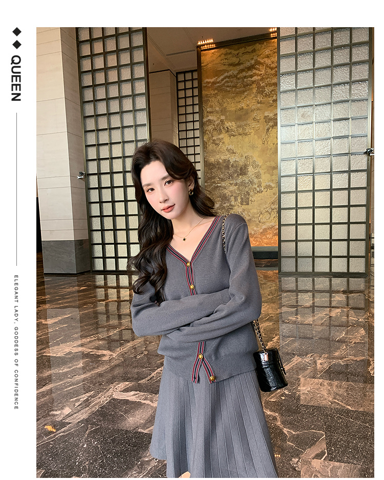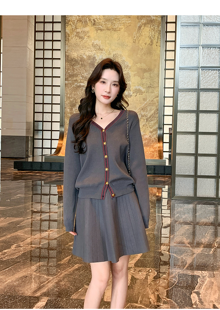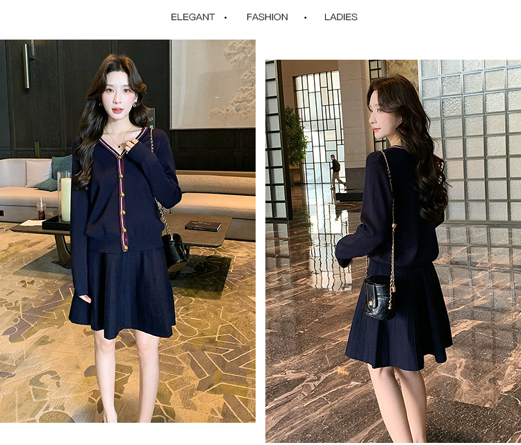 奢姿大码女装2025冬季减龄百褶套装胖妹妹V领上衣半裙针织两件套9644969278