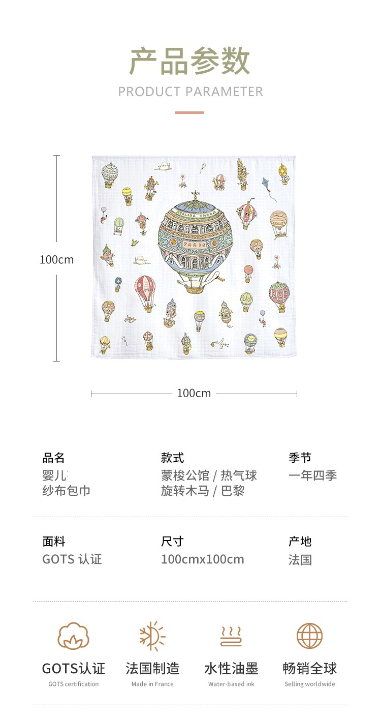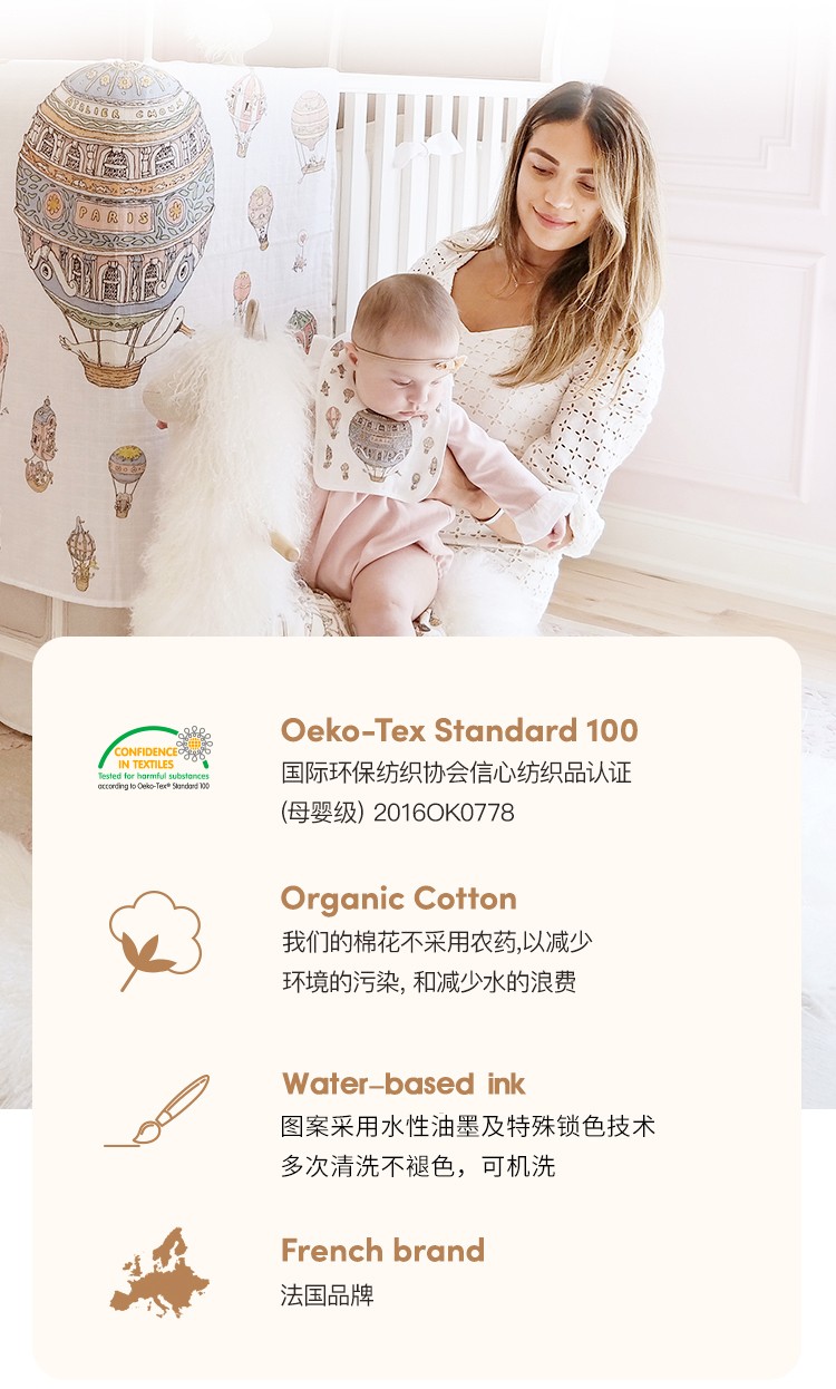 法国Atelier Choux 婴儿棉纱布包巾抱巾 同名款/小宝贝/动物森林 100*100cm