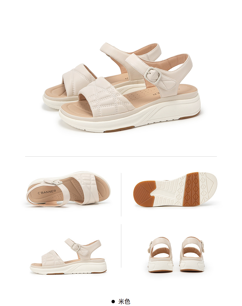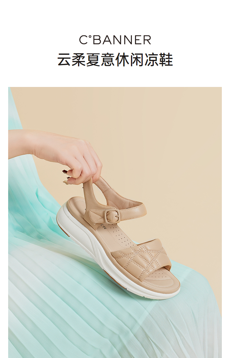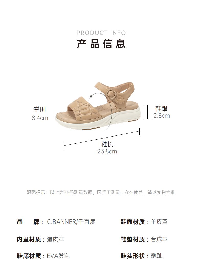 千百度厚底增高一字带休闲凉鞋女夏季凉鞋舒适A24321823