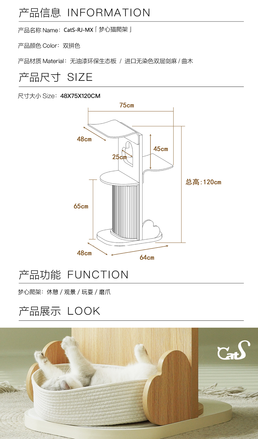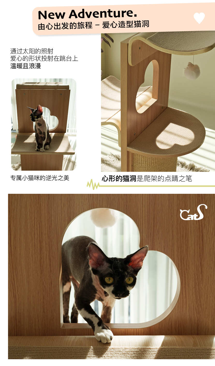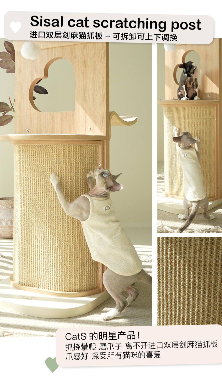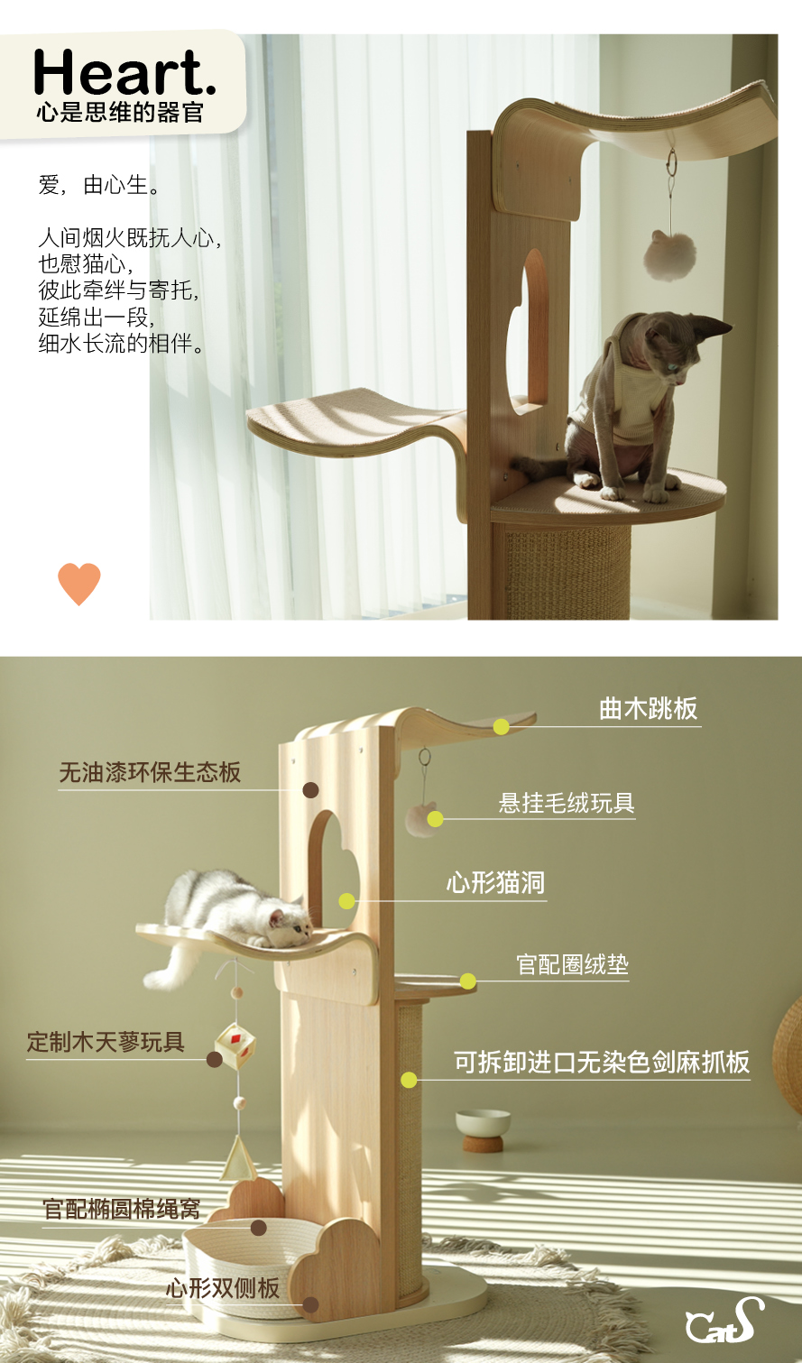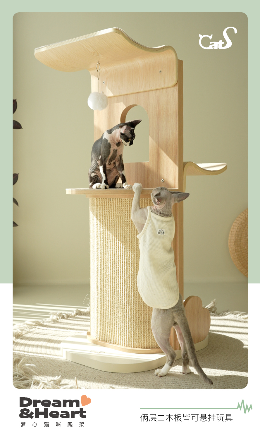 CatS梦心实木猫爬架人间烟火系列木制剑麻猫抓板曲木全体型猫通用