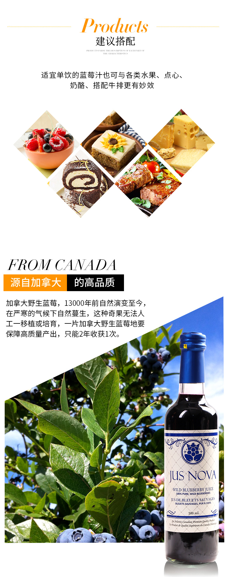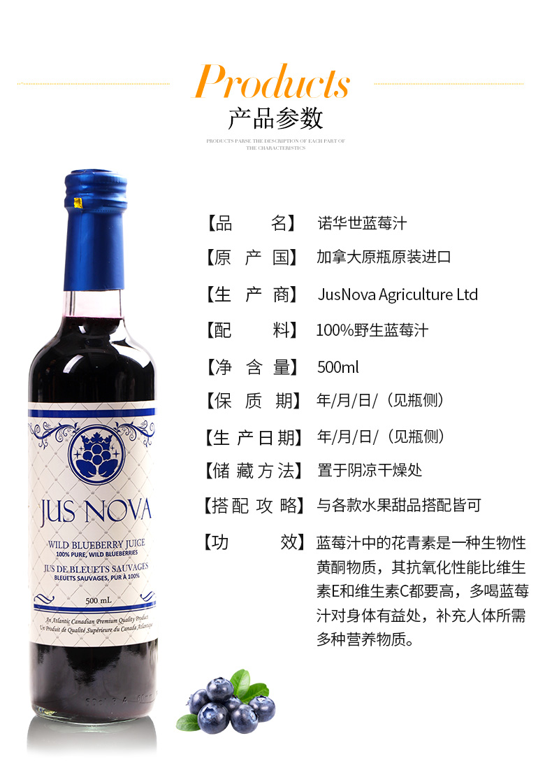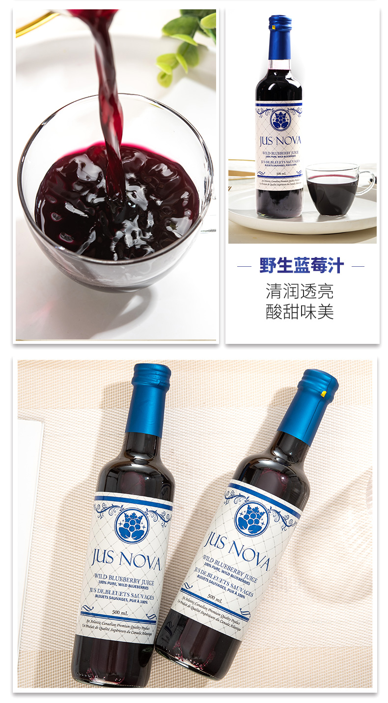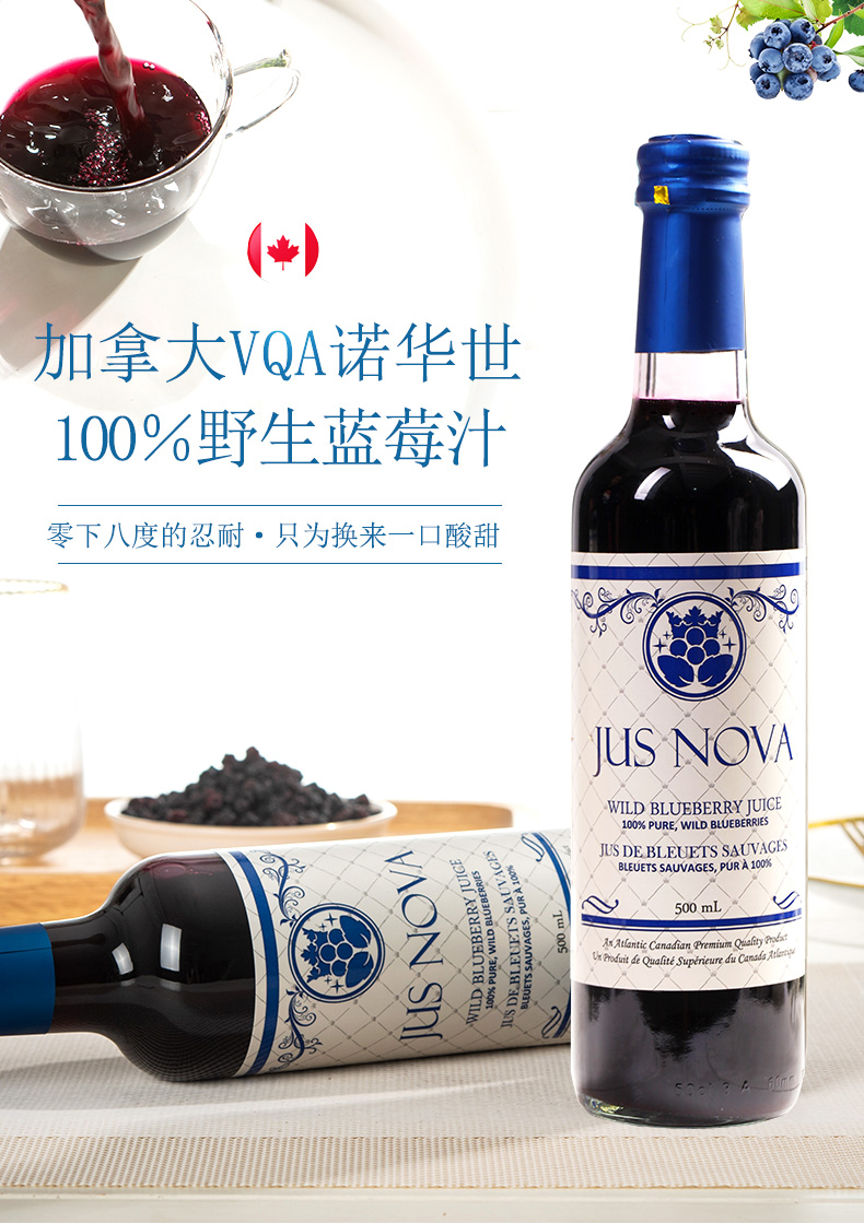 诺华世 加拿大原瓶原装进口纯蓝莓汁饮料 500ml