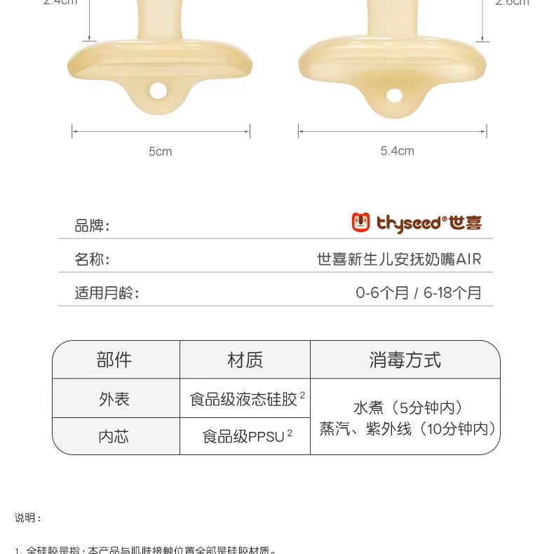 Thyseed世喜 新生儿安抚奶嘴Air 防胀气新生婴儿宝宝安抚轻薄硅胶 0-6个月