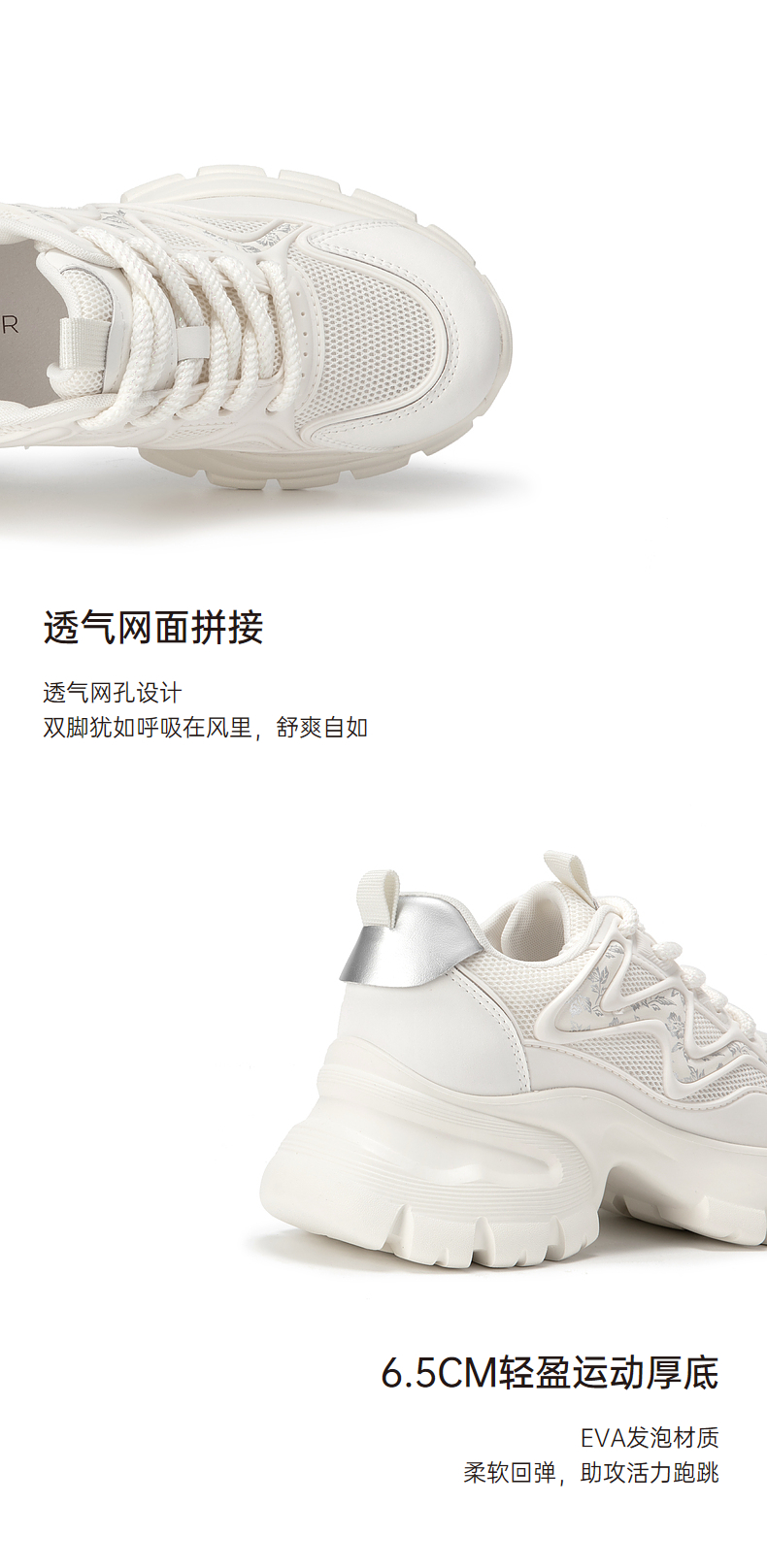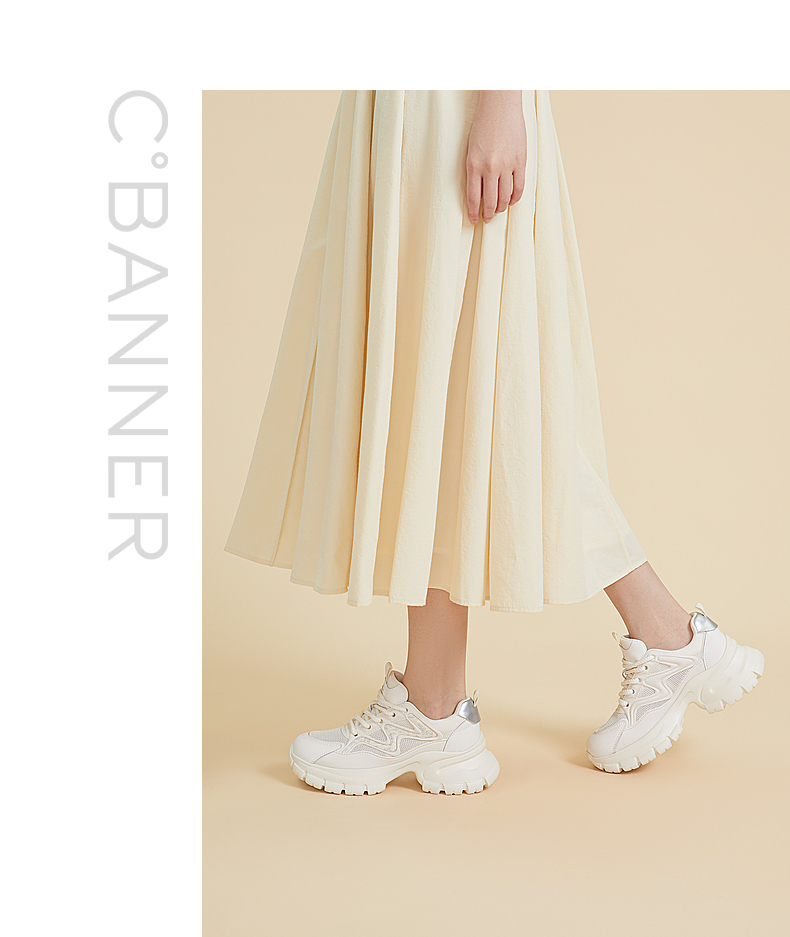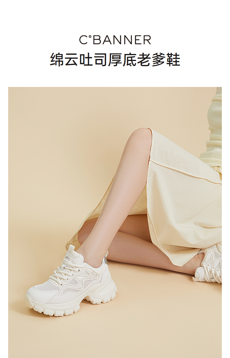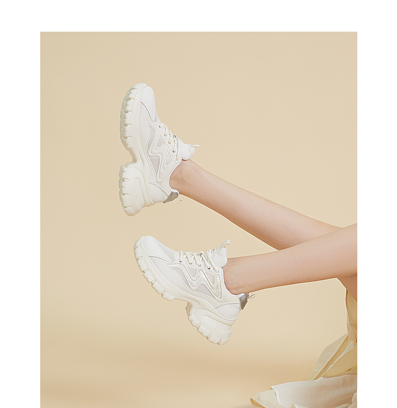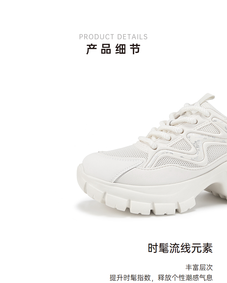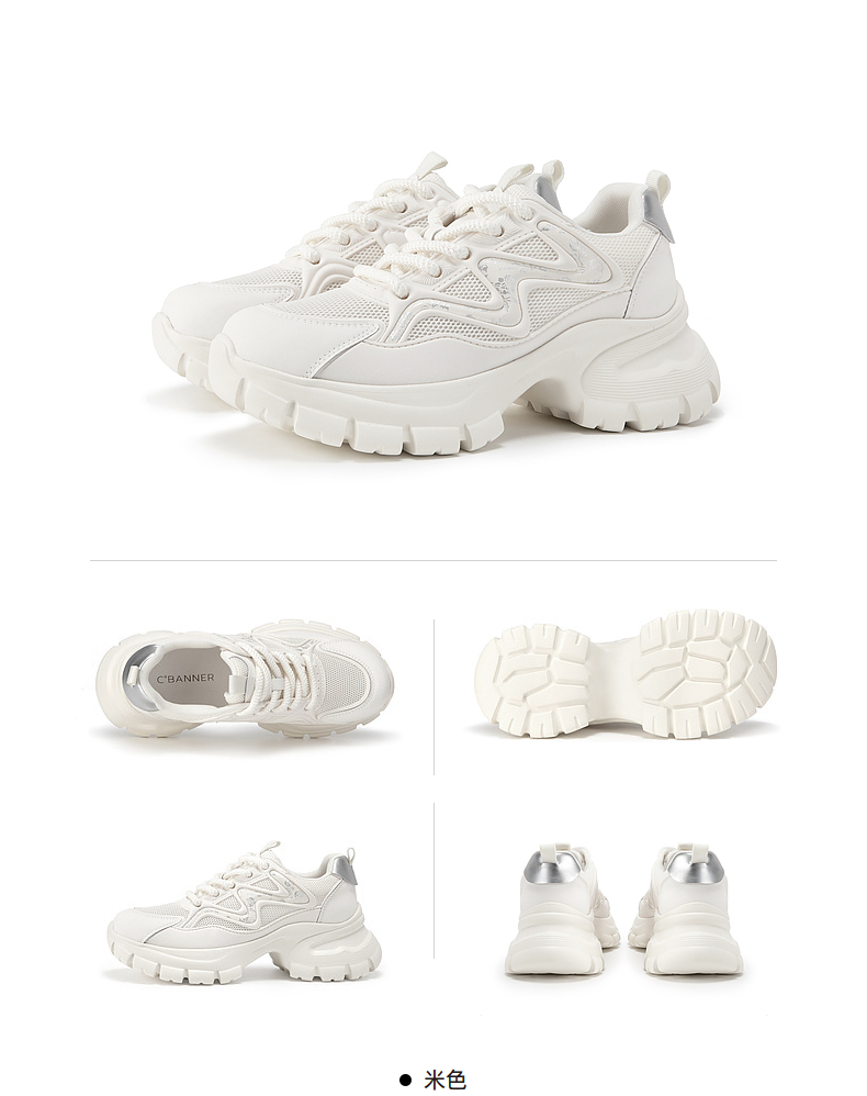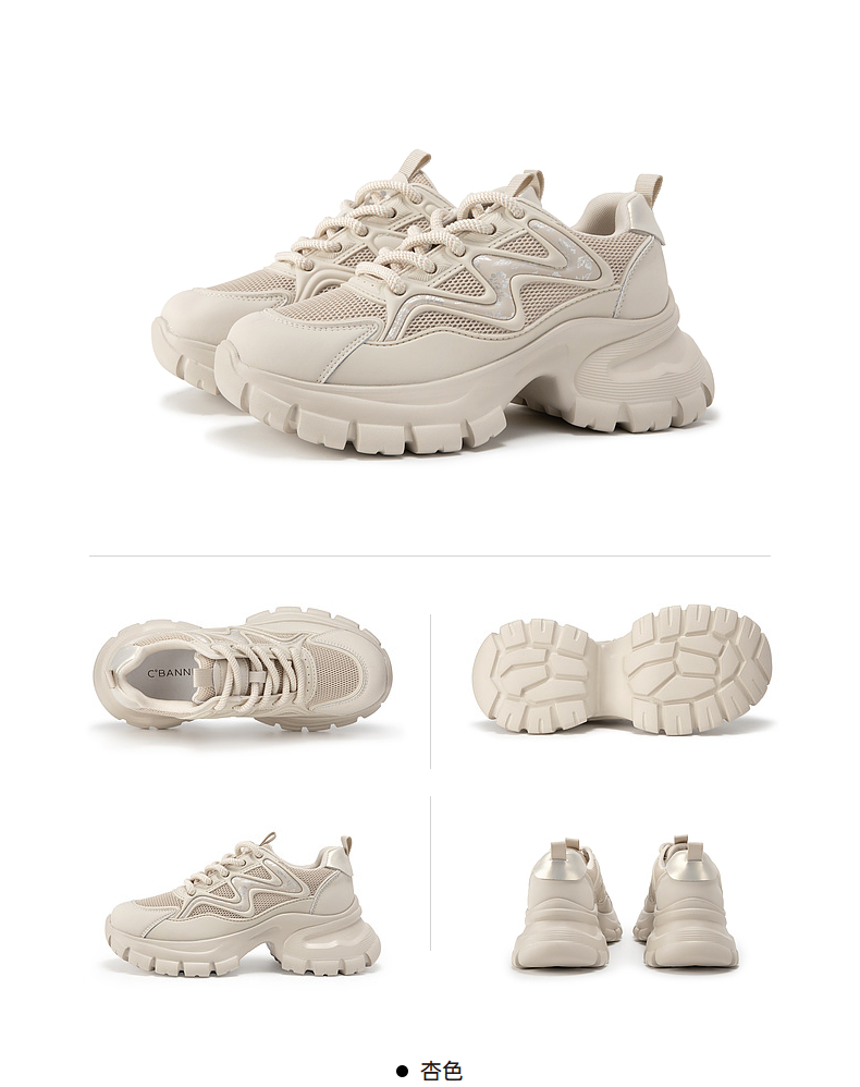 千百度厚底老爹鞋女款夏季透气网面鞋时尚运动休闲增高鞋A24302410